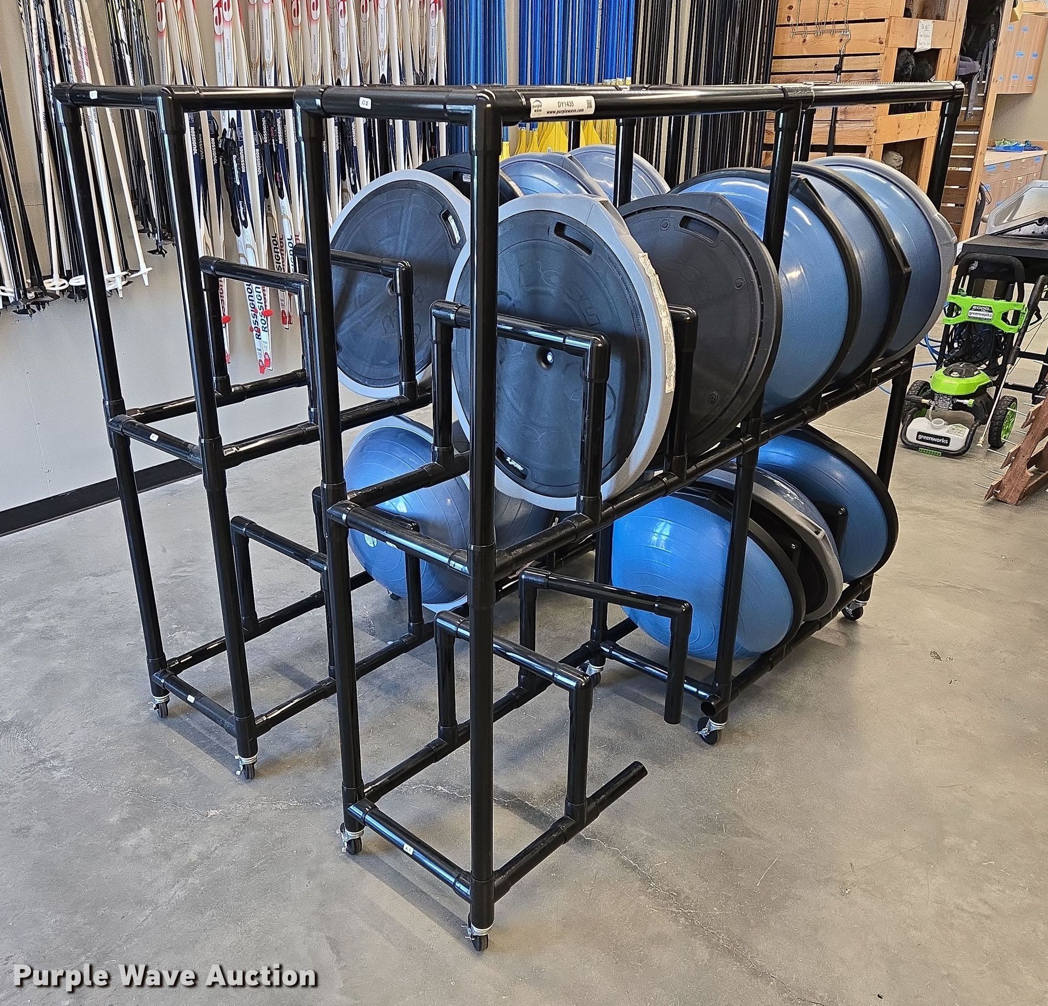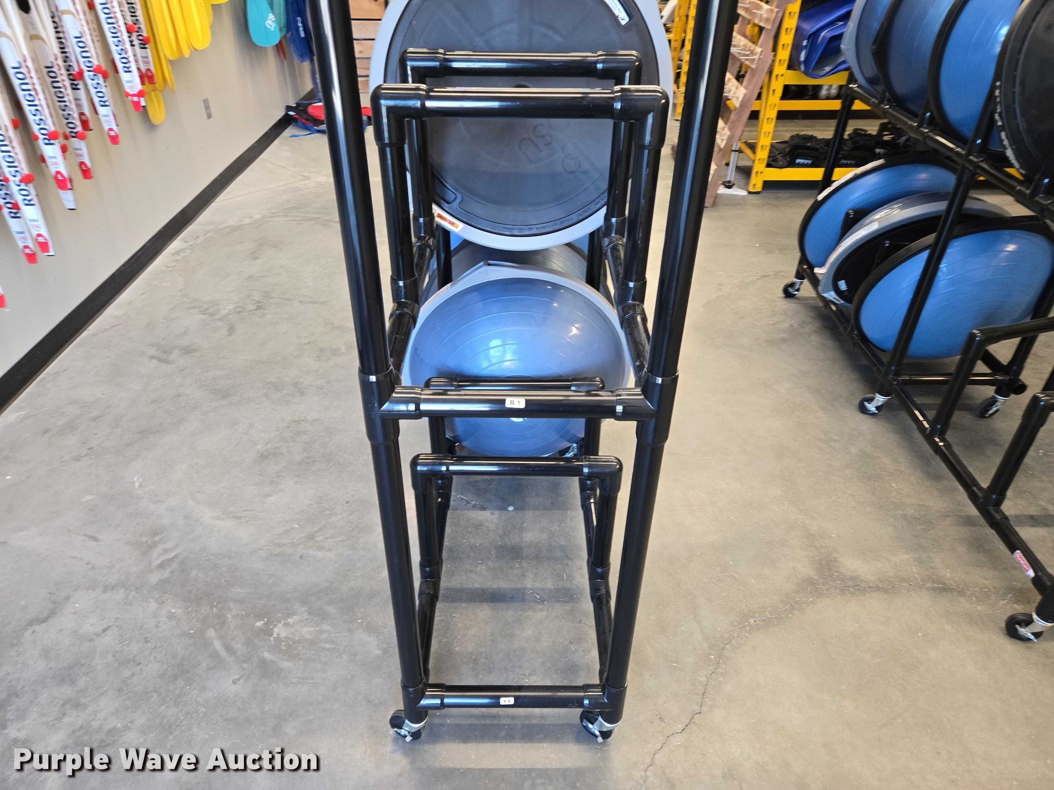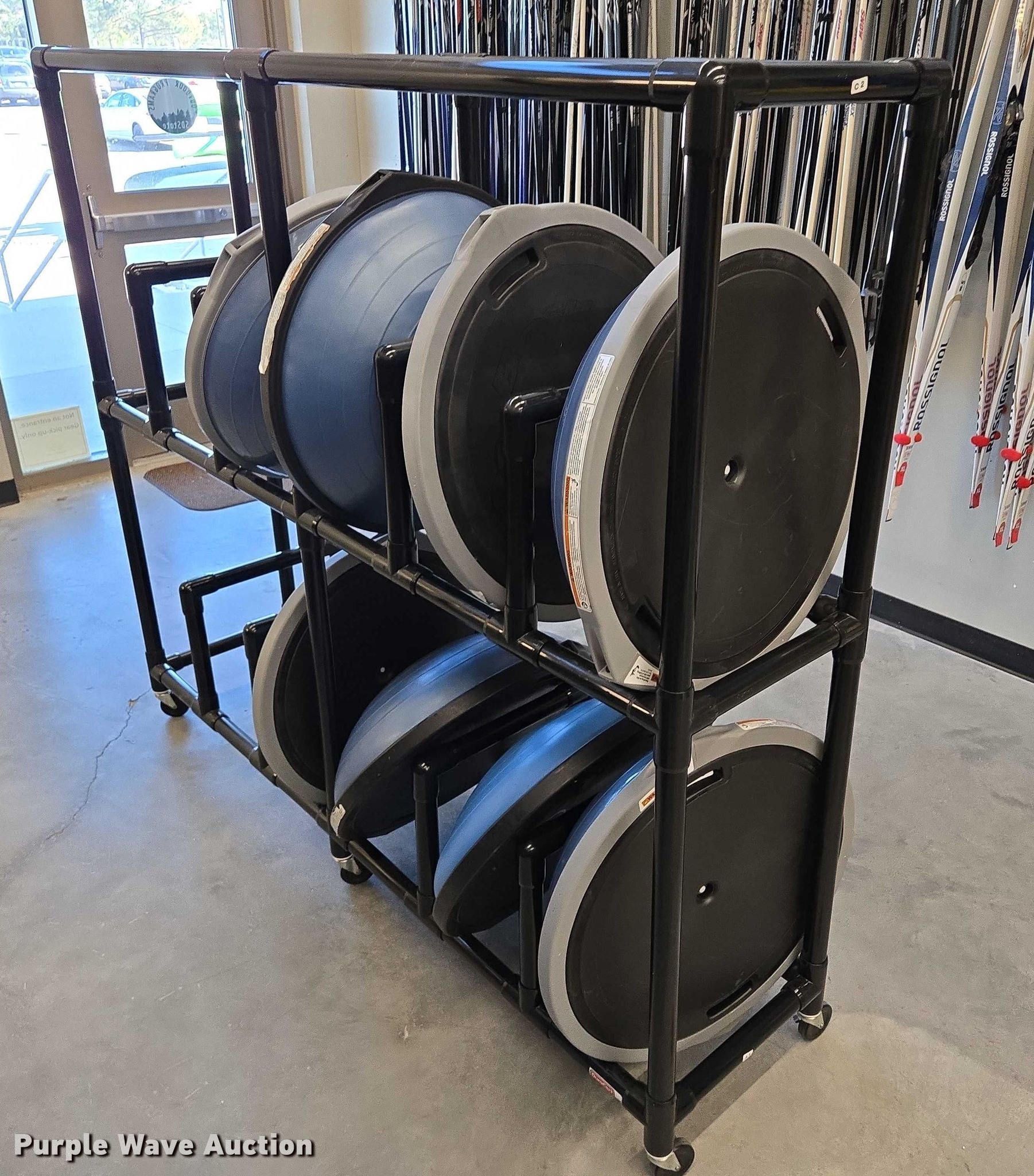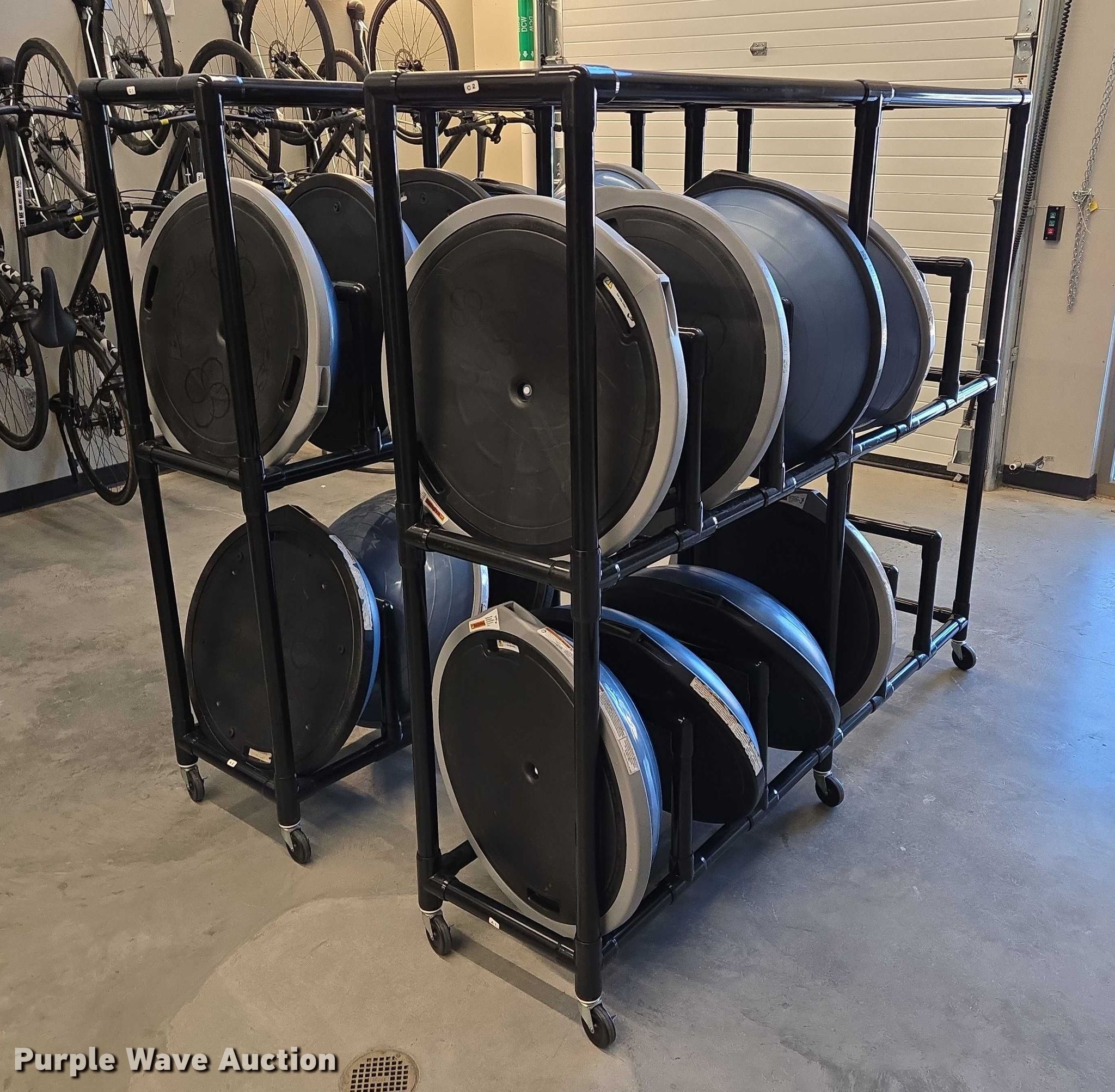 Purple Wave is selling a used Sporting Goods in South Dakota. This item is a (16) Bosu balance training balls with the following: (2) storage carts, One piece of PVC pipe needs replaced on one cart