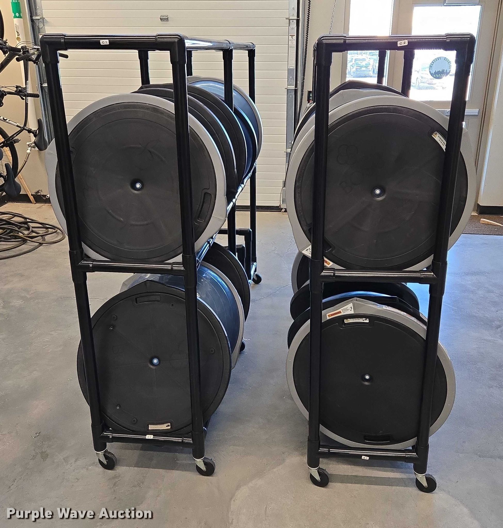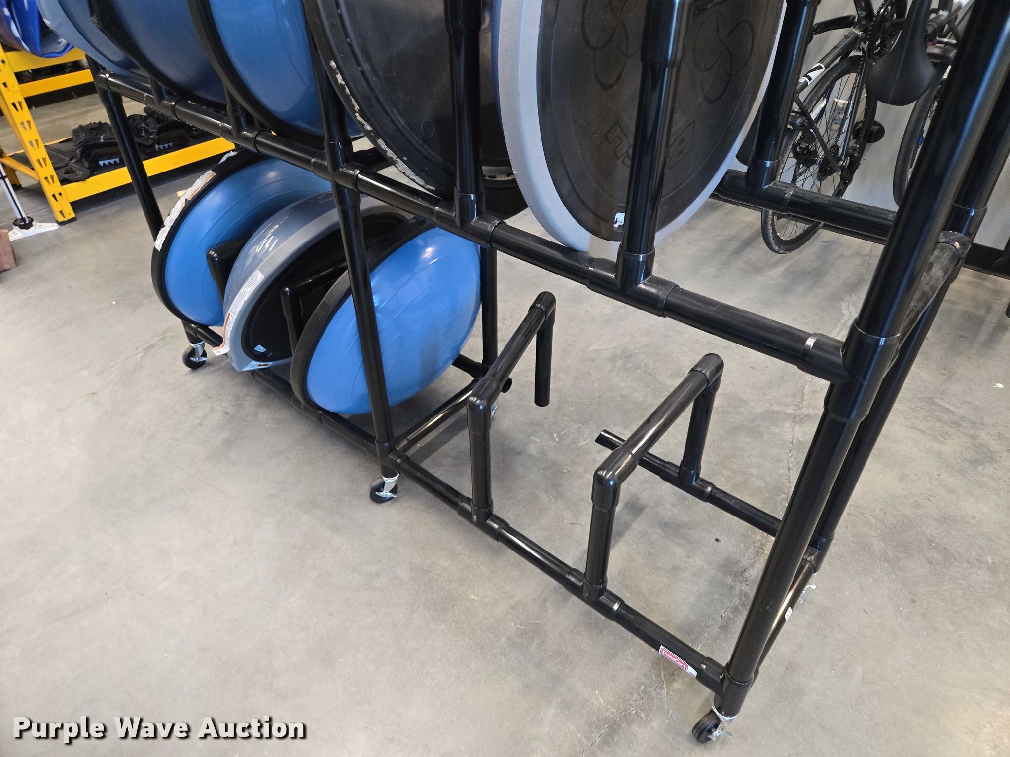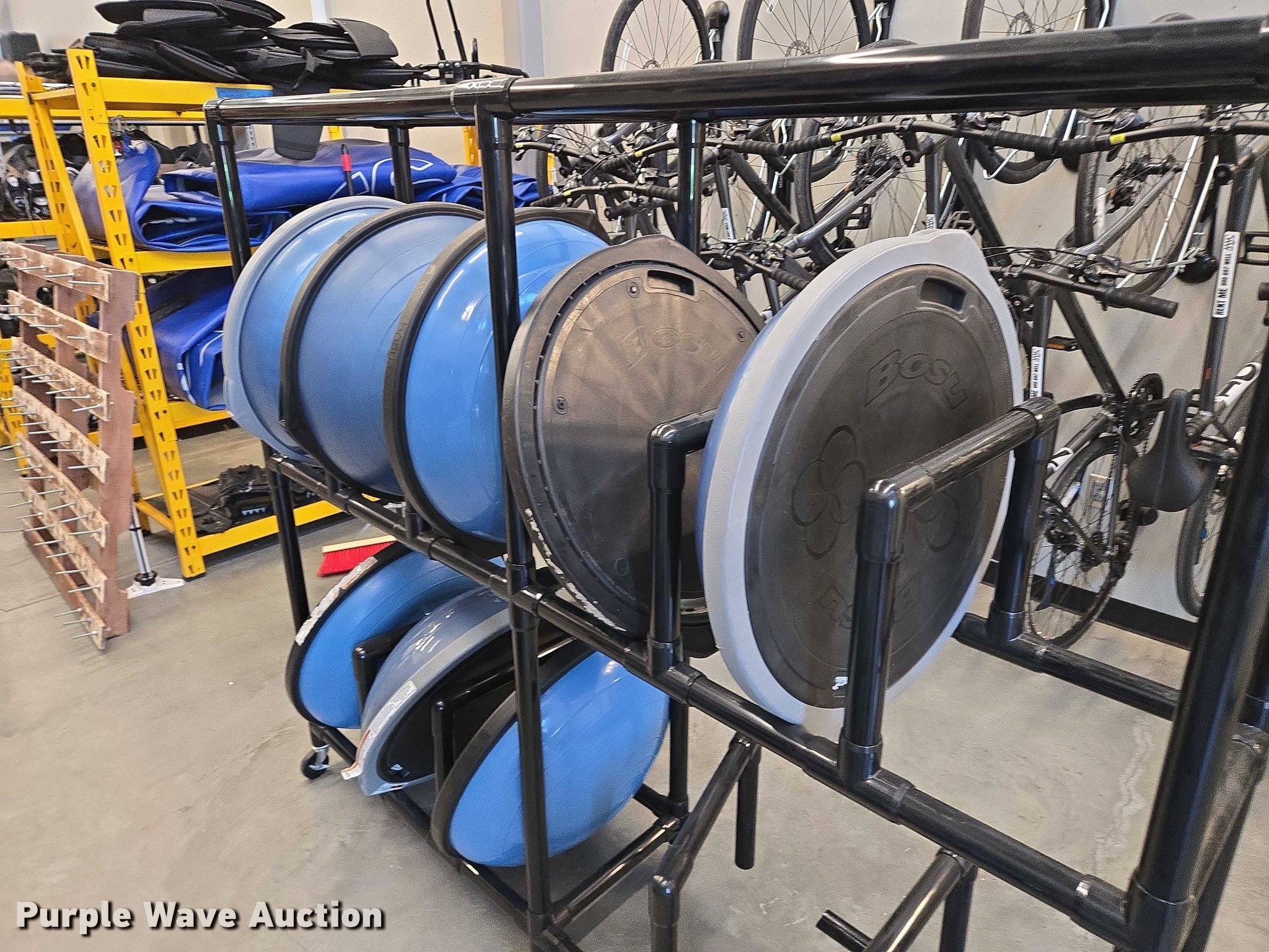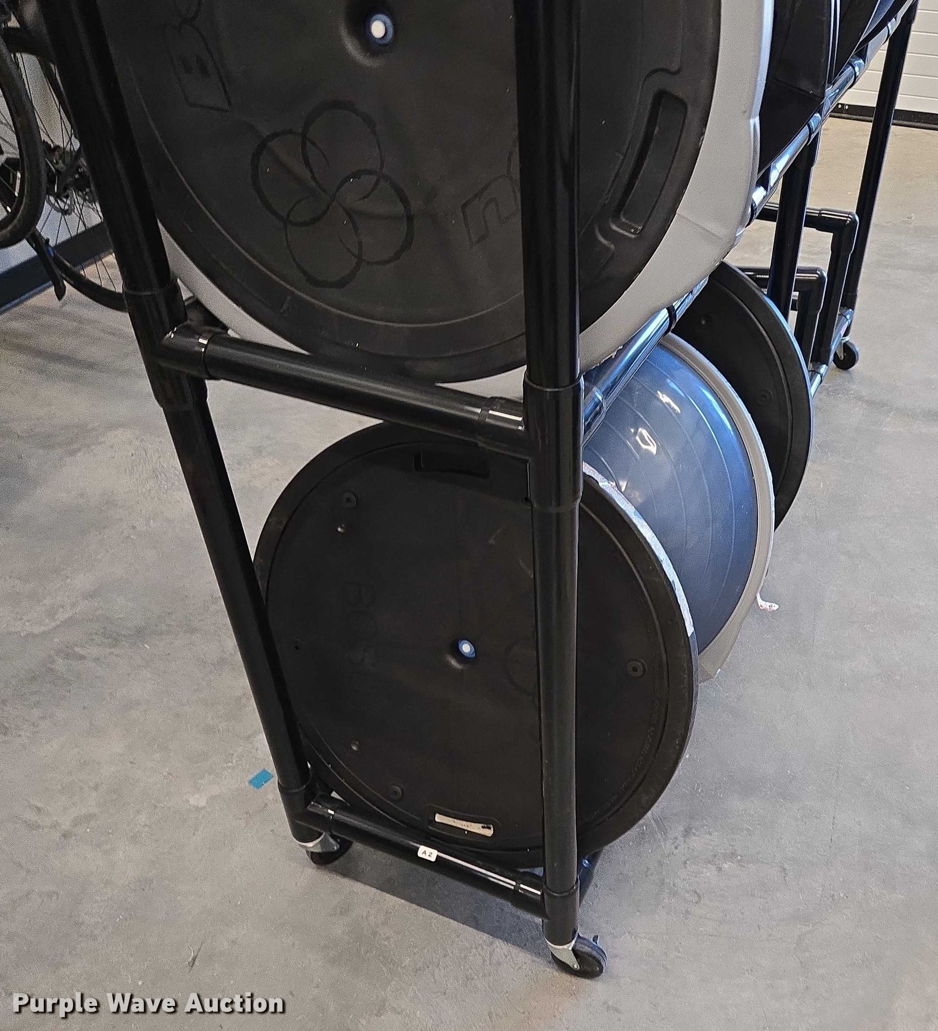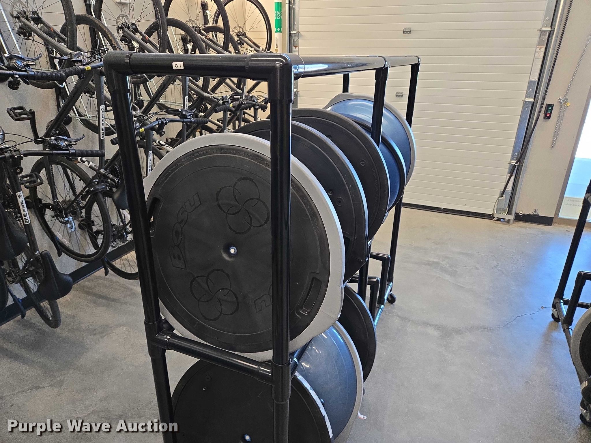 Purple Wave is selling a used Sporting Goods in South Dakota. This item is a (16) Bosu balance training balls with the following: (2) storage carts, One piece of PVC pipe needs replaced on one cart