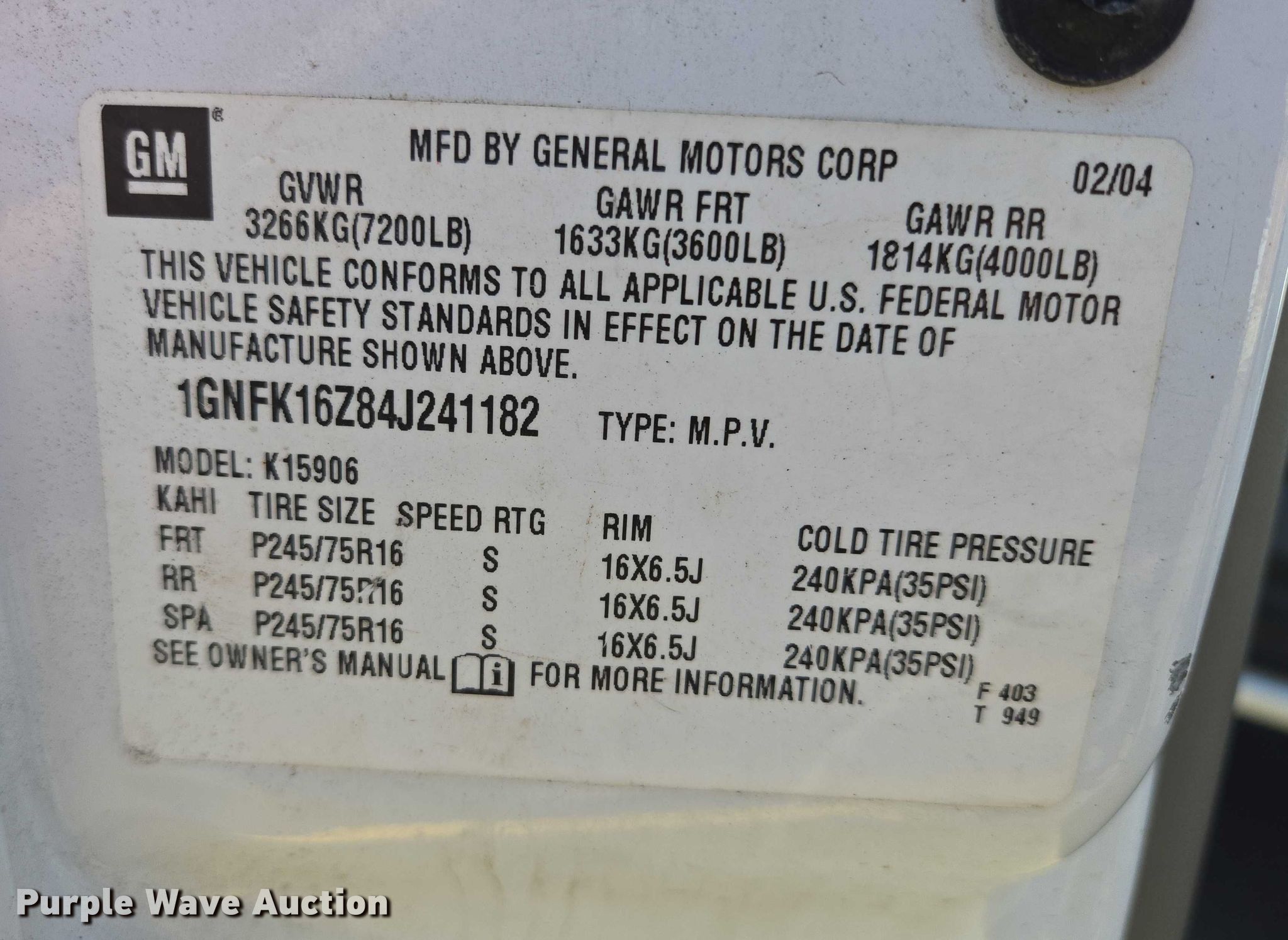 Purple Wave is selling a used Passenger Vehicle in South Dakota. This item is a 2004 Chevrolet Suburban 1500 SUV with the following: Miles: 127,139 on odometer, Hours: 4,386 on meter, VIN: 1GNFK16Z84J241182