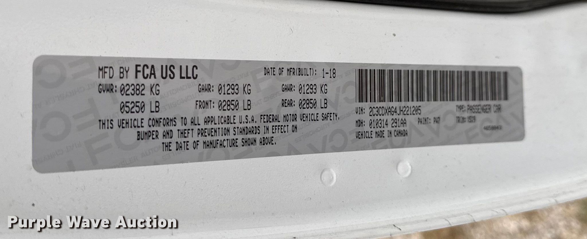 - VIN: 2C3CDXAG4JH221205