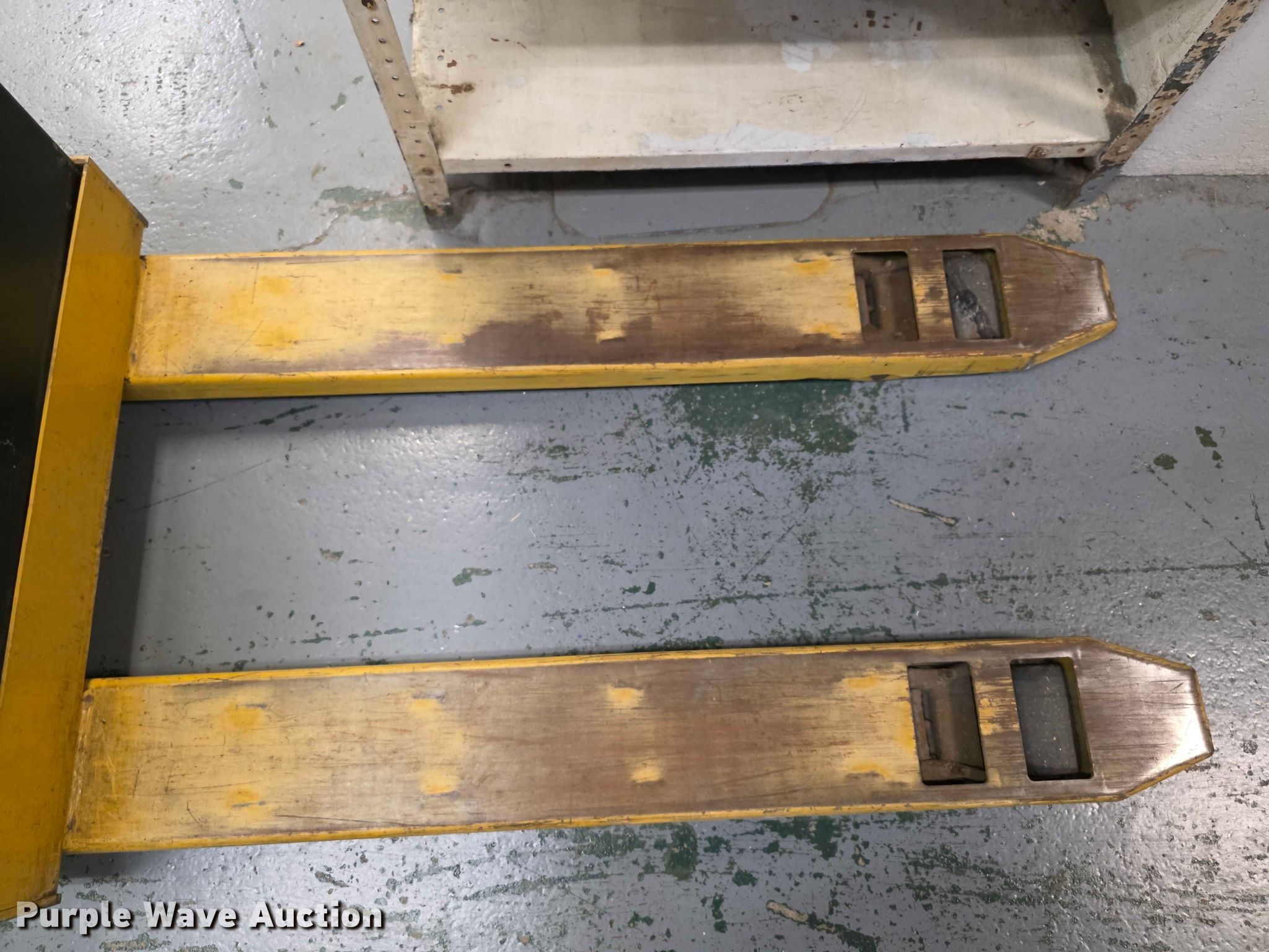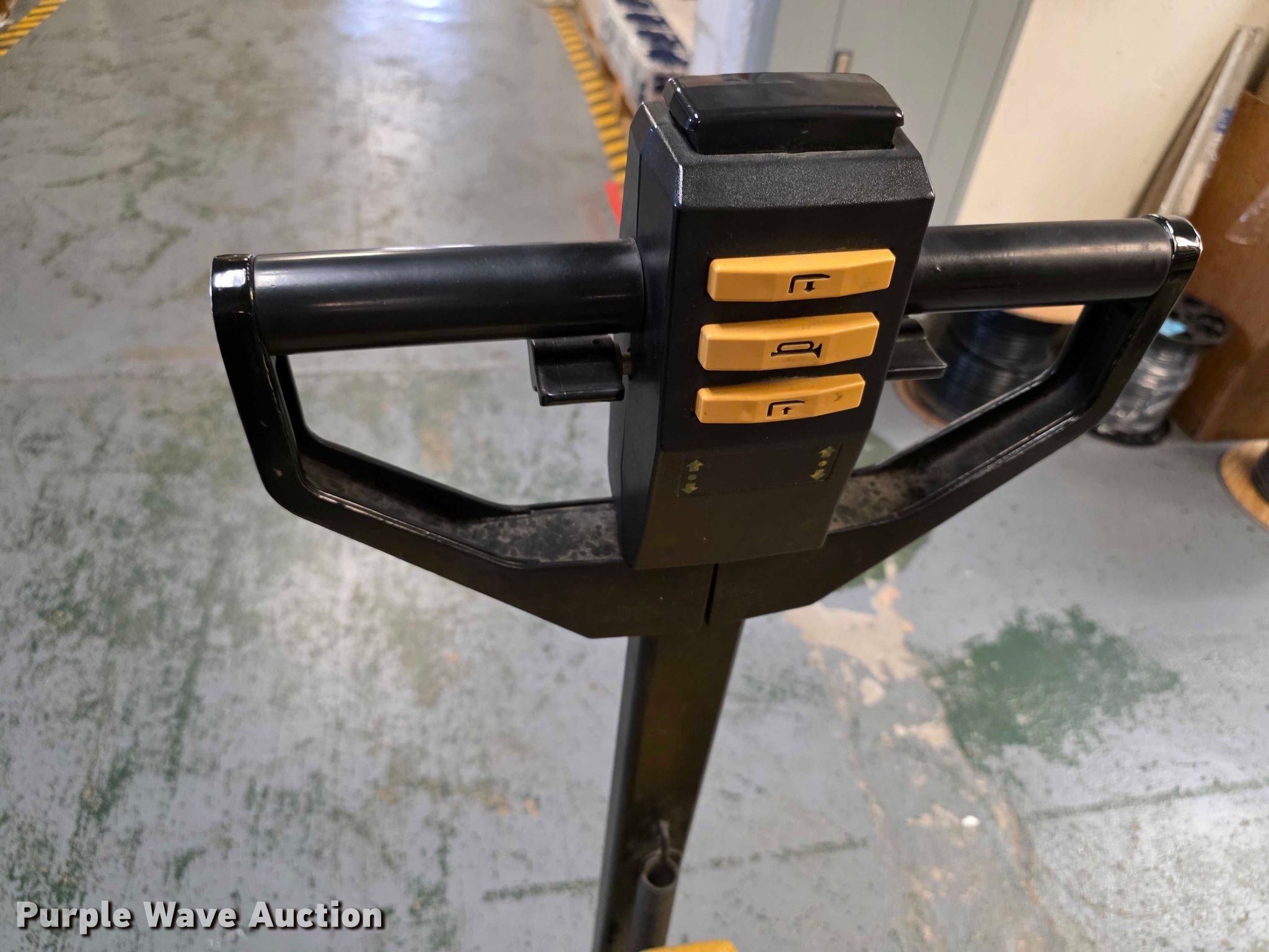 Purple Wave is selling a used Warehouse Forklift in Kansas. This item is a Yale MPB040ACN24C2748 pallet jack with the following: Serial: A827N24953W, Capacity: 4,000 lbs, Volts: 24, 47" x 7" x 2.5"