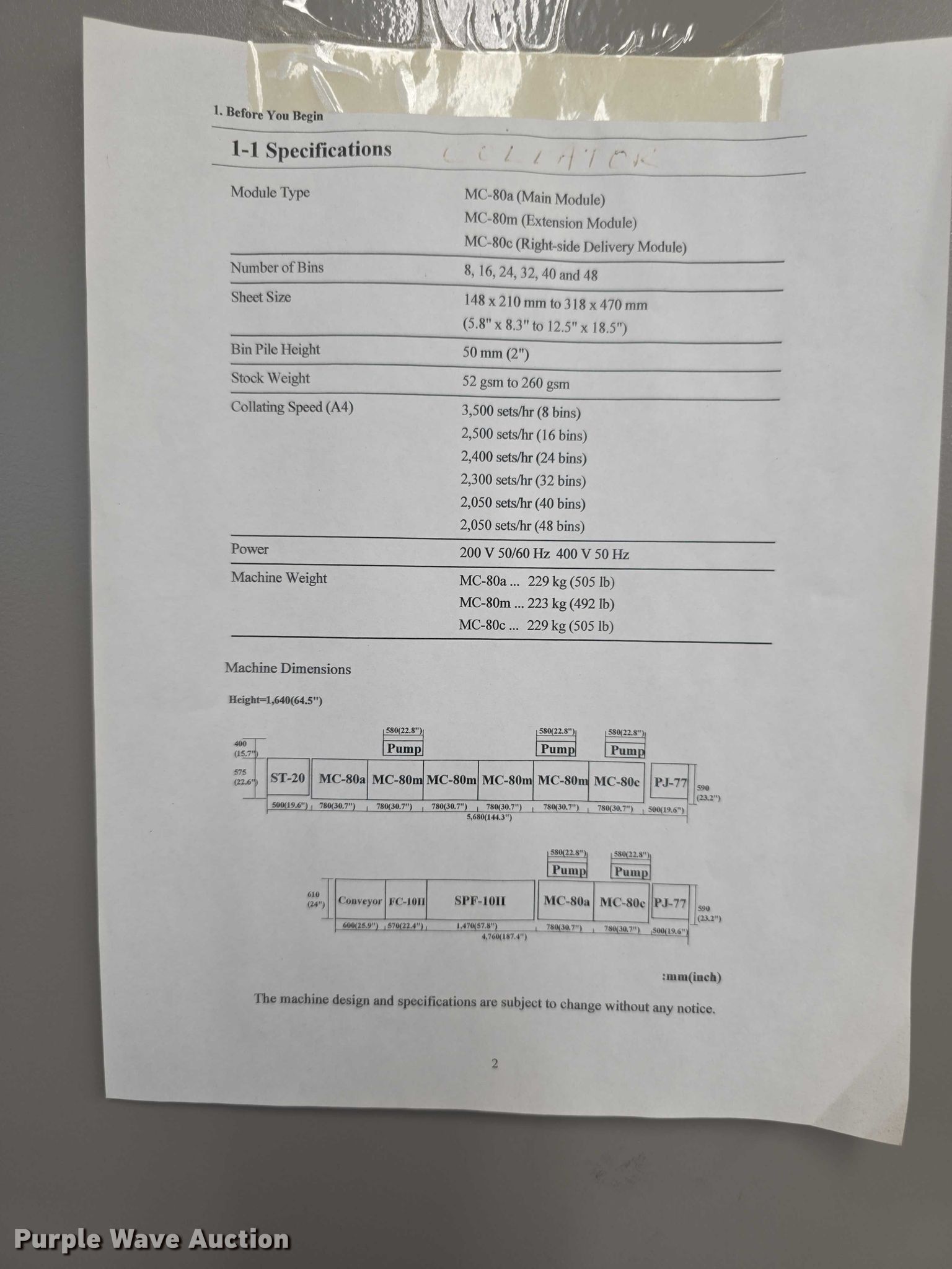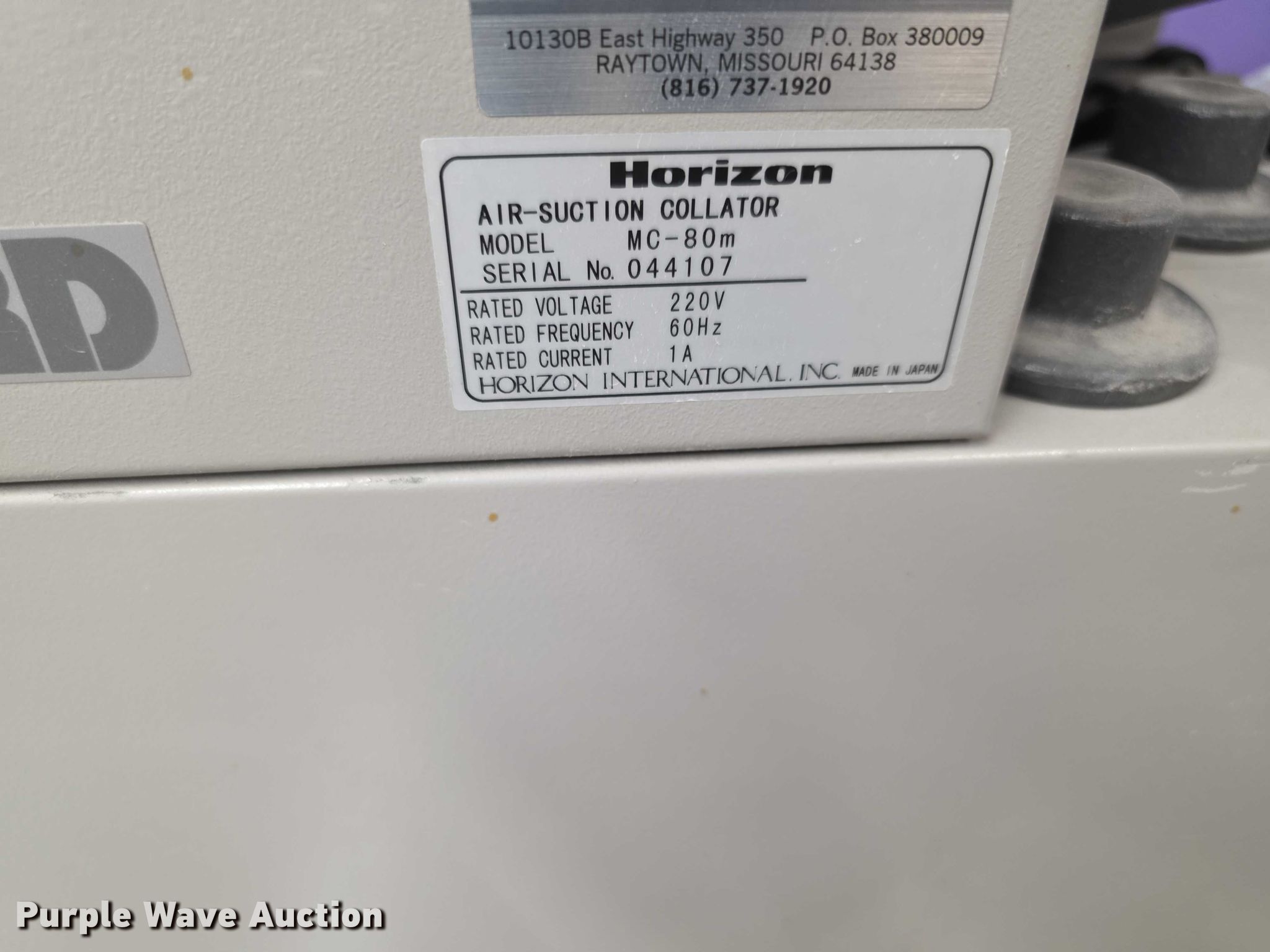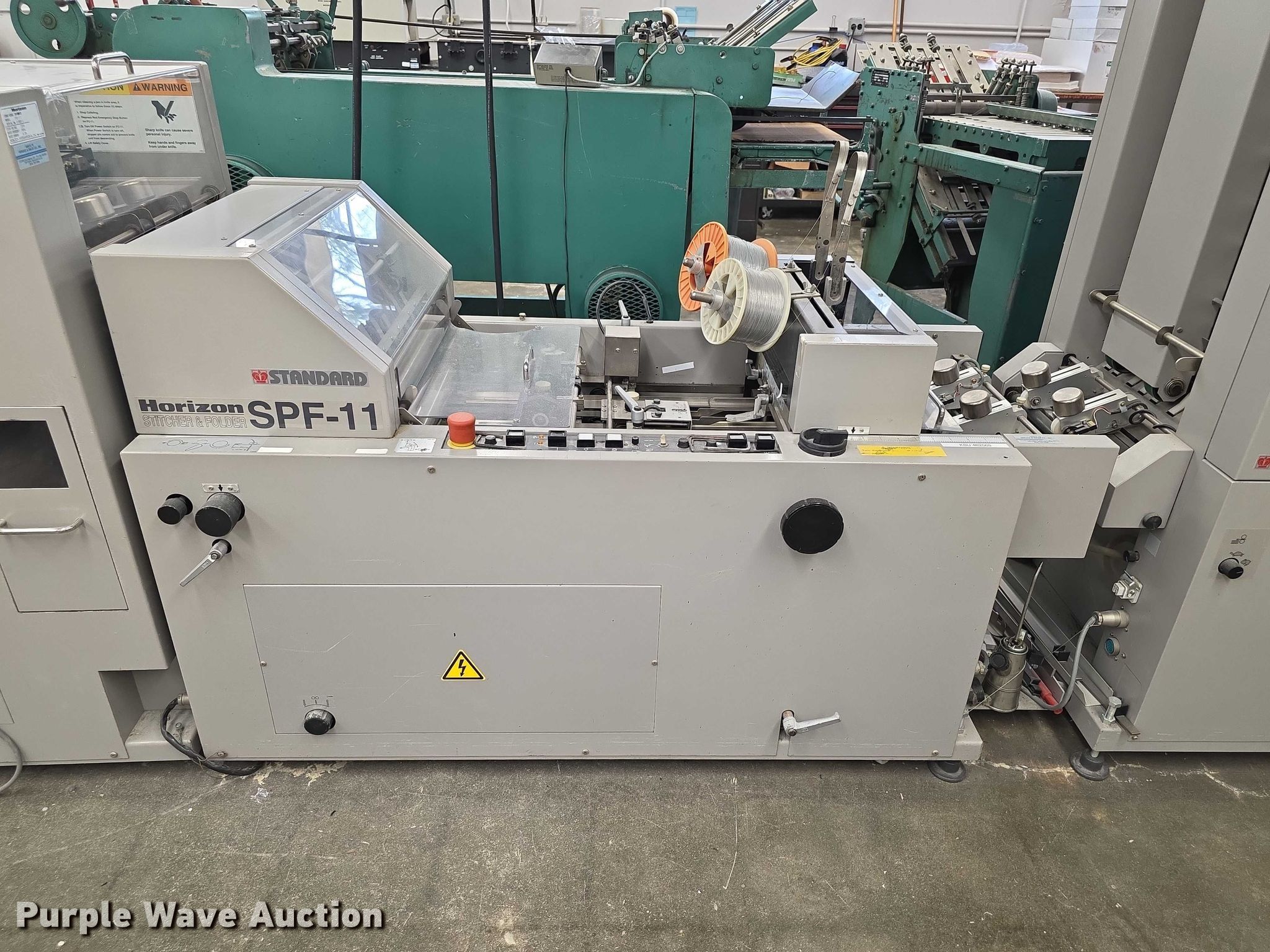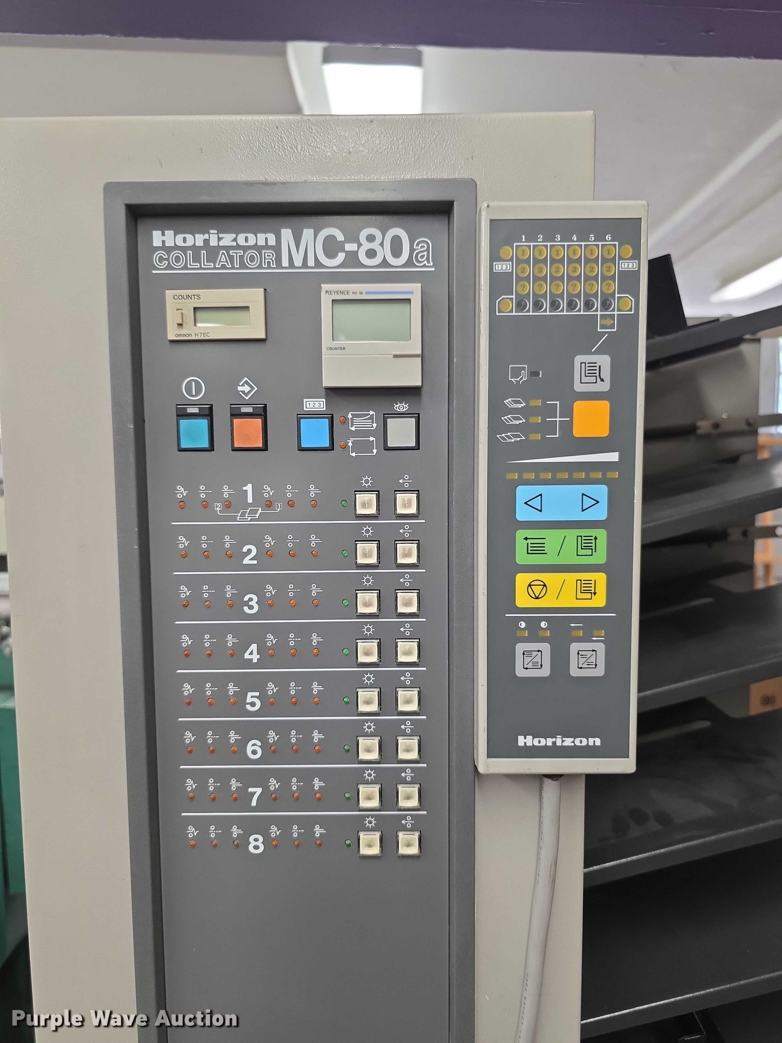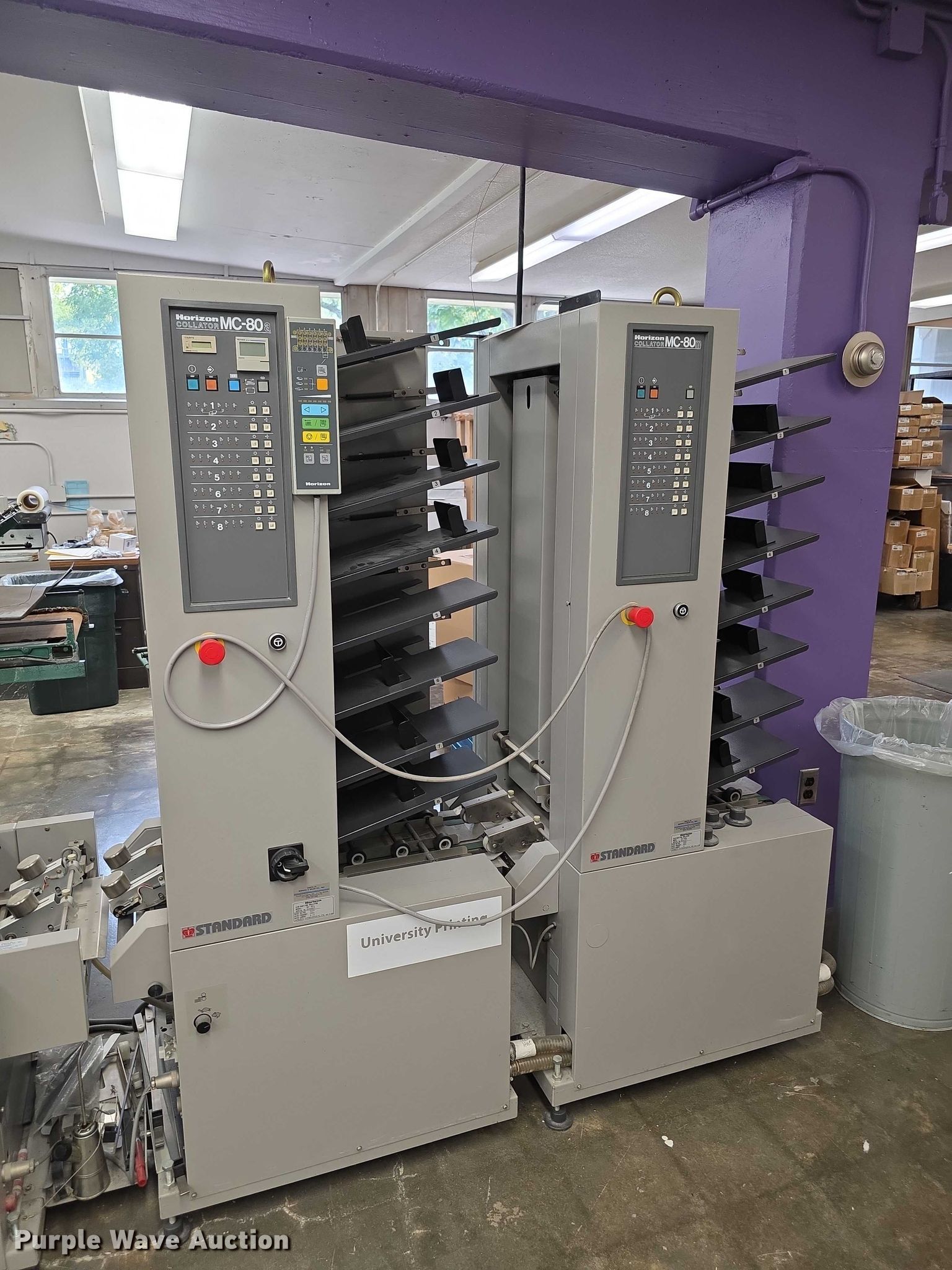Purple Wave is selling a used Office Supplies and Equip. in Kansas. This item is a Horizon FC11 collator/stitcher/trimmer with the following: (2) Horizon collators, Model MC89A, Model MC80M