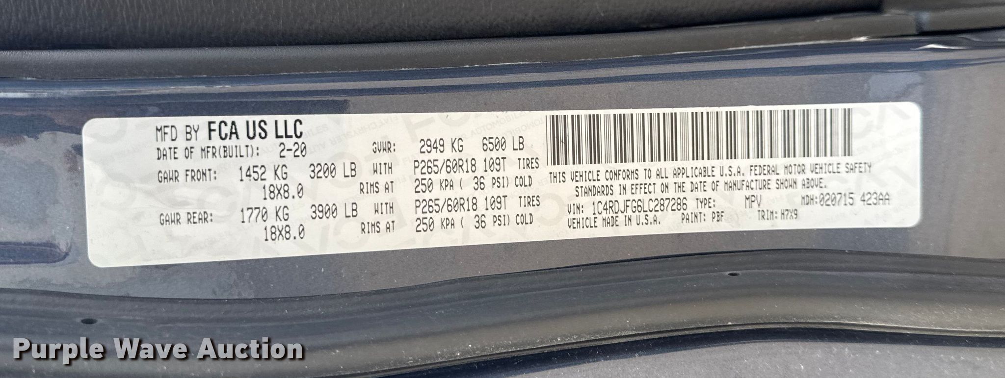 Purple Wave is selling a used Passenger Vehicle in Iowa. This item is a 2020 Dodge Durango SSV SUV with the following: Miles: 122,055 on odometer, VIN: 1C4RDJFG6LC287286