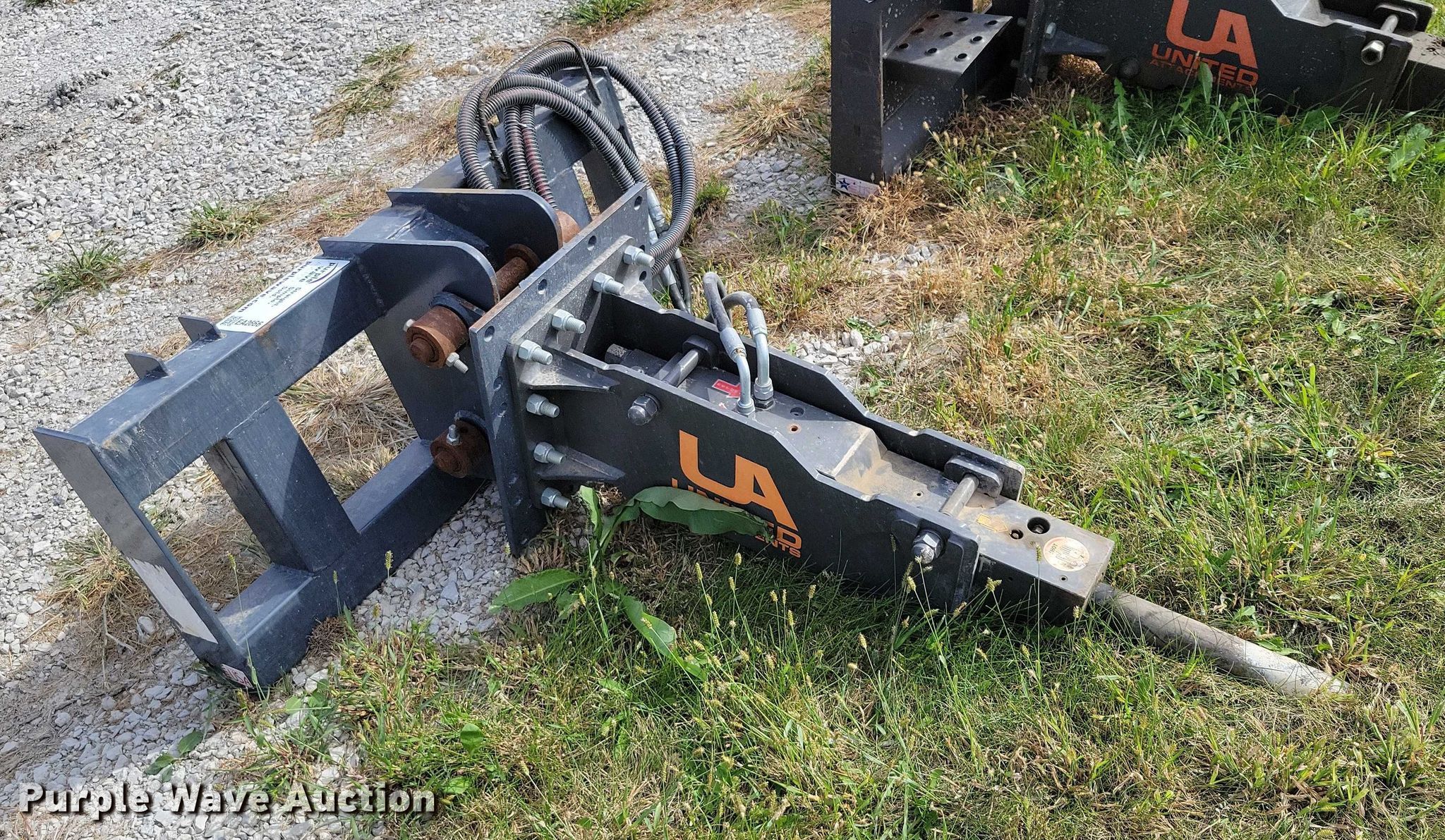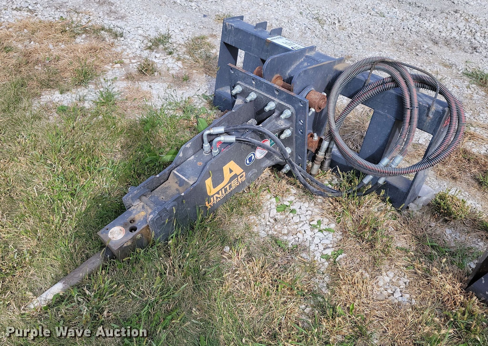 Purple Wave is selling a used Skid Steer Attach. in Iowa. This item is a United Attachment skid steer breaker with the following: Bit width: 2"