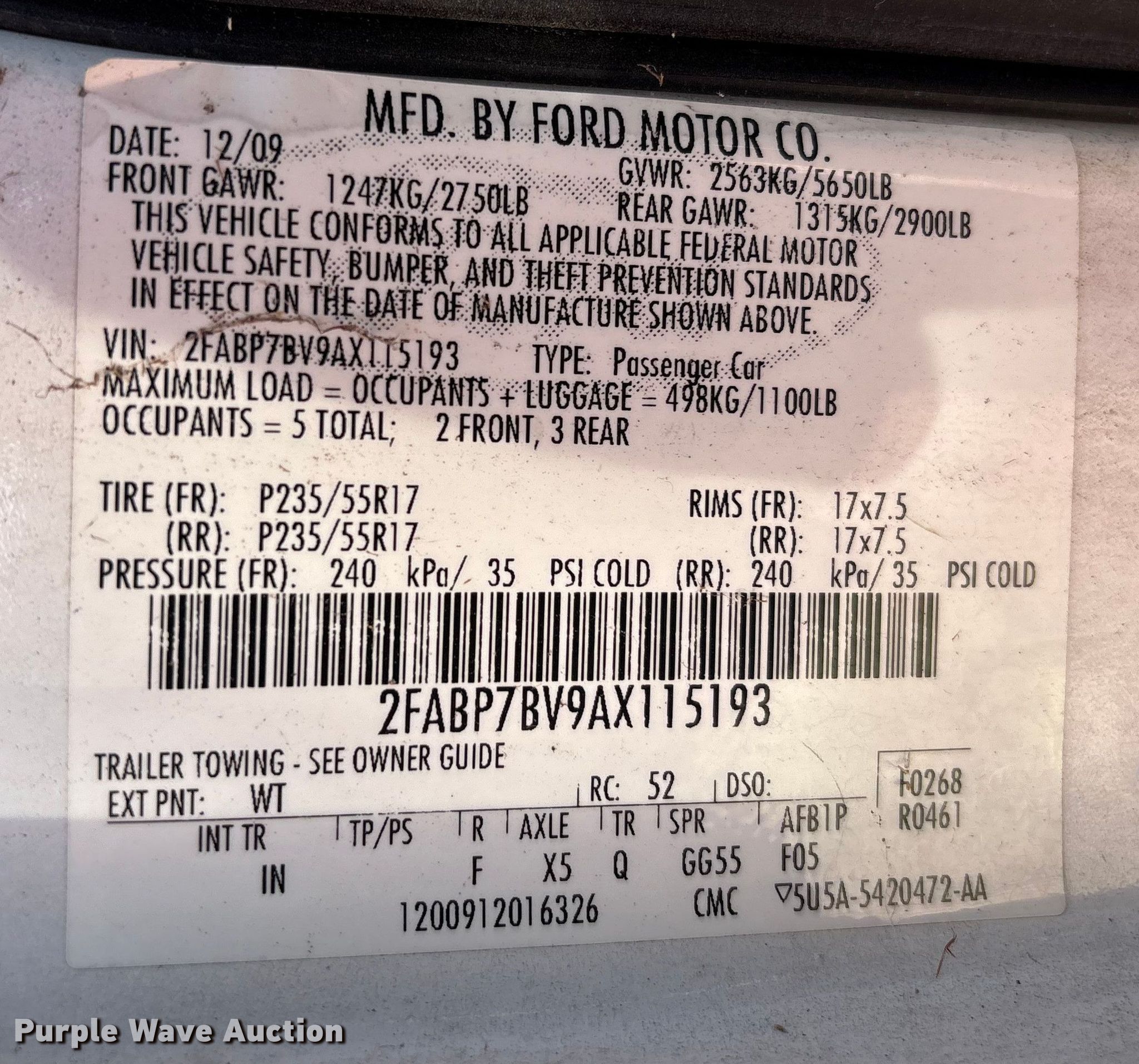- VIN: 2FABP7BV9AX115193
