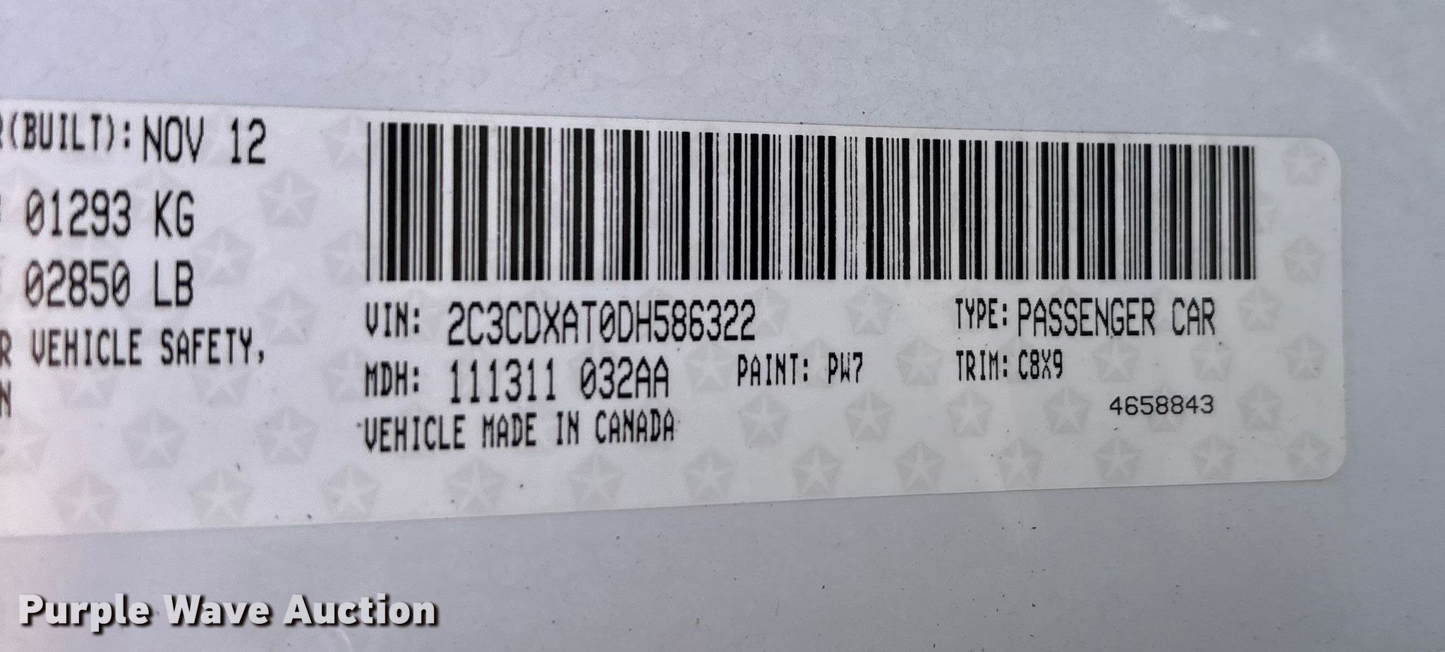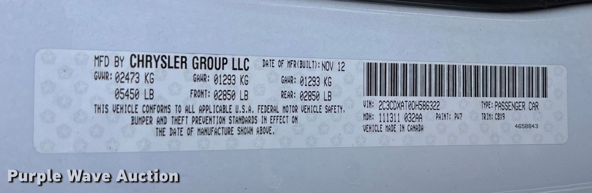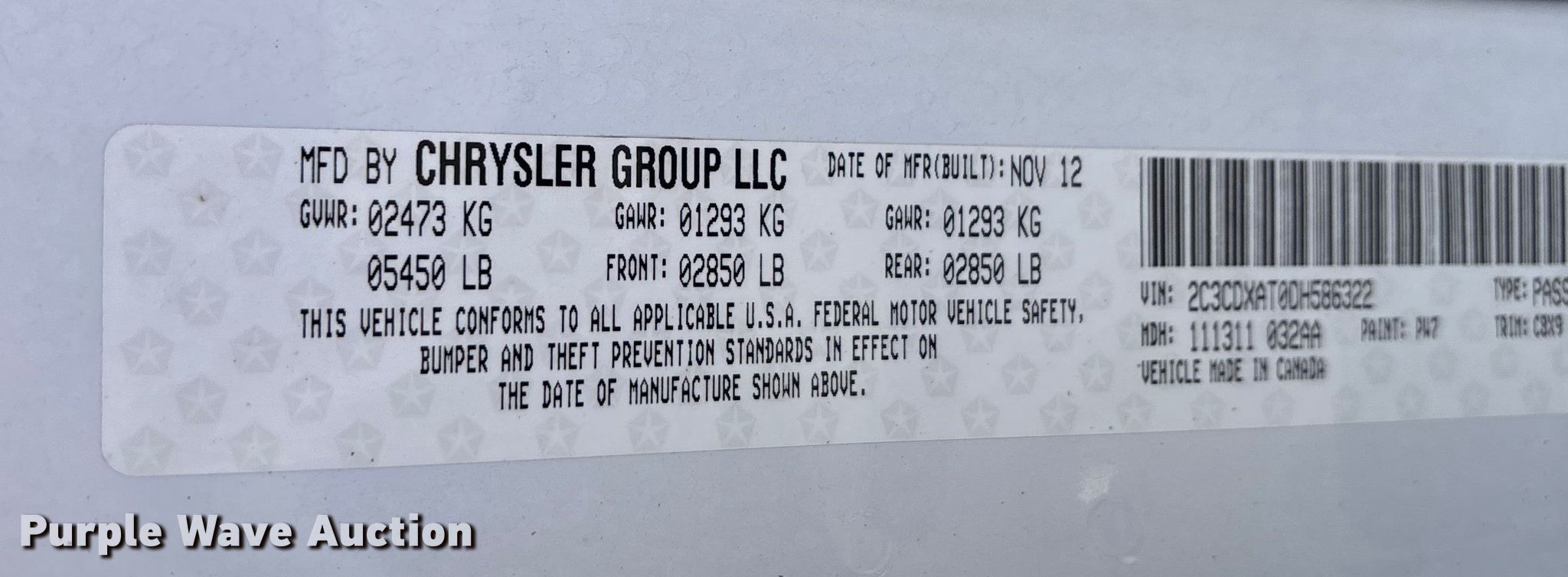 - VIN: 2C3CDXAT0DH586322