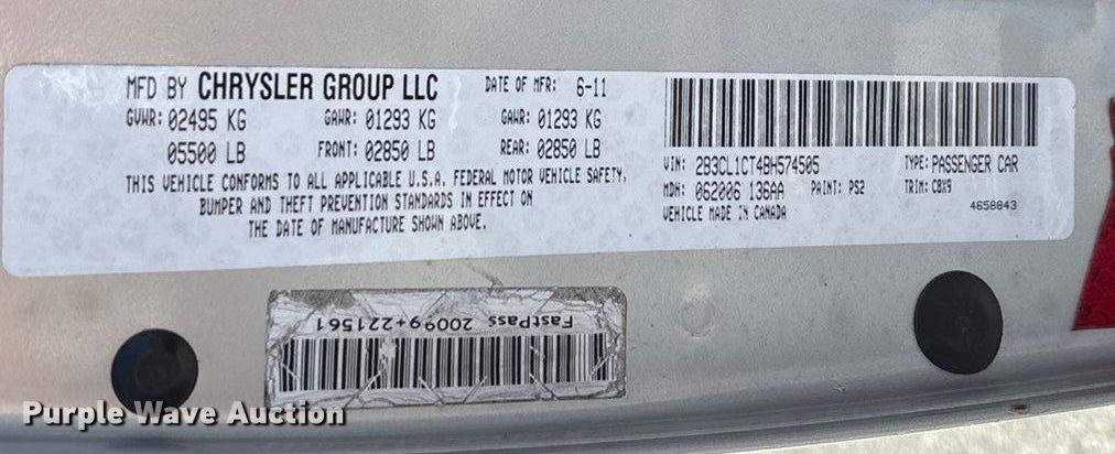 Purple Wave is selling a used Passenger Vehicle in Missouri. This item is a 2011 Dodge Charger Police with the following: Miles: 134,801 on odometer, Hours: 6,677 on meter, VIN: 2B3CL1CT4BH574505, Unit #: 011091