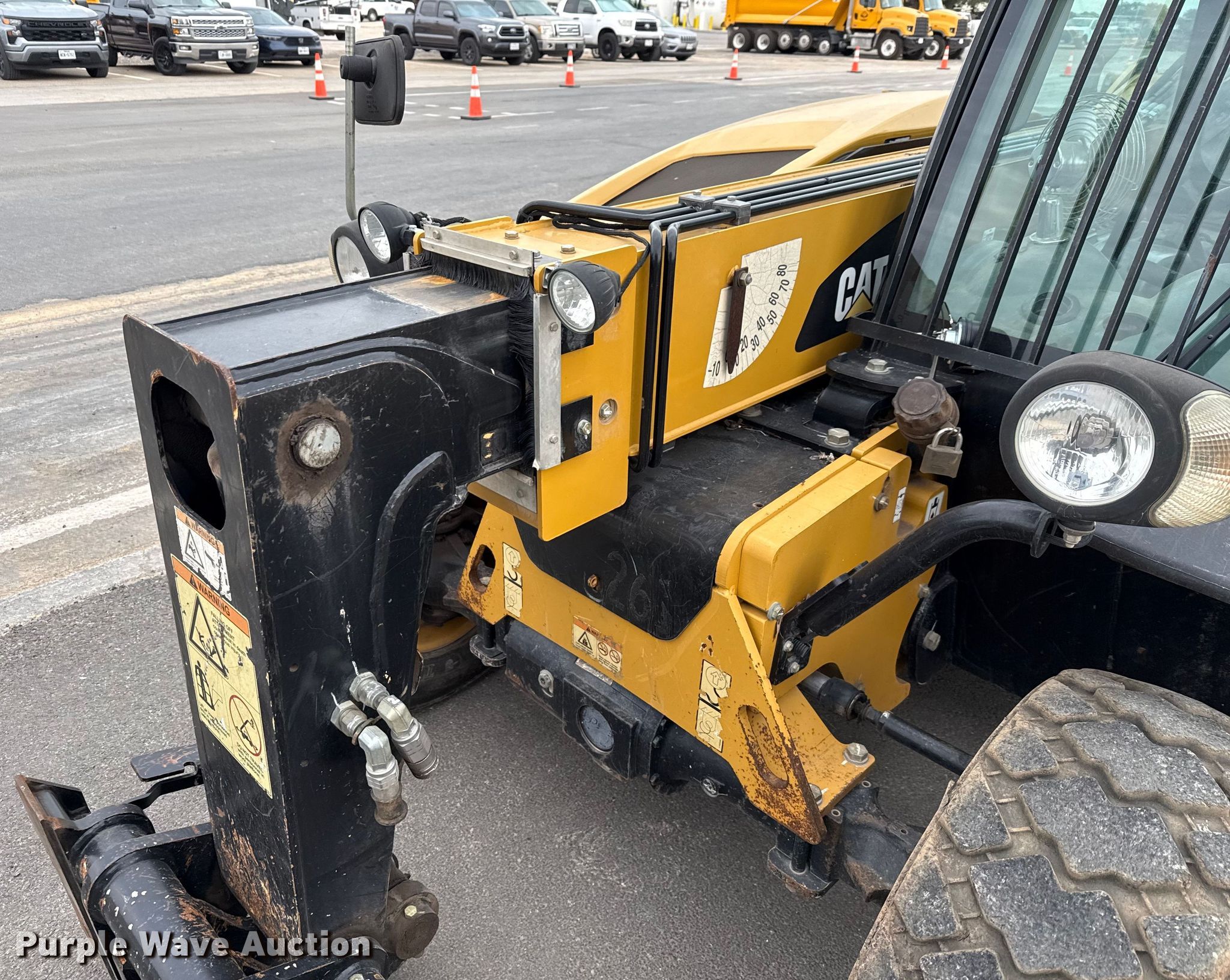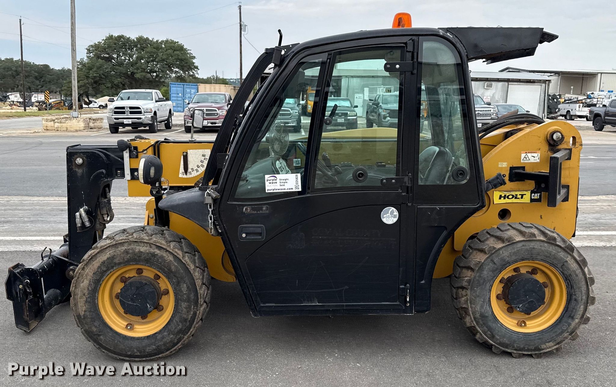 Purple Wave is selling a used Telehandler in Texas. This item is a 2016 Caterpillar TH255C telehandler with the following: Hours: 2,517 on meter, Serial: JK201047, Unit #: 261