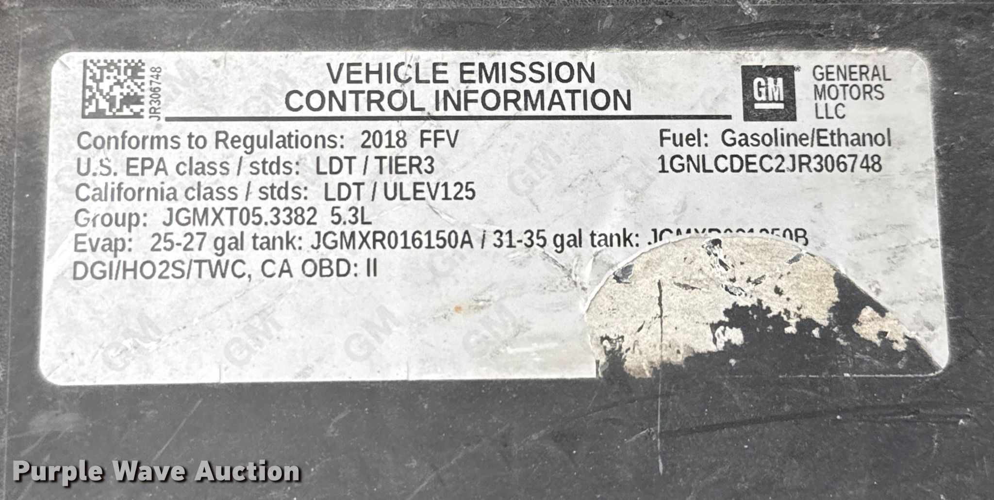 2018 Chevrolet Tahoe Police SUV. Miles: 166,647 on odometer, VIN: 1GNLCDEC2JR306748, Unit #: 1806. Engine Displacement: 5.3L V8 OHV, Cylinders: 8, Fuel type: Gas. Transmission Automatic. Interior AC, Heat, Seat: Power driver, Power passenger, Power windows, Power locks, Cruise control, Backup camera. Tires Size: 265/60R17. Notes Possible engine issues, unit must be connected to jump box , Center console missing, Rear seats missing, Rear door panels missing, Jump start required during on-site data collection. Texas title. Seller is a government entity who will be assigning and distributing the title. Please contact the seller for distribution questions. Comal County, TX. New Braunfels, TX 78132