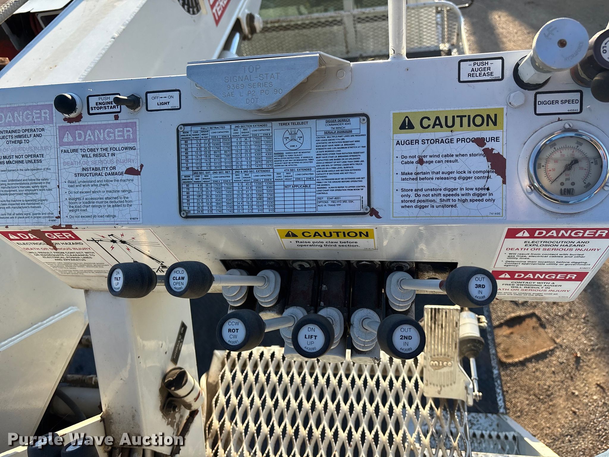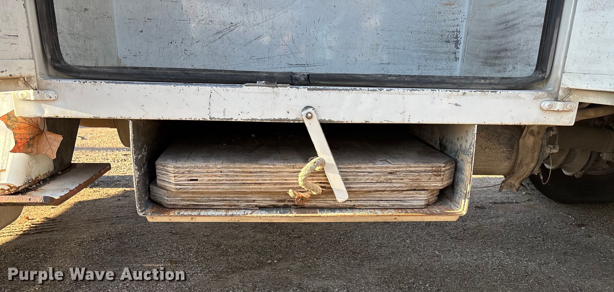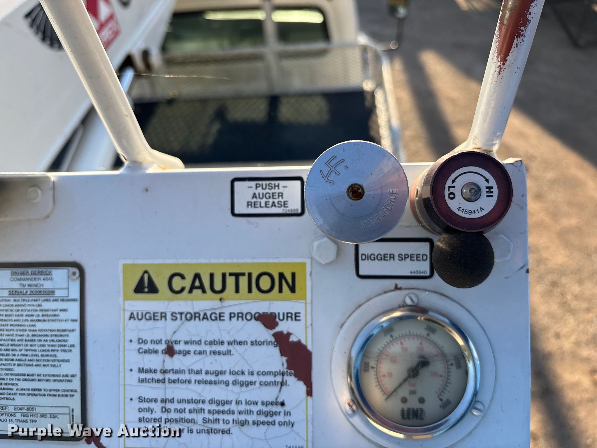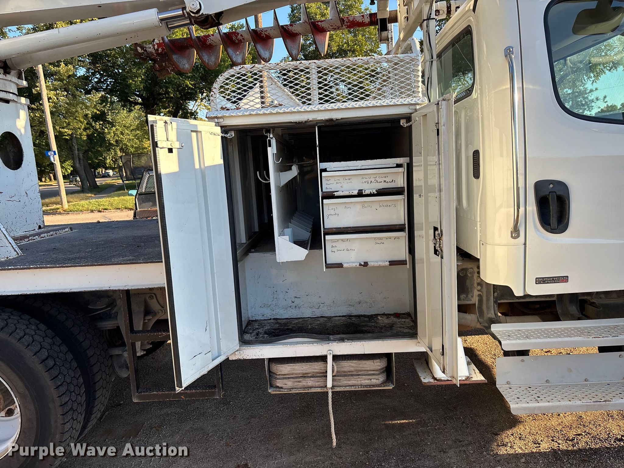 2003 Freightliner M2 digger derrick truck. Miles: 28,506 on odometer, Hours: 3,696 on meter, VIN: 1FVACXAK63HL12712. Engine Caterpillar 3126, Serial: HEP11975, Displacement: 7.2L, Cylinders: 6, Fuel type: Diesel, HP: 250, kW: 186.5. Transmission Automatic. Chassis Axles: Single, Suspension: Spring, Brakes: Air, PTO, GVWR: 33,000 lbs. Interior AC, Heat, Cruise control, Brake controller. Features Bed Utility bed, Combatel, Serial: 1849203, Length: 13' 5", Width: 7' 5", Boom 2002 Commander C4045, Serial: 2020920266, Maximum lift capacity: 25,930 lbs, Maximum lift height: 45', Boom type: Insulated, Telescopic, Boom controls Platform/ basket, Material handler, Pole guide, Auger Diameter: 18".. Tires Size: 11R22.5. Kansas title. Title distribution may be delayed up to 14 days from verification of funds. City of Wamego. Wamego, KS 66547