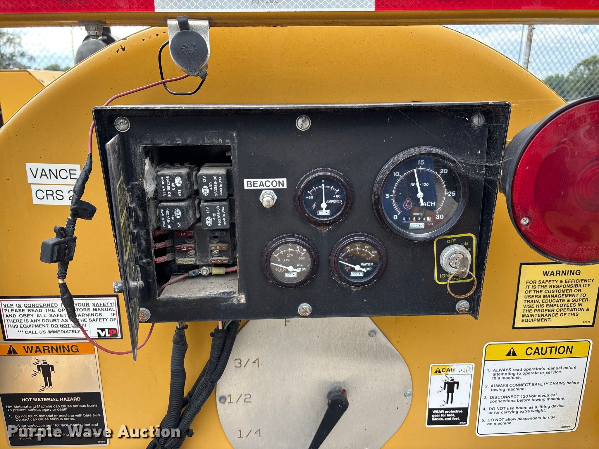 Rosco RA-200 melter applicator. Hours: 1,624 on meter, VIN: IR9AA1225X1317259, Serial: 19682. Dimensions Overall Length: 15'. Engine Cummins, Cylinders: 4, Fuel type: Diesel. Notes Dead battery, Unknown operating condition. This is worksite support equipment and will not come with a title. Transfer of ownership documentation will be a bill of sale. City of Wamego. Wamego, KS 66547