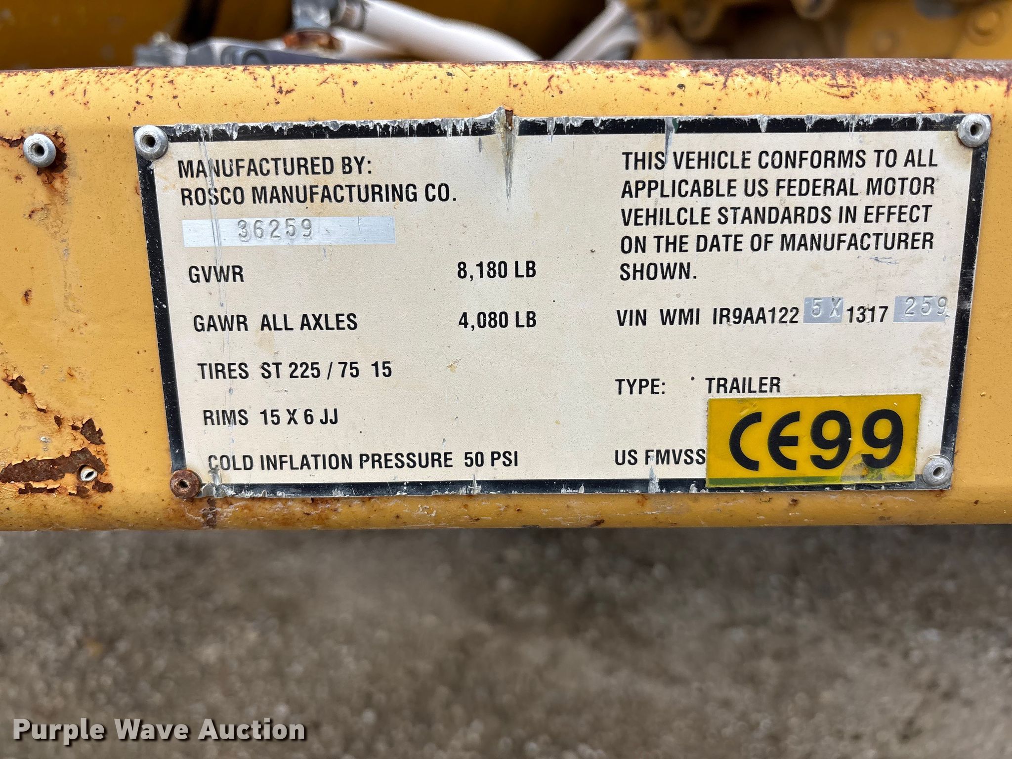 Purple Wave is selling a used Pot Hole Patcher in Kansas. This item is a Rosco RA-200 melter applicator with the following: Hours: 1,624 on meter, VIN: IR9AA1225X1317259, Serial: 19682