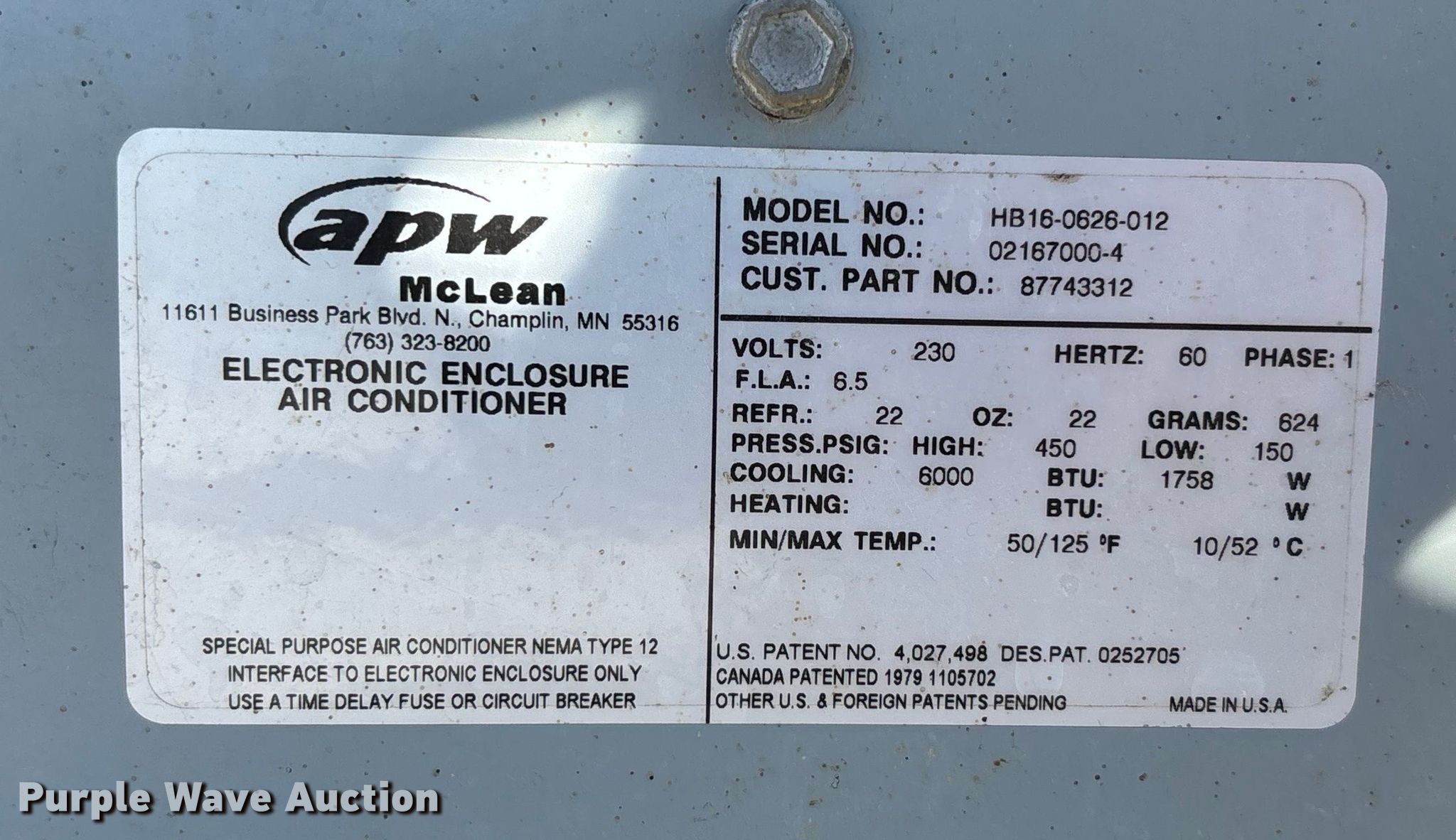 (15) air conditioning units. Model: M520826015H, Model: HB160926014, Volts: 230, Phase: Single. City of Lincoln - WRRF. Lincoln, NE 68521