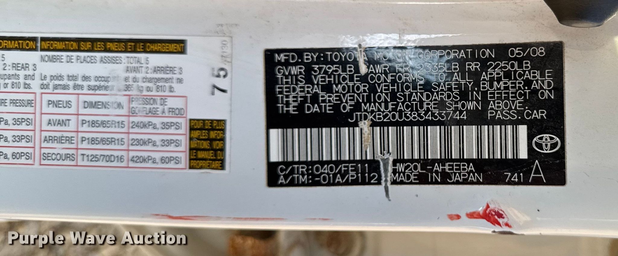 Purple Wave is selling a used Passenger Vehicle in Iowa. This item is a 2008 Toyota Prius with the following: Miles: 178,232 on odometer, VIN: JTDKB20U383433744