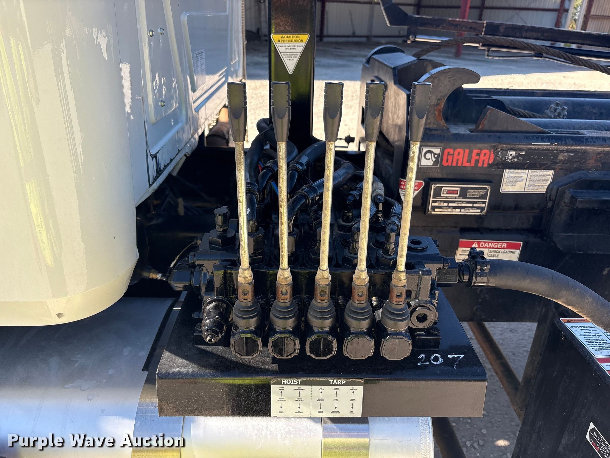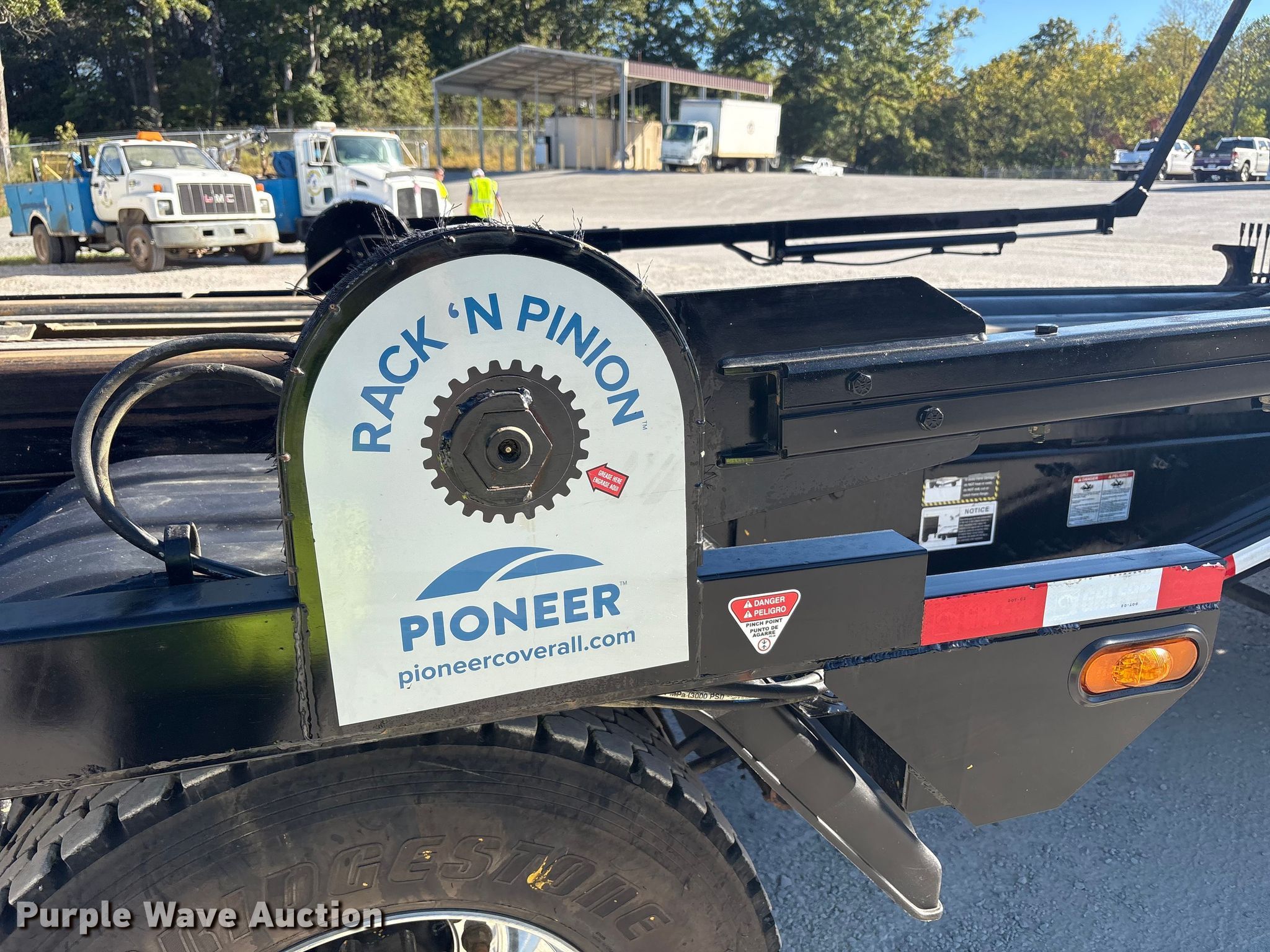 Purple Wave is selling a used Rollback or Tow Truck in Kentucky. This item is a 2025 Mack GR64F roll-off container truck with the following: Miles: 57,664 on odometer, Hours: 2,604 on meter, VIN: 1M2GR3GCXSM044651
