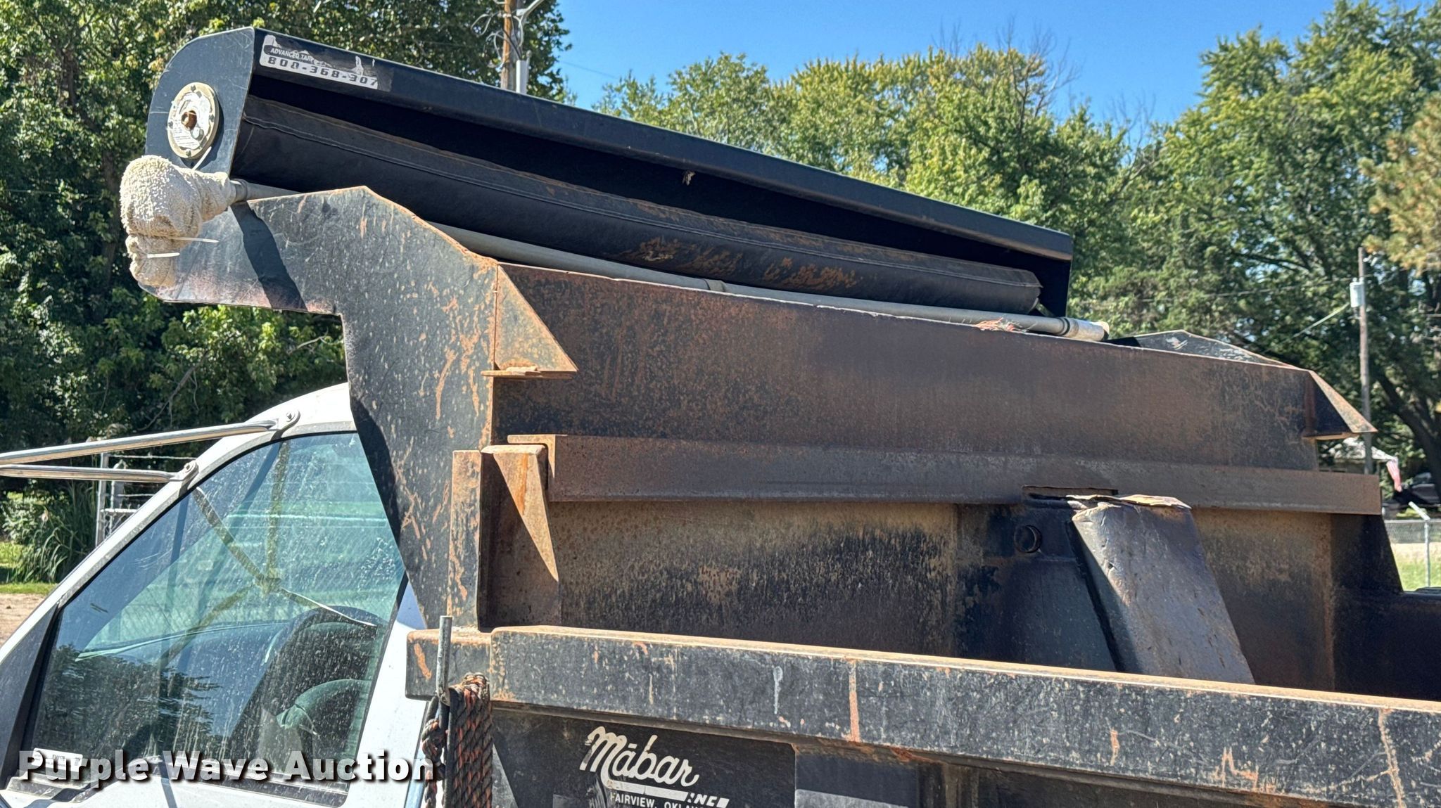 2004 Ford F650 Super Duty XL dump truck. Miles: 82,085 on odometer, VIN: 3FRNF65394V609596. Engine Caterpillar 3126, Displacement: 7.2L, Cylinders: 6, Fuel type: Diesel. Transmission Manual, Speed: 7. Chassis Axles: Single, Suspension: Spring, Brakes: Hydraulic, PTO, GVWR: 26,000 lbs FAWR: 8,500 lbs, RAWR: 17,500 lbs. Interior AC, Heat, Cruise control. Features Bed Dump bed, Mabar DB103005, Serial: 89-1919, Length: 10', Width: 96", Side board height: 30", Bed type: Steel, Roll tarp, Ram: Single, End gate: Manual. Tires Size: 10R22.5. Notes Dash warning indicator: ABS. Kansas title. Title distribution may be delayed up to 30 days from verification of funds. Salem Township. Haysville, KS 67060