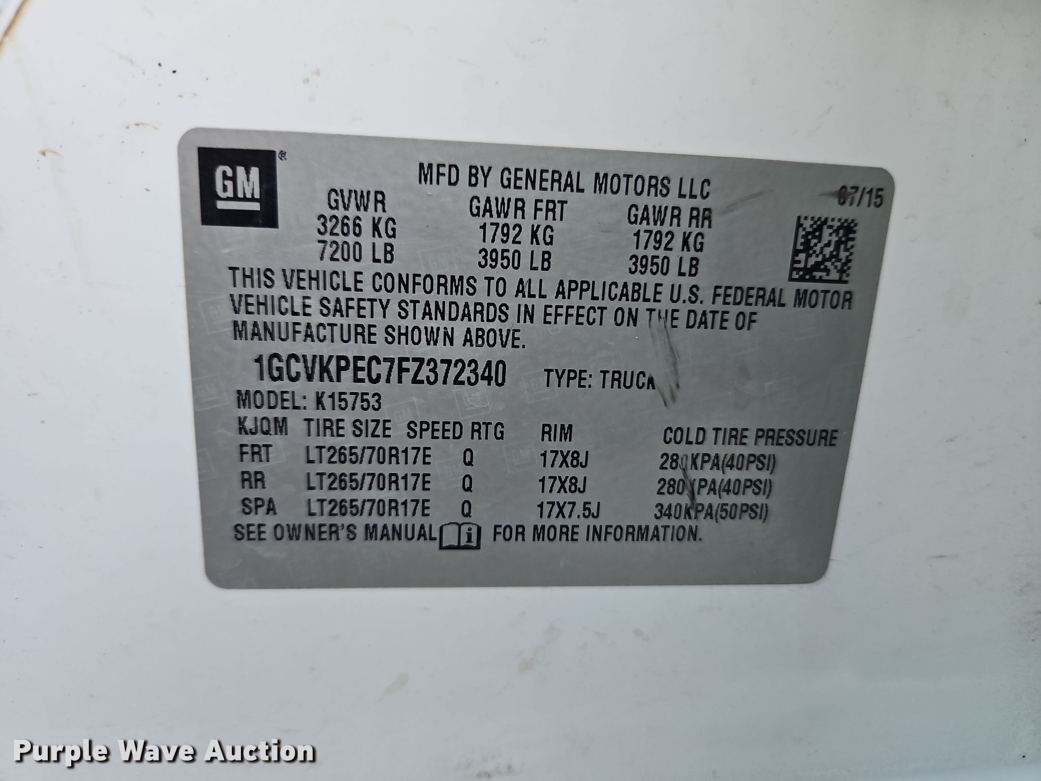 Purple Wave is selling a used 1/2 Ton Pickup or Van in Missouri. This item is a 2015 Chevrolet Silverado 1500 Double Cab pickup truck with the following: Miles: 100,728 on odometer, VIN: 1GCVKPEC7FZ372340