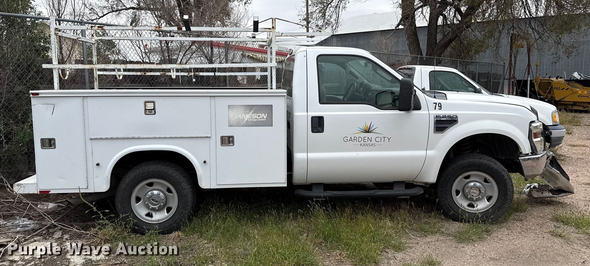This 2008 Ford F250 utility bed pickup truck will sell to the highest bidder regardless of price.
