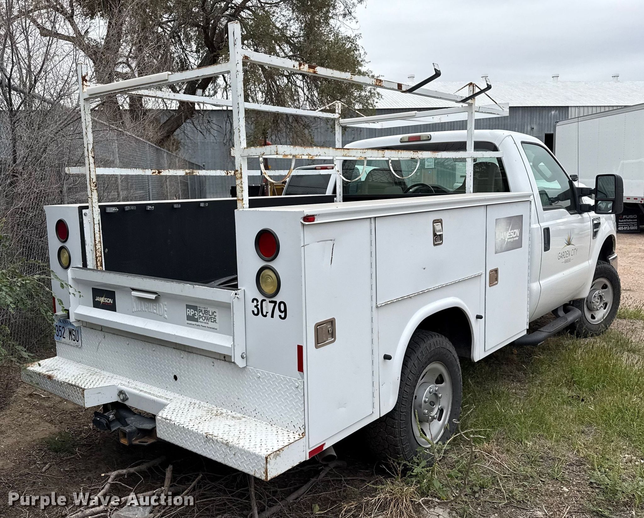 2008 Ford F250 utility bed pickup truck has sold in Garden City, Kansas for $3630. Item EP0711 sold on November 18th, 2025.