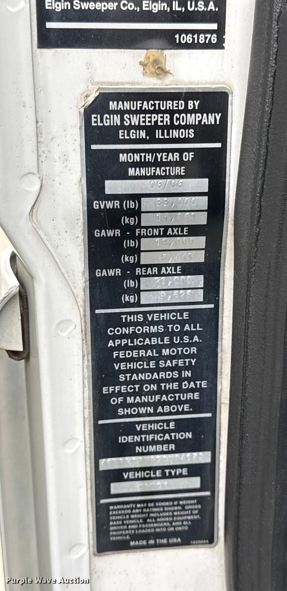 2006 Sterling SC8000 street sweeper. Miles: 31,947 on odometer, VIN: 49HAADBV97DW84159. Engine Cummins ISB, Displacement: 5.9L, Cylinders: 6, Fuel type: Diesel, HP: 185. Transmission Automatic. Chassis Suspension: Spring, Brakes: Air, GVWR: 33,000 lbs. Operators station AC, Heat, Dual operating station. Features Bed Sweeper bed, Elgin Crosswind, Sweeper bed type: Vacuum, Left gutter broom Diameter: 36", Right gutter broom Diameter: 36", Water spray system, Engine John Deere, Cylinders: 4. Tires Size: 11R22.5. Notes Spare filters included, Manuals included, Intermittent left gutter broom issues, gets stuck in outward position. Illinois title. Seller is a government entity who will be assigning and distributing the title. Please contact the seller for distribution questions. Village of Harwood Heights. Harwood Heights, IL 60706