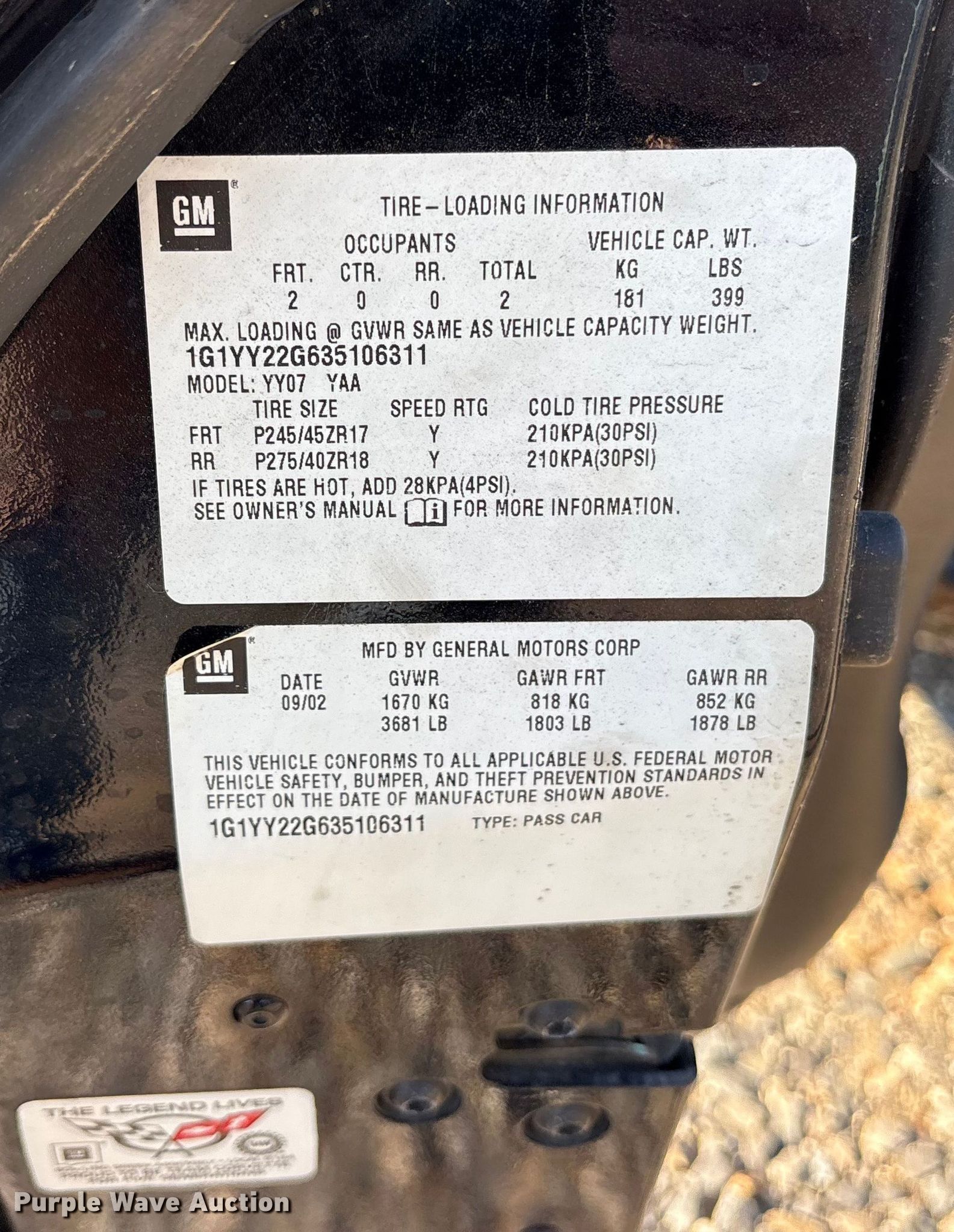 Purple Wave is selling a used Passenger Vehicle in Oklahoma. This item is a 2003 Chevrolet Corvette with the following: Miles: 82,405 on odometer, VIN: 1G1YY22G635106311