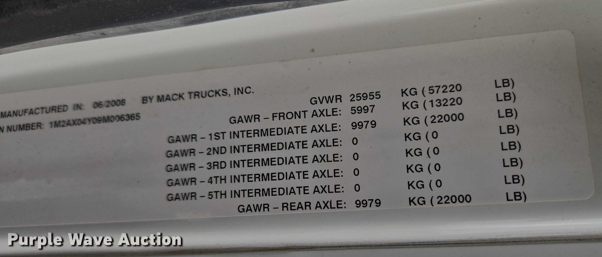 Purple Wave is selling a used Construction Dump Truck in Oklahoma. This item is a 2009 Mack Granite dump truck with the following: Miles: 166,807 on odometer, VIN: 1M2AX04Y09M006365, Unit #: 94