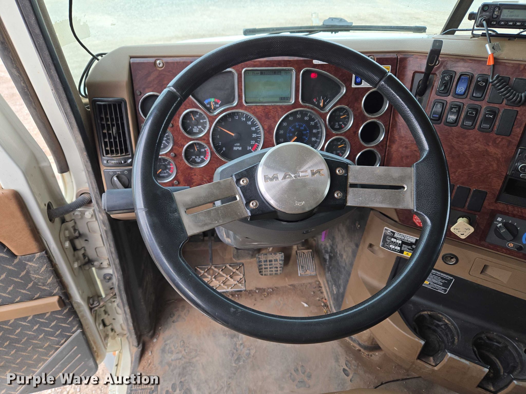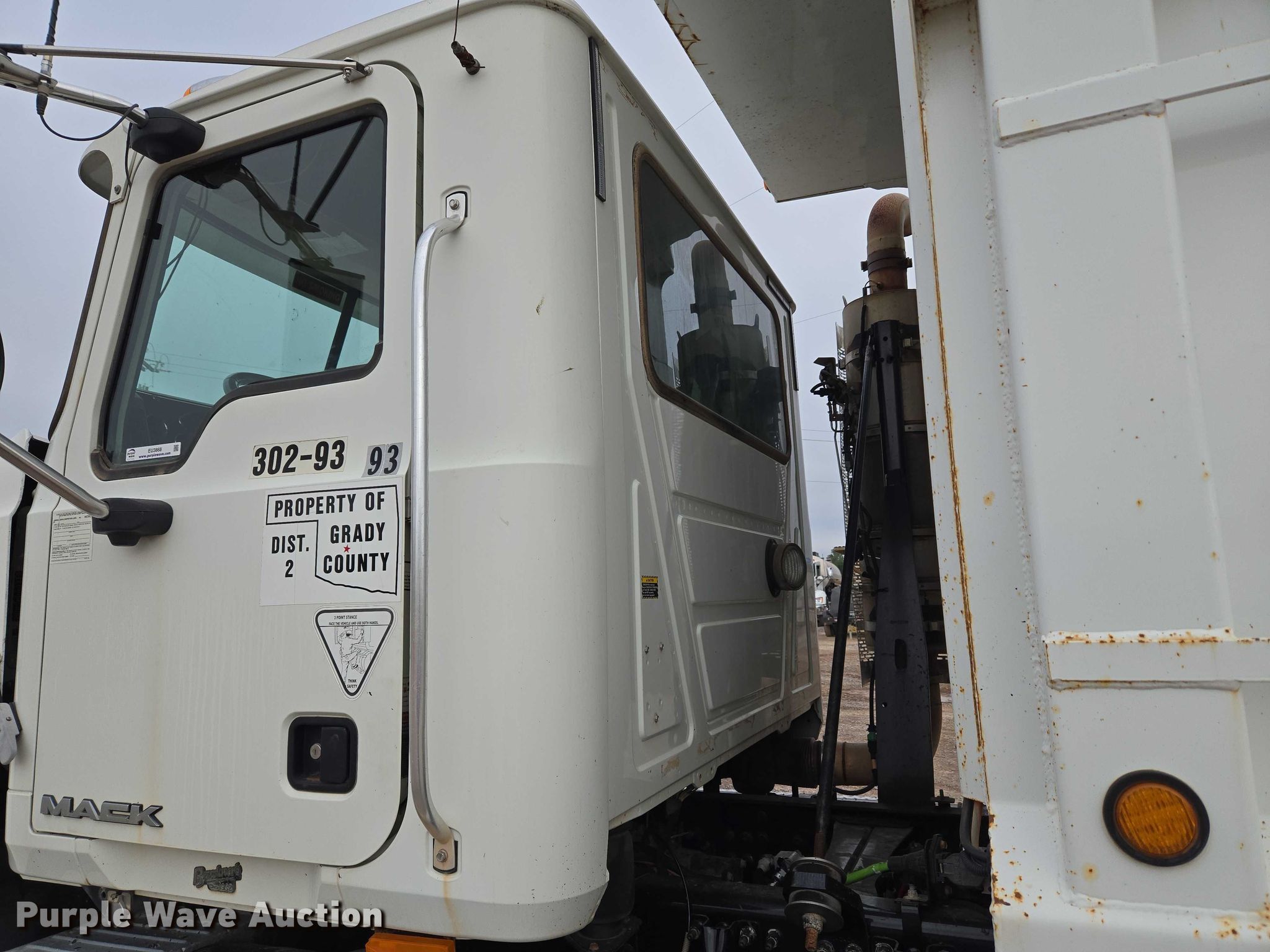 2009 Mack Granite dump truck. Miles: 188,061 on odometer, VIN: 1M2AX04Y99M006364, Unit #: 93. Engine Mack, Displacement: 10.8L, Cylinders: 6, Fuel type: Diesel. Transmission Mack Maxitorque, Manual, Speed: 9. Chassis Axles: Tandem, Differential lock: Inter-axle, Suspension: Camelback, Brakes: Air, PTO, GVWR: 57,220 lbs FAWR: 13,220 lbs, IAWR: 22,000 lbs, RAWR: 22,000 lbs. Interior AC, Heat, Cruise control, Brake controller. Features Bed Dump bed, OX Bodies, INC I5FT-14/16YD, Serial: 091607202988AL, Length: 15' 10.5", Width: 8', Side height: 45.5", Side board height: 8", Bed type: Steel, Roll tarp, Ram: Single, End gate: Air operated. Tires Front: 385/65R22.5, Rear: 11R24.5. Notes 2 way radio not included. Oklahoma title. Title distribution may be delayed up to 30 days from verification of funds. Grady County, OK. 3900 South 4th Street. Chickasha, OK 73018