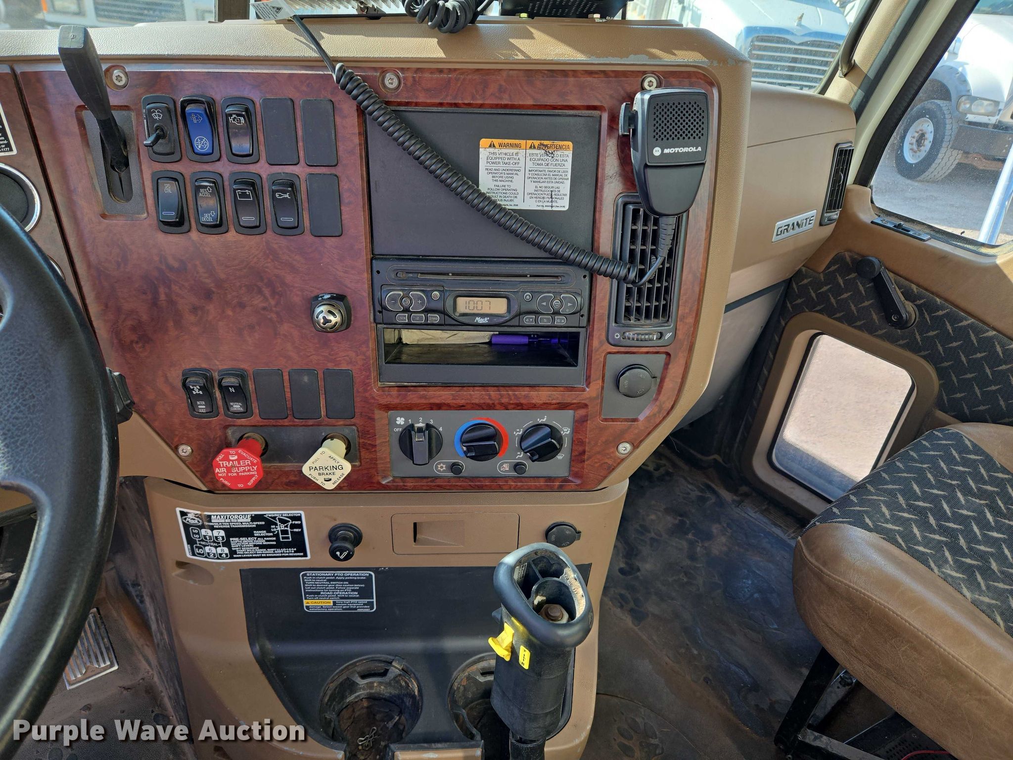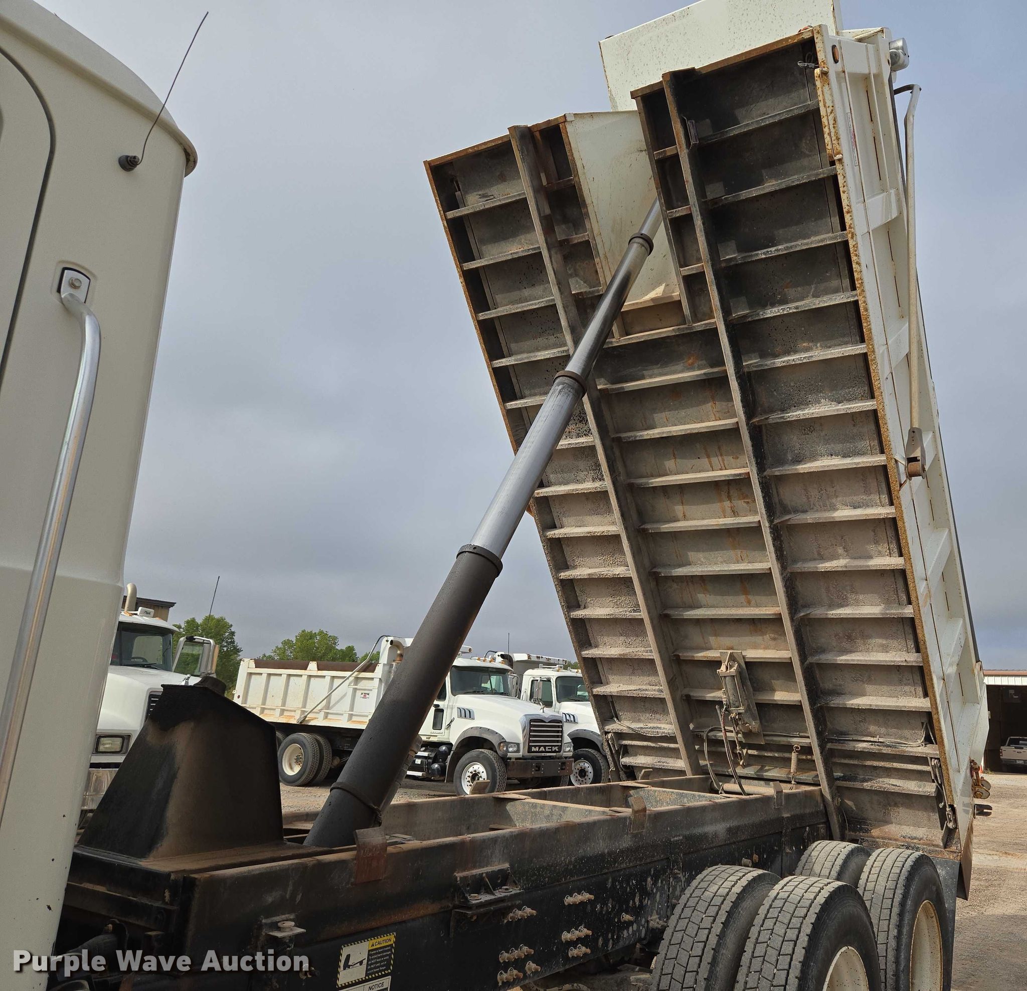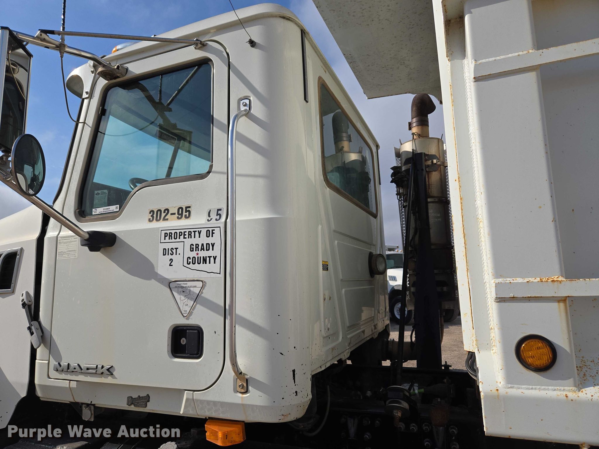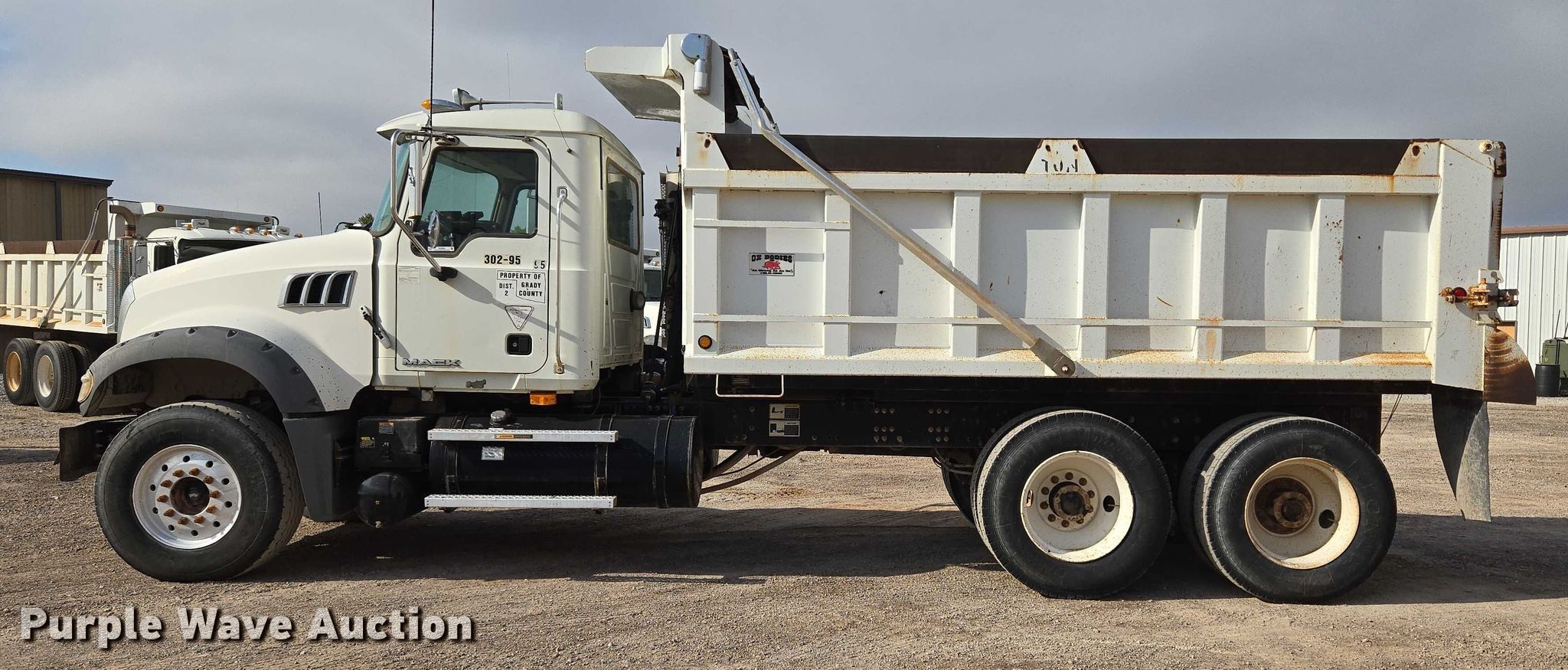 2009 Mack Granite dump truck. Miles: 193,712 on odometer, VIN: 1M2AX04Y29M006366, Unit #: 95. Engine Mack, Displacement: 10.8L, Cylinders: 6, Fuel type: Diesel, Engine brake. Transmission Mack Maxitorque, Manual, Speed: 9. Chassis Axles: Tandem, Differential lock: Inter-axle, Suspension: Camelback, Brakes: Air, PTO, GVWR: 57,220 lbs FAWR: 13,220 lbs, IAWR: 22,000 lbs, RAWR: 22,000 lbs. Interior AC, Heat, Cruise control, Brake controller. Features Bed Dump bed, Length: 15' 10.5", Width: 8', Side height: 45.5", Side board height: 8", Bed type: Steel, Roll tarp, Ram: Single, End gate: Air operated. Tires Front: 385/65R22.5, Rear: 11R24.5. Notes 2 way radio not included. Oklahoma title. Title distribution may be delayed up to 30 days from verification of funds. Grady County, OK. 3900 South 4th Street. Chickasha, OK 73018