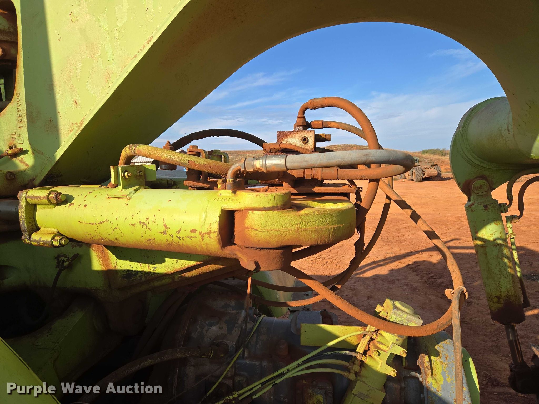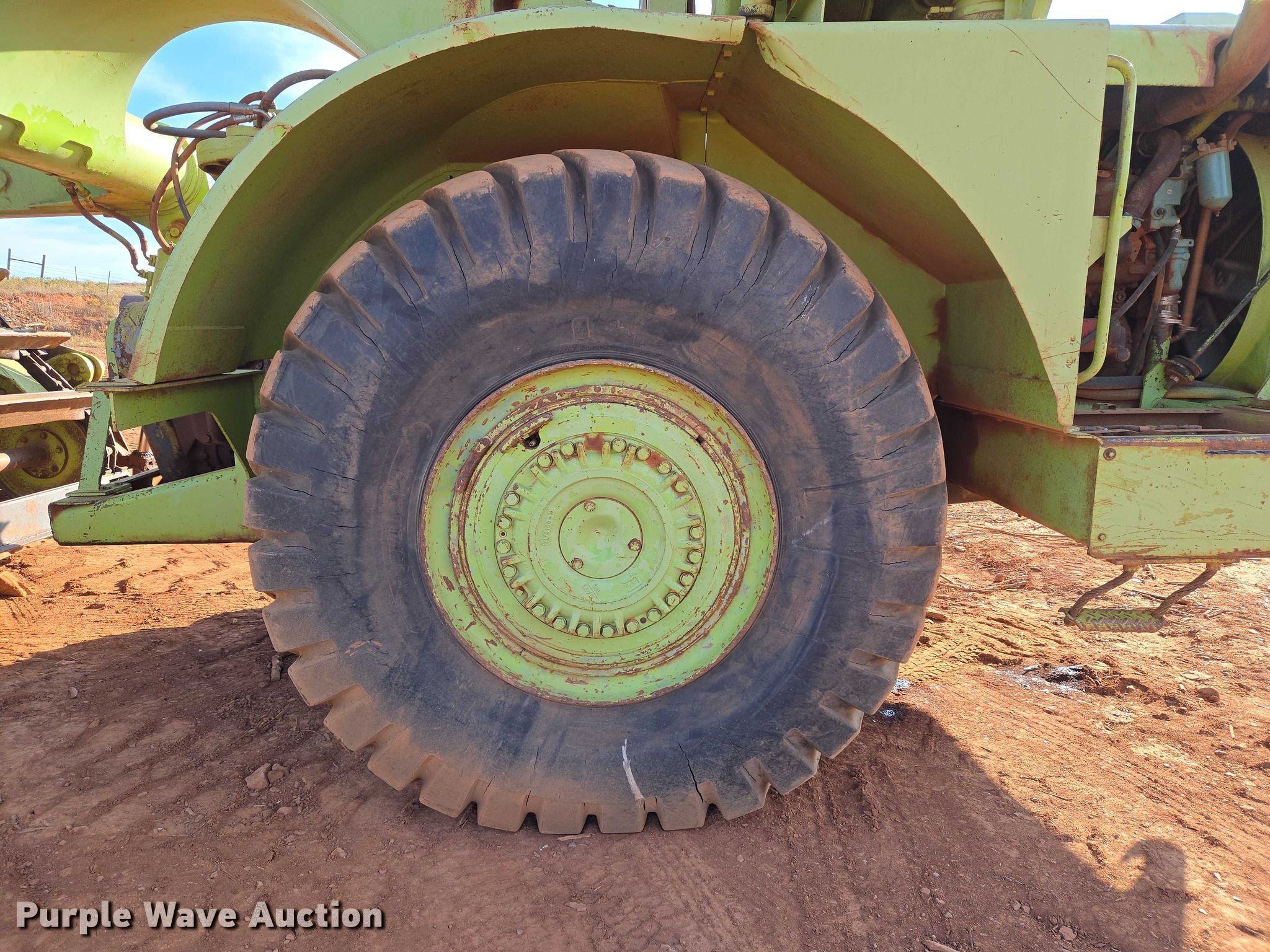 1978 Terex 33T0T-H elevating scraper. Hours: Unknown, Serial: 65778. Engine Detroit Diesel, Cylinders: 8, Fuel type: Diesel. Transmission Powershift, 6F - 1R. Chassis Brakes: Air. Operators station OROPS. Features Elevator reverse, Hydraulic lift, Scraper controls: Lever controls No. of controls: 2, Rear push block. Tires Size: 29.5-29. Notes Glass cracked, Non-operational hour meter, Engine oil leak, Hydraulic leak. View repairs. City of Sayre OK. Sayre, OK 73662