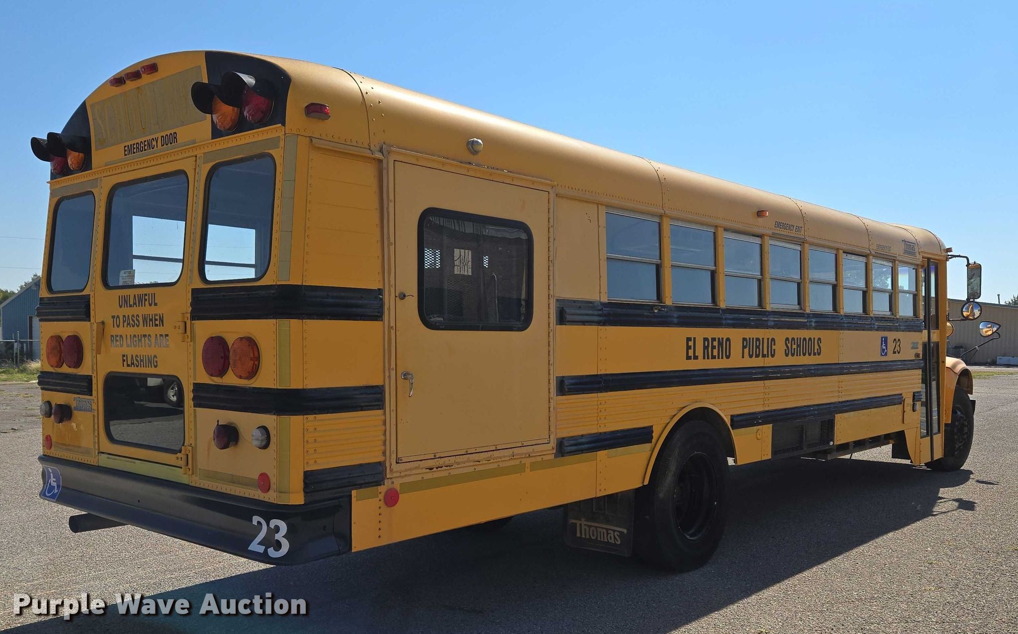 1999 International 3800 school bus. Miles: 39,804 on odometer, VIN: 1HVBBABP5XH683239. Engine International B175F, Displacement: 7.3L, Fuel type: Diesel. Transmission Automatic. Chassis Axles: Single, Suspension: Spring, Brakes: Hydraulic, GVWR: 29,000 lbs. Interior Heat, Cruise control, Passengers: 42, Wheelchair lift. Tires Size: 11R22.5. Notes Jump start required during on-site data collection. Oklahoma title. Title distribution may be delayed up to 30 days from verification of funds. El Reno Public Schools. 203 North Country Club Road. El Reno, OK 73036