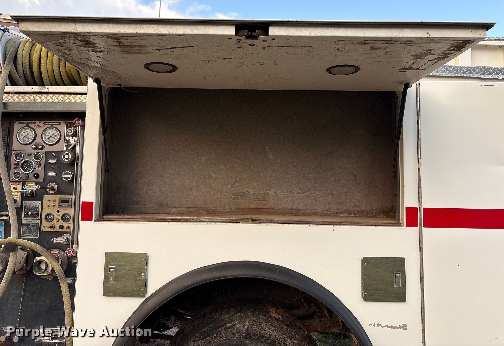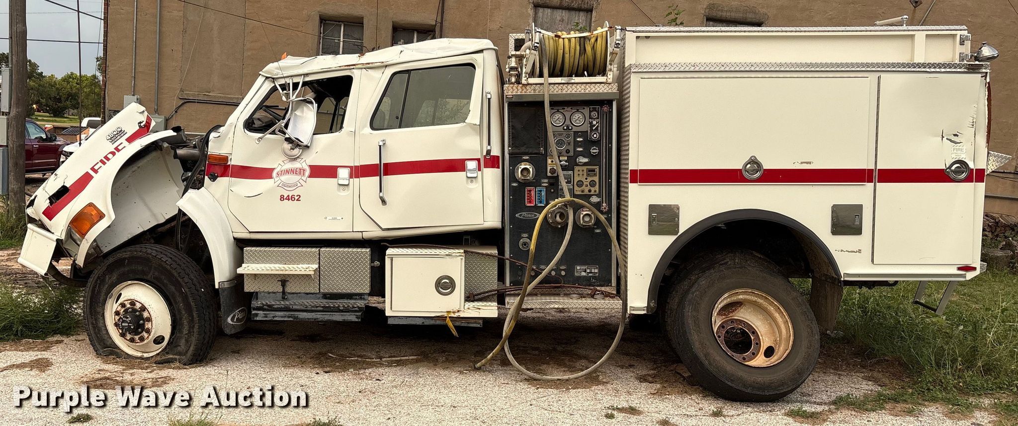 Purple Wave is selling a used Fire Truck or Emergency Vehicle in Texas. This item is a 2002 International 4800 pumper fire truck with the following: Miles: Unknown, VIN: 2H539976, Unit #: 8462
