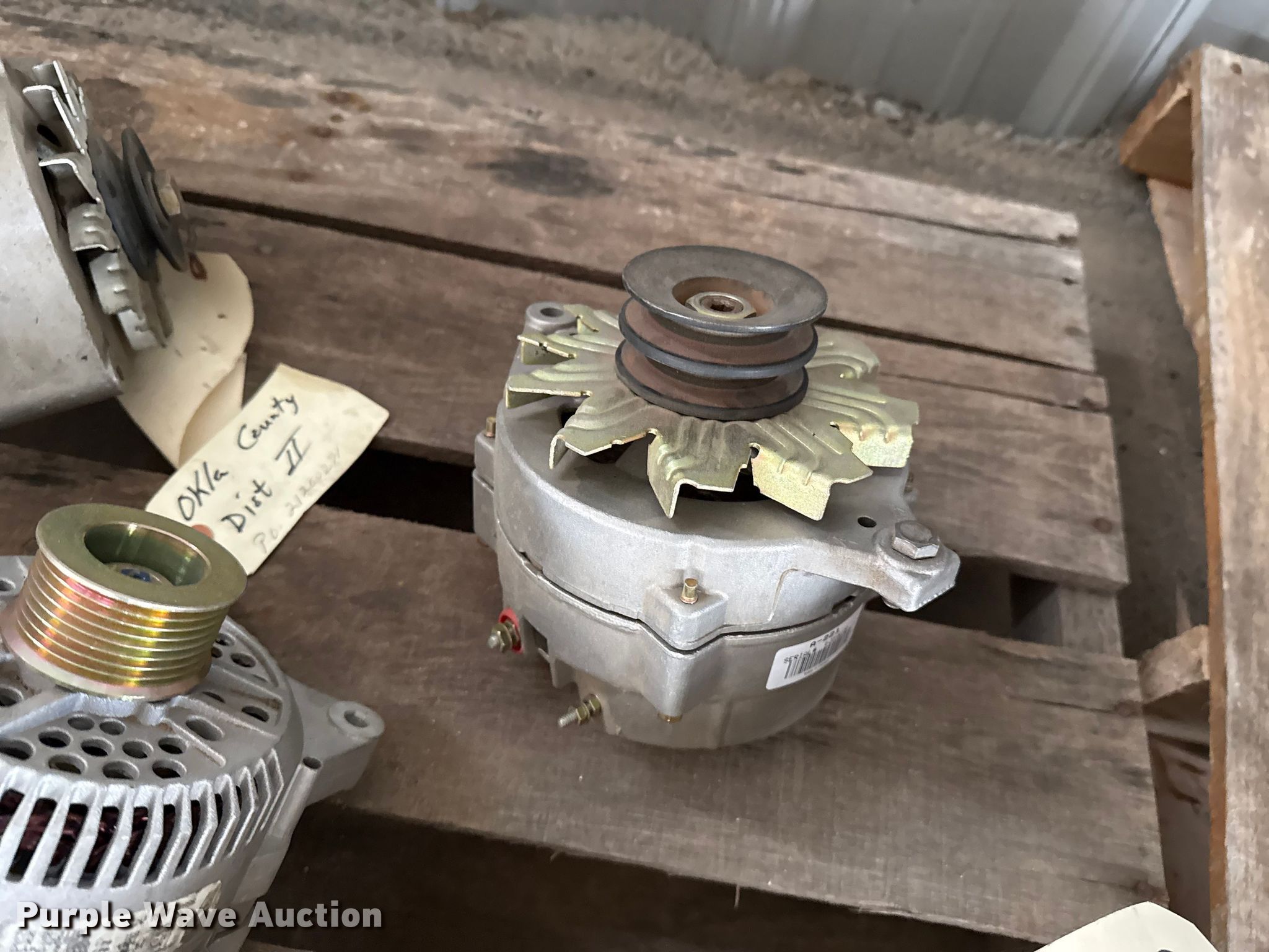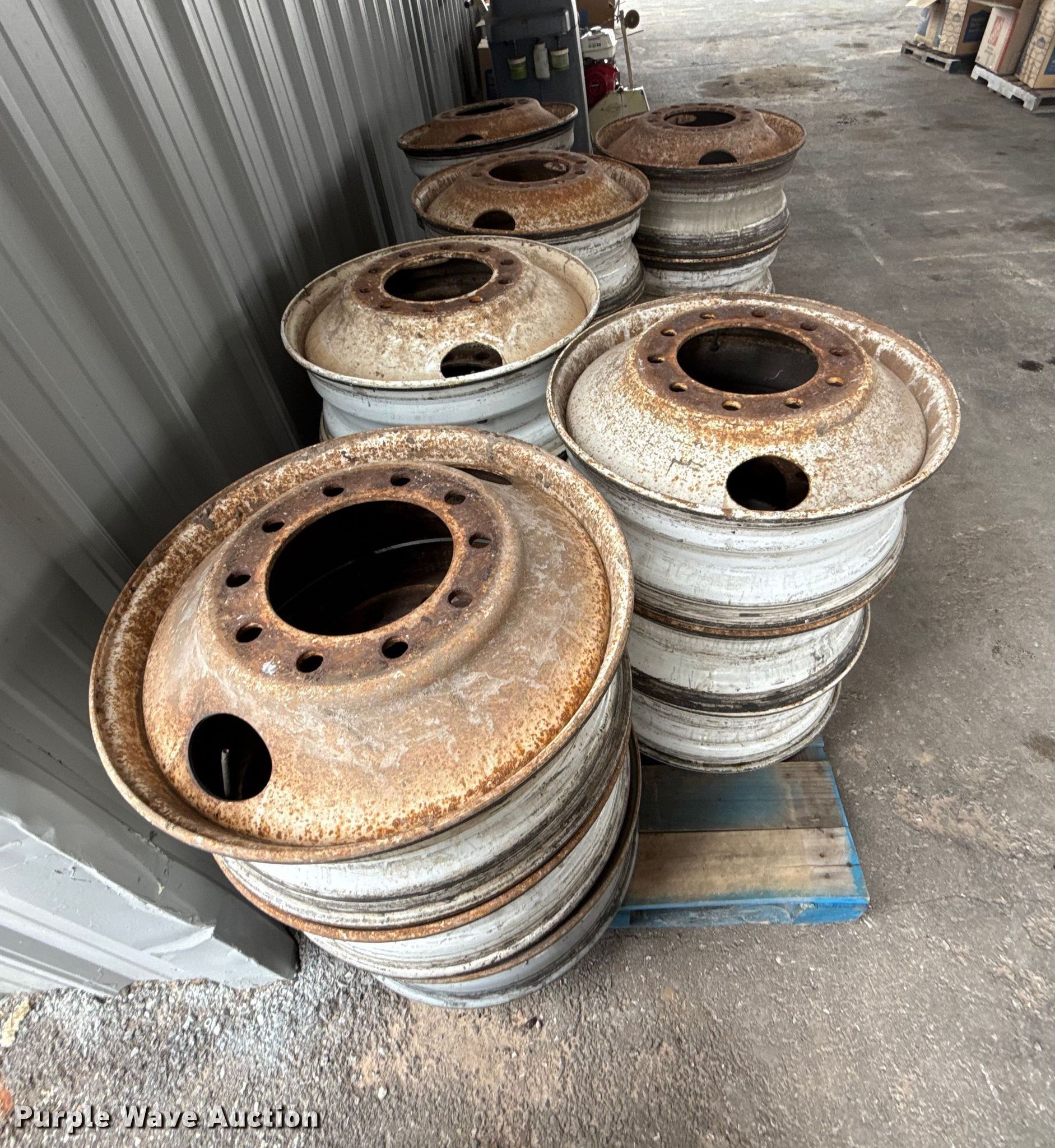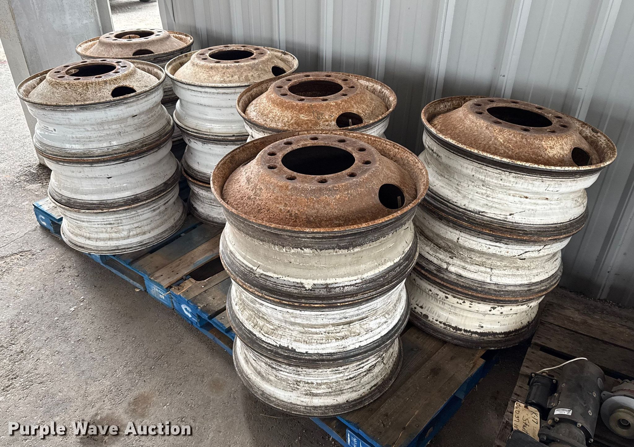 Purple Wave is selling a used Truck Part and Attach. in Oklahoma. This item is a Truck parts with the following: (18) wheels, 10 lug, (10) starters, Caterpillar pump
