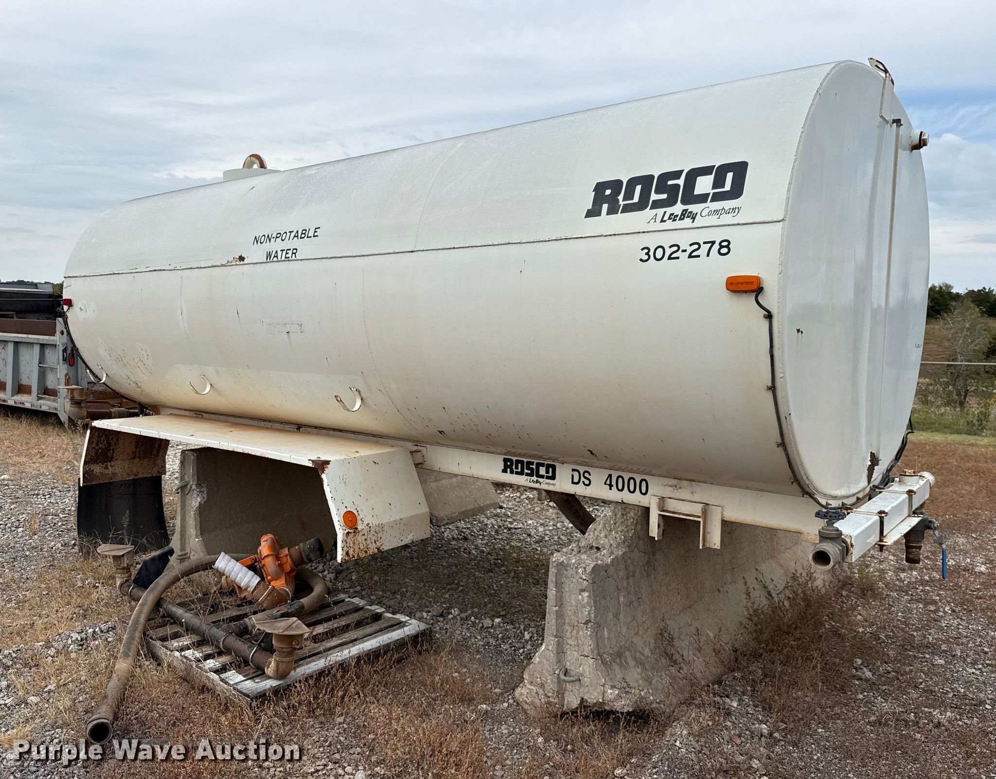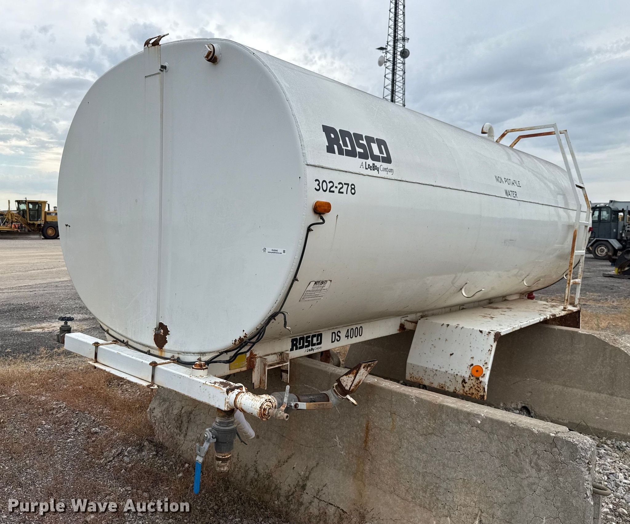 Rosco DS4000 water tank bed for sale in Oklahoma City, Oklahoma. Item EU5040 will sell on November 18th, 2025.