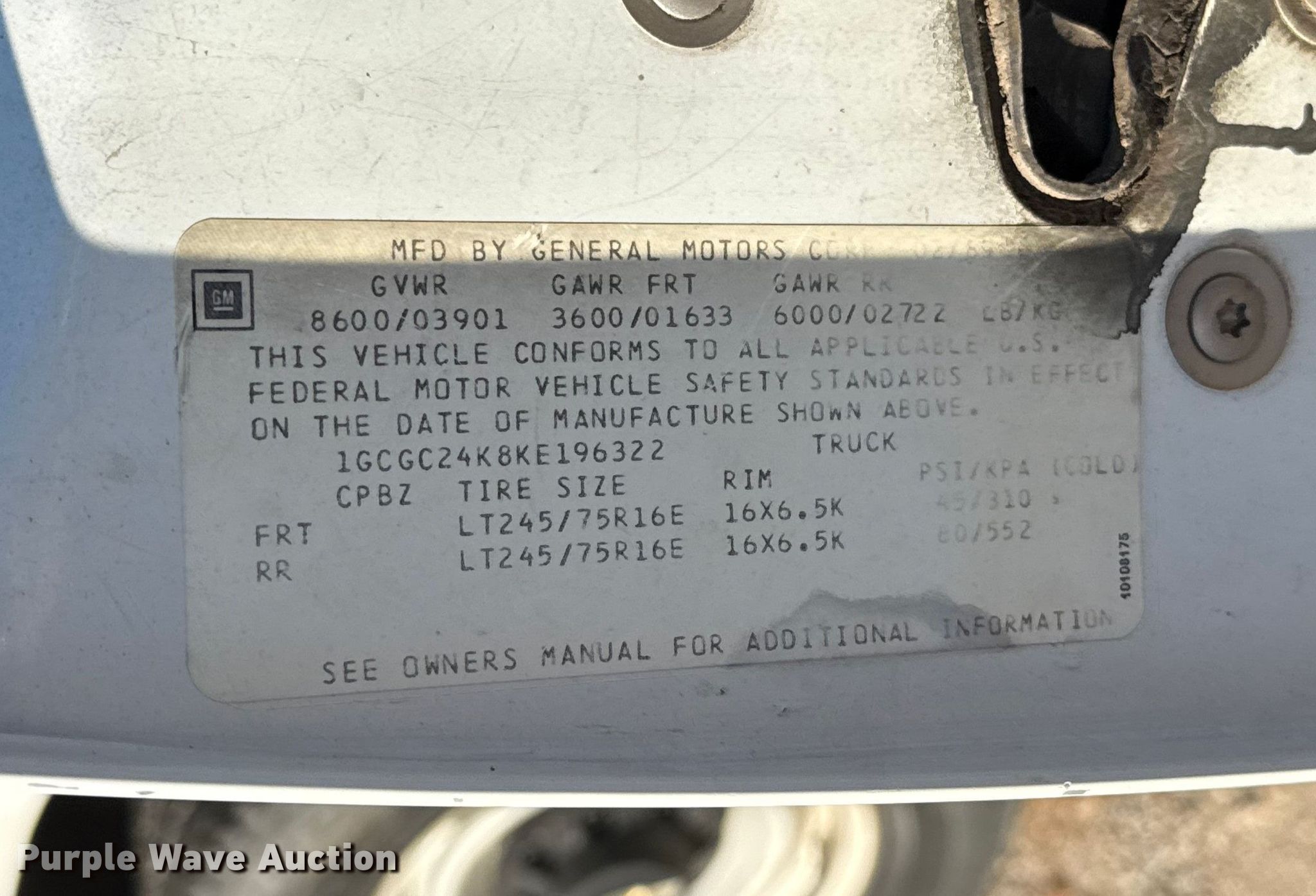 • VIN: 1GCGC24K8KE196322