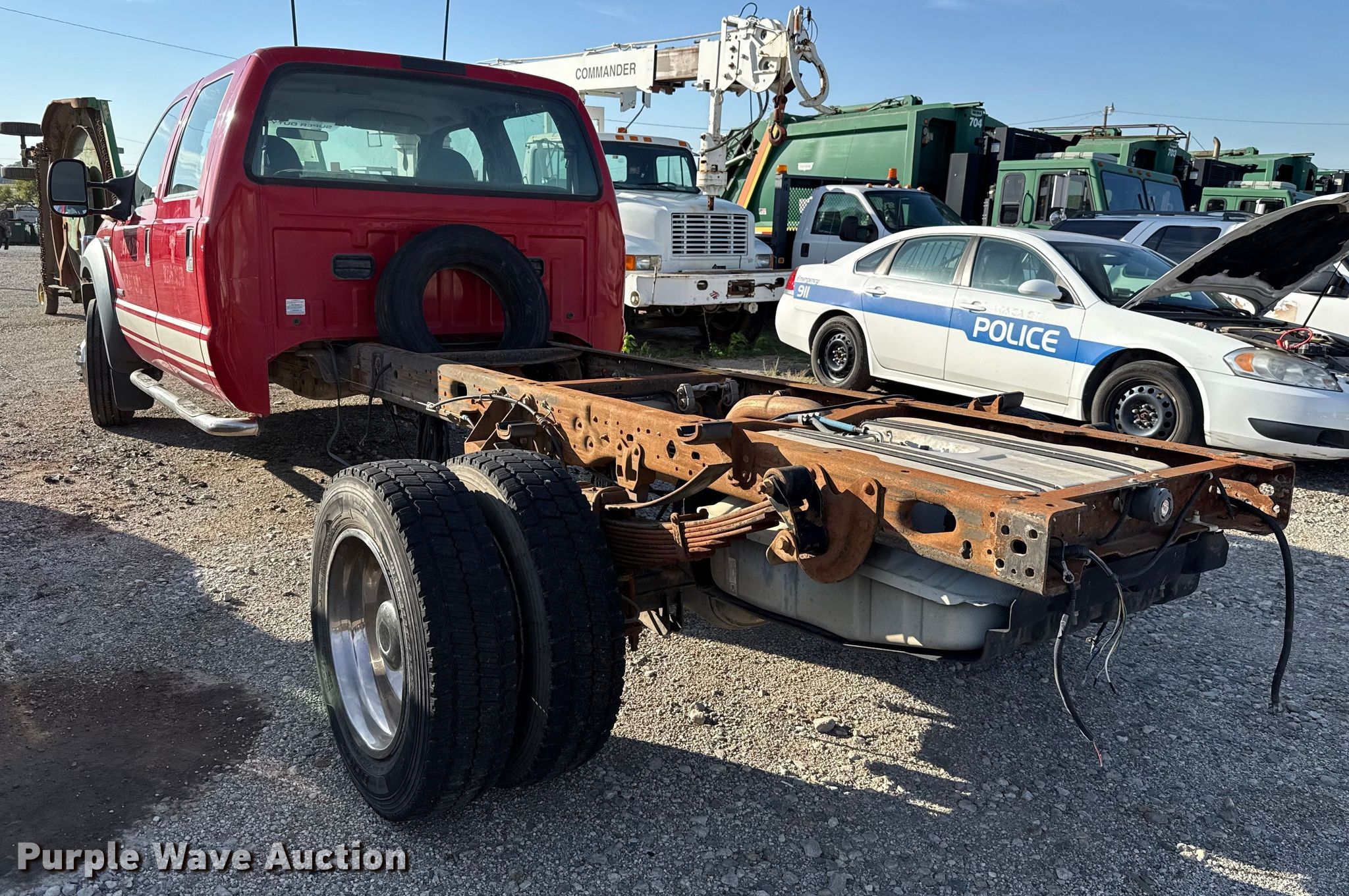 2005 Ford F550 truck cab and chassis. Miles: 116,408 on odometer, VIN: 1FDAW57P15EC69701. Engine Displacement: 6.0L V8 DOHC, Cylinders: 8, Fuel type: Diesel, HP: 325. Transmission Automatic. Chassis Four wheel drive, Axles: Single, Suspension: Spring, Truck chassis: 11'. Interior AC, Heat, Cruise control. Tires Size: 225/70R19.5. Notes Siren control included, Jump start required during on-site data collection, Parts may be missing, Non-operational engine , Driveline disconnected , Unit must be towed or hauled , Non-operational unit. Oklahoma title. Seller is a government entity who will be assigning and distributing the title. Please contact the seller for distribution questions. Title distribution may be delayed up to 14 days from verification of funds. City of Ponca City. Ponca City, OK 74601