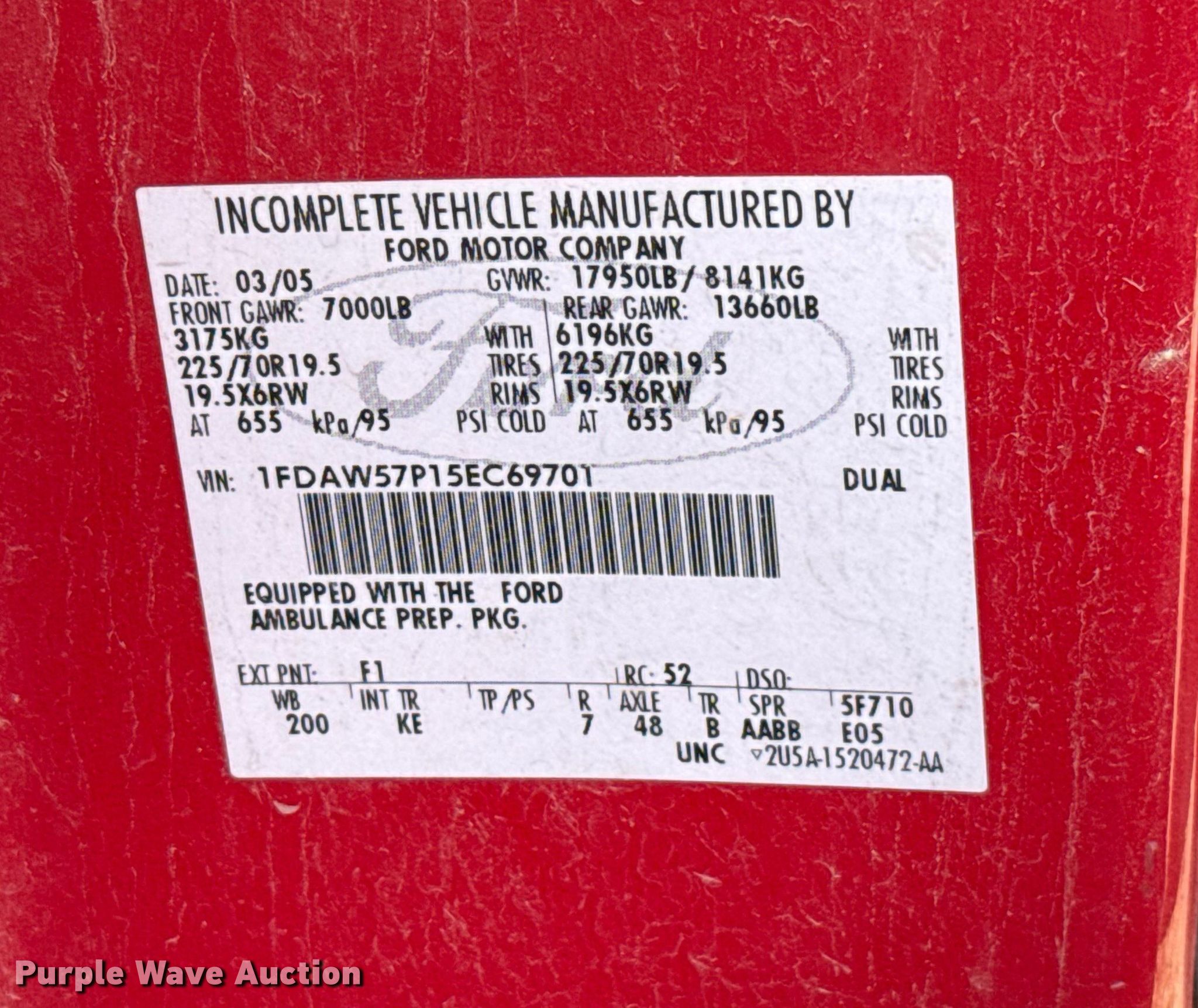 Purple Wave is selling a used Truck Chassis in Oklahoma. This item is a 2005 Ford F550 truck cab and chassis with the following: Miles: 116,408 on odometer, VIN: 1FDAW57P15EC69701