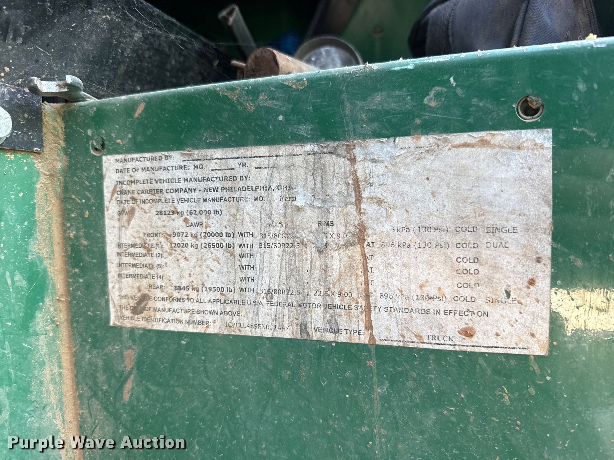 2015 Crane Carrier Low Entry refuse truck. Miles: Unknown, VIN: 1CYCLL489FN051447. Engine Cummins ISL9, Displacement: 8.9L, Cylinders: 6, Fuel type: Diesel, HP: 300. Transmission Allison, Automatic. Chassis Differential lock: Inter-axle, Axles: Tandem, Tag axle, Suspension: Air, Brakes: Air, PTO, GVWR: 62,000 lbs. Interior AC, Heat, Backup camera. Features Refuse bed Pak-Mor, Serial: PMLR220C0007100615, Capacity: 20 cu.yd., Load: Rear, Cart tipper, Winch. Tires Size: 315/80R22.5. Notes Windshield chipped or cracked, Dead battery, Flat tire, Unknown operating condition of refuse bed, Unknown operating condition. Oklahoma title. Mileage has not been verified. Odometer discrepancy will be marked on the title. Seller is a government entity who will be assigning and distributing the title. Please contact the seller for distribution questions. Title distribution may be delayed up to 14 days from verification of funds. City of Ponca City. Ponca City, OK 74601