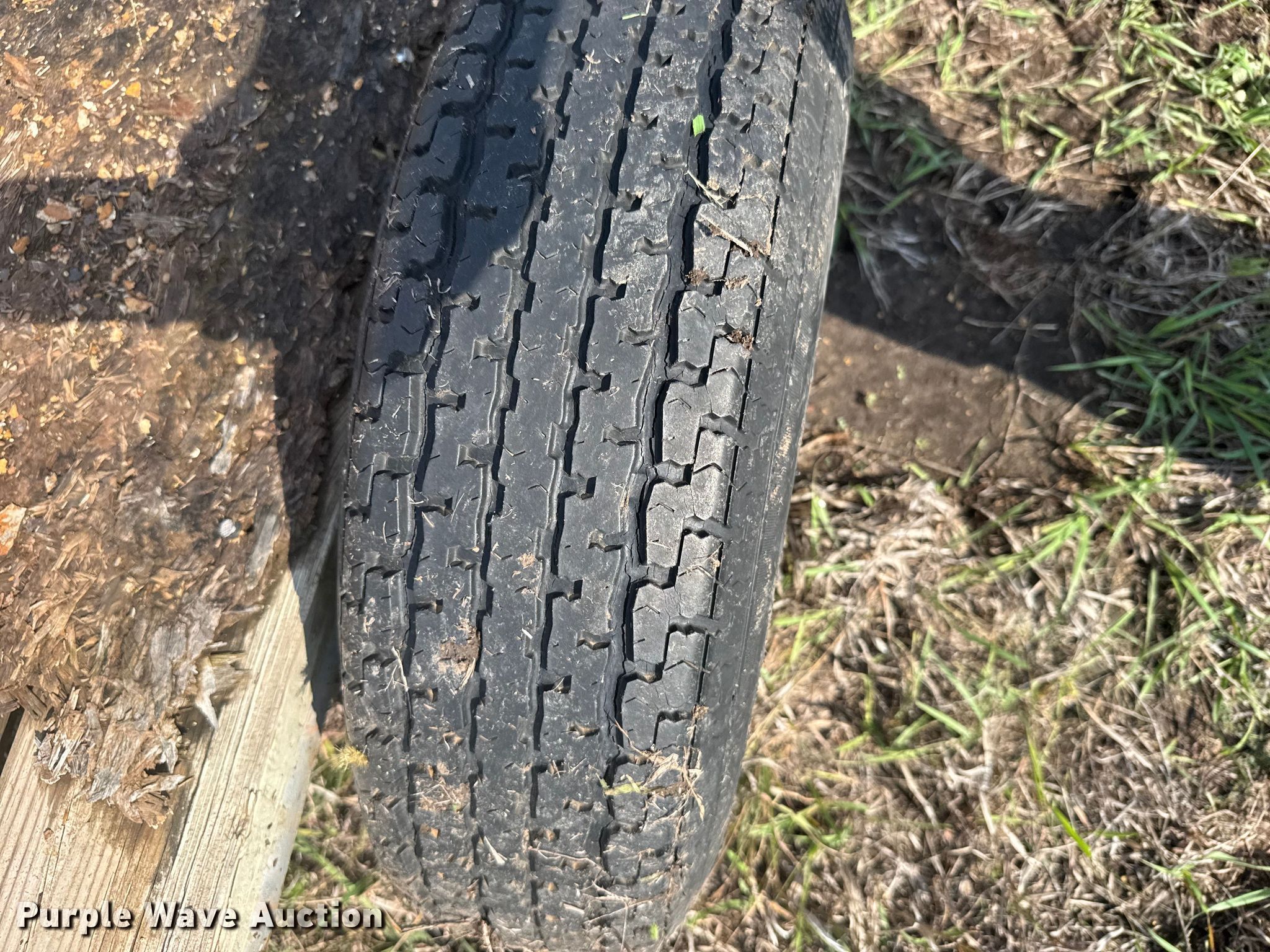 Shop built utility trailer. Dimensions. Overall Length: 19', Width: 108", Deck Length: 14', Width: 90". Features Deck type: Wood. Chassis Ball hitch: 2", Landing gear: Single. Tires Steel wheels, Size: 225/75R15. Notes Tire flat, Deck boards damaged. Wilson State. Sylvan Grove, KS 67481