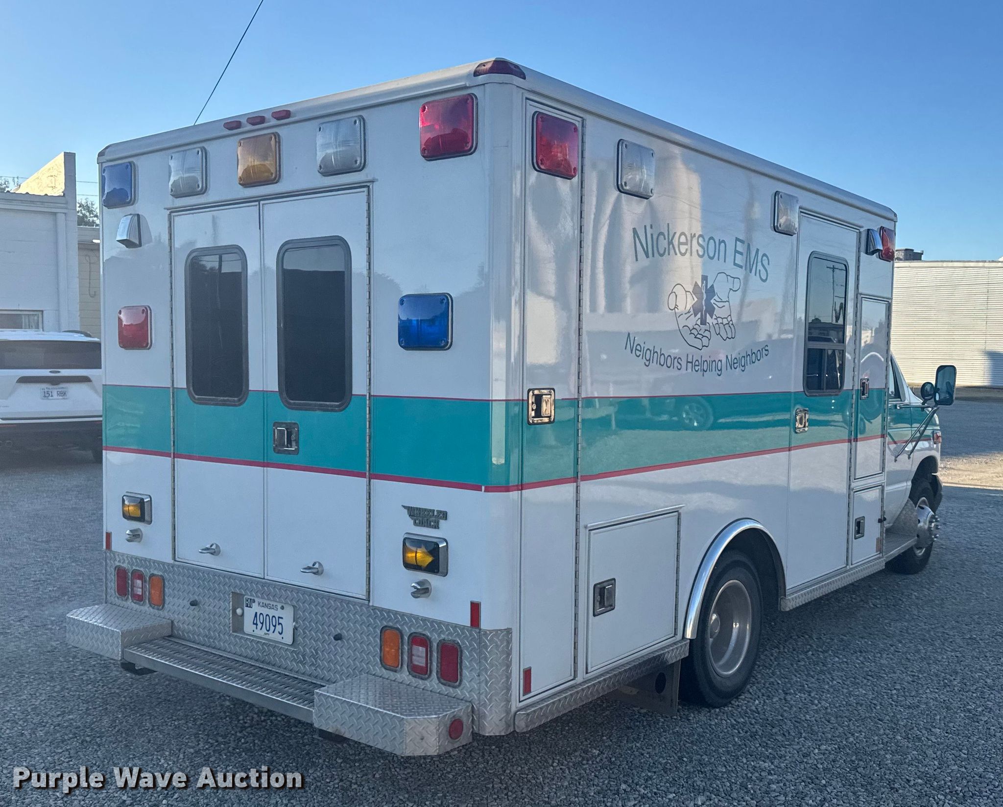 2000 Ford E350 ambulance has sold in Nickerson, Kansas for $37950. Item EU6142 sold on November 18th, 2025.