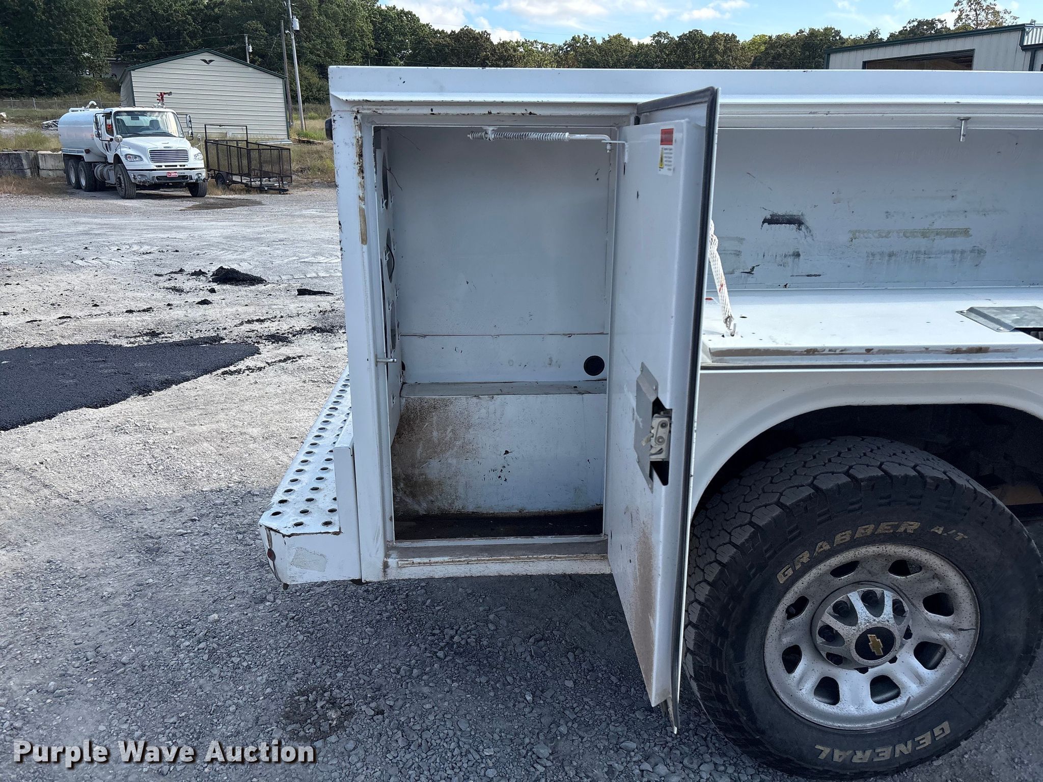 2021 Chevrolet Silverado 3500HD Crew Cab utility bed pickup truck. Miles: 42,062 on odometer, VIN: 1GC4YSE78MF126055. Engine Displacement: 6.6L OHV, Cylinders: 8, Fuel type: Gas. Transmission Automatic, Four wheel drive. Interior AC, Heat, Heated mirrors, Power windows, Power locks, Cruise control, Backup camera, Brake controller. Features Bed Utility bed, Reading SS098S21221, Serial: 922323, Length: 8' 9", Width: 78". Tires Size: LT275/70R18. Notes Windshield chipped or cracked. Oklahoma title. Seller is a government entity who will be assigning and distributing the title. Please contact the seller for distribution questions. Mayes County, District 3. Salina, OK 74365