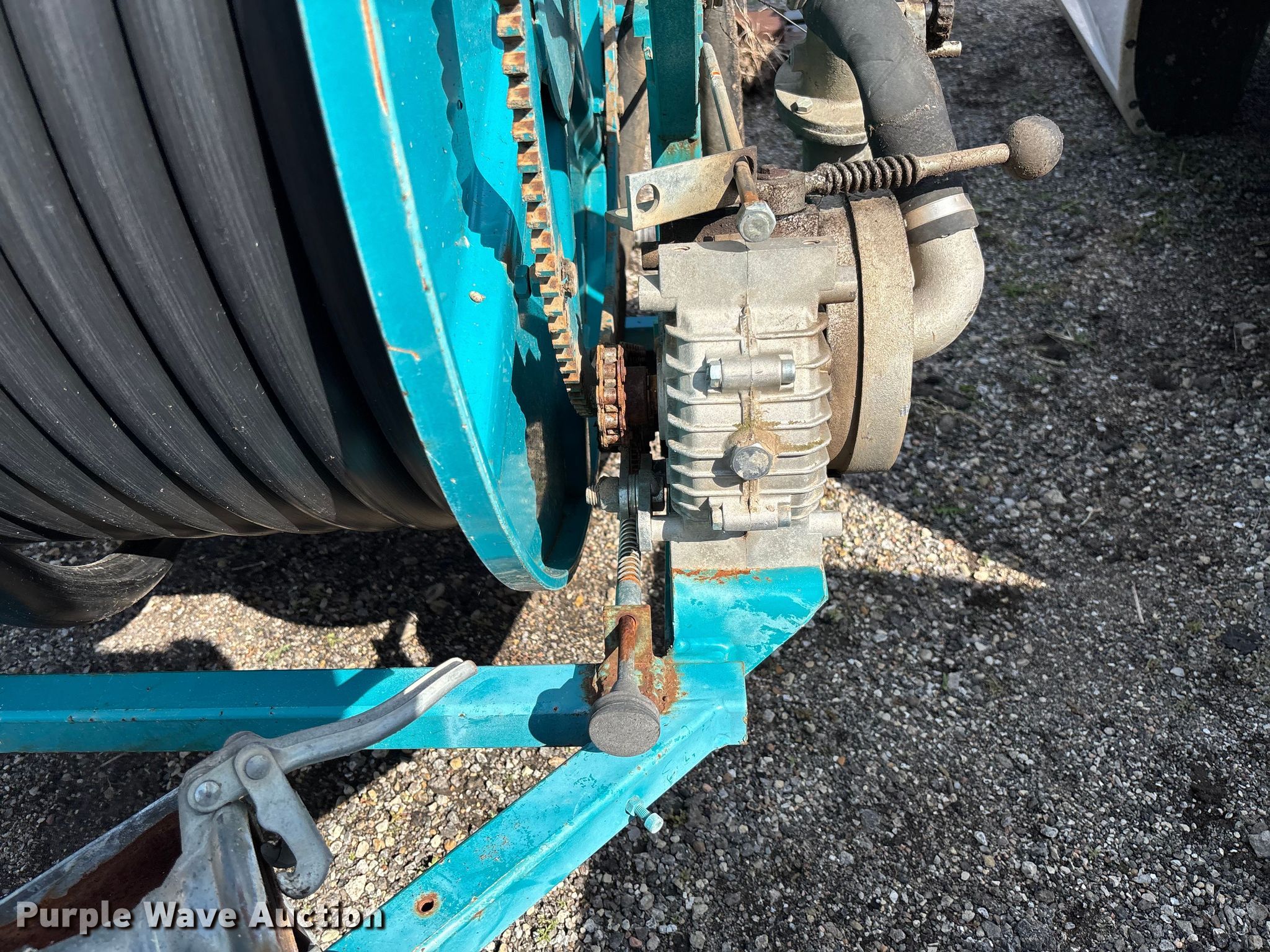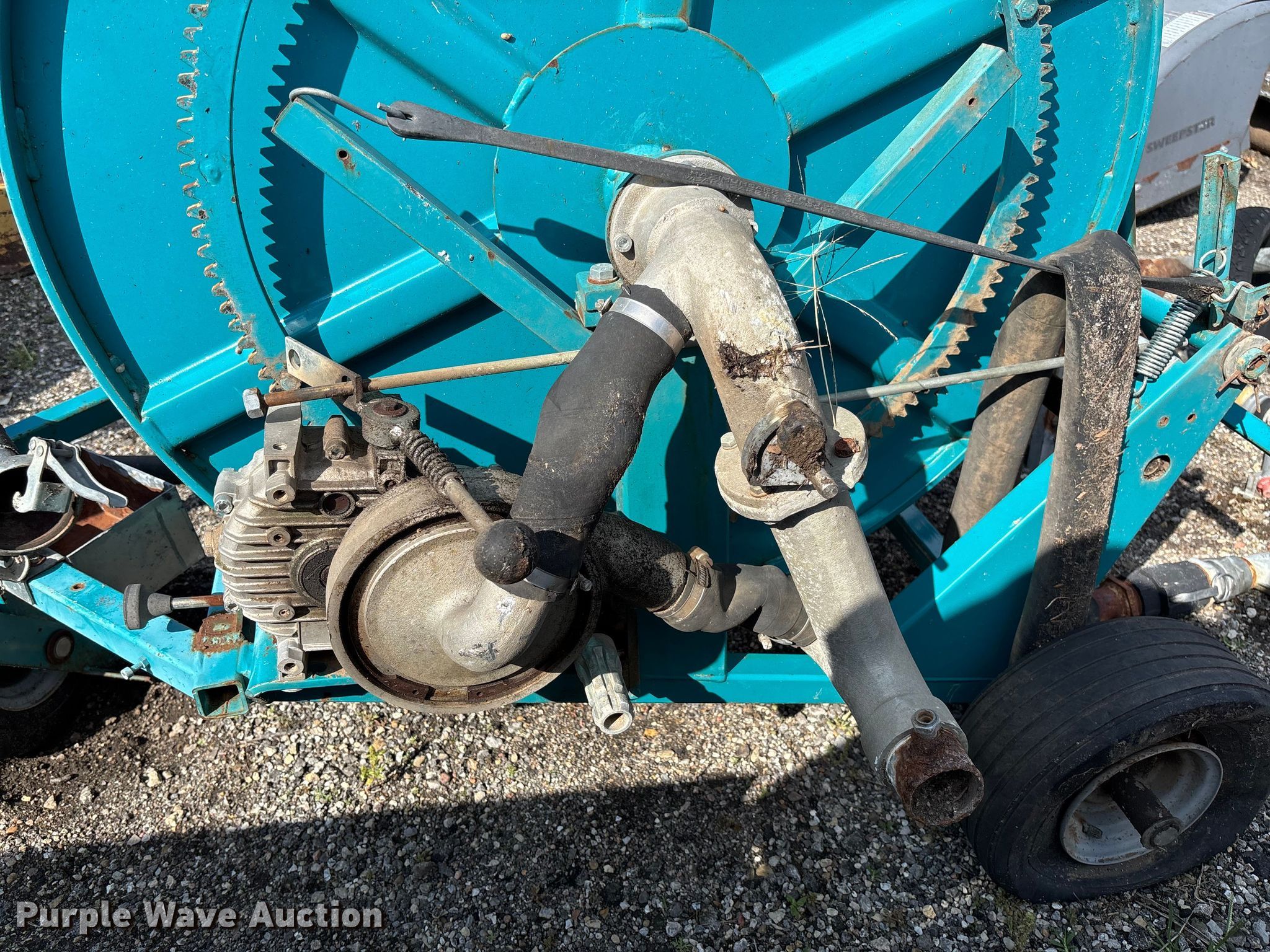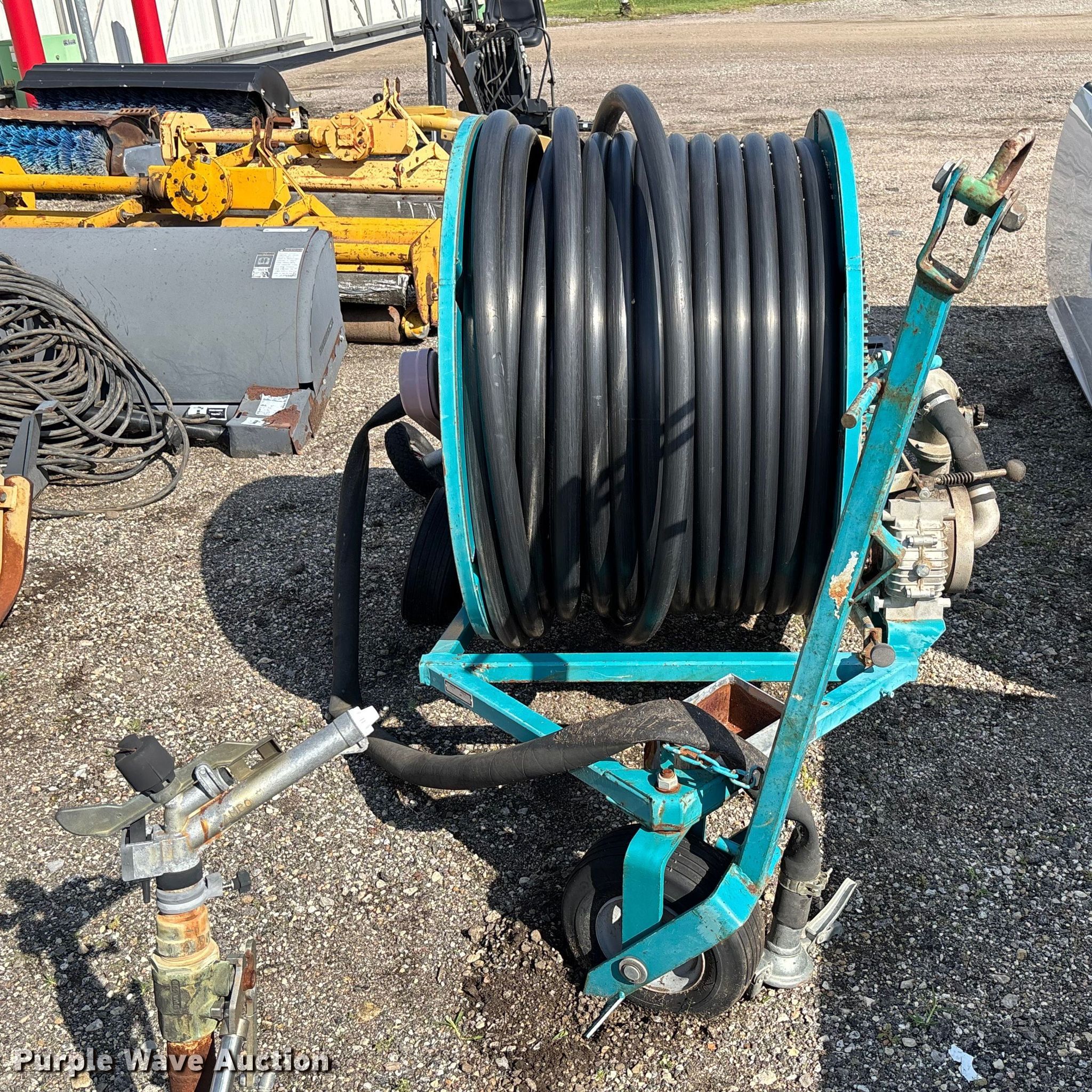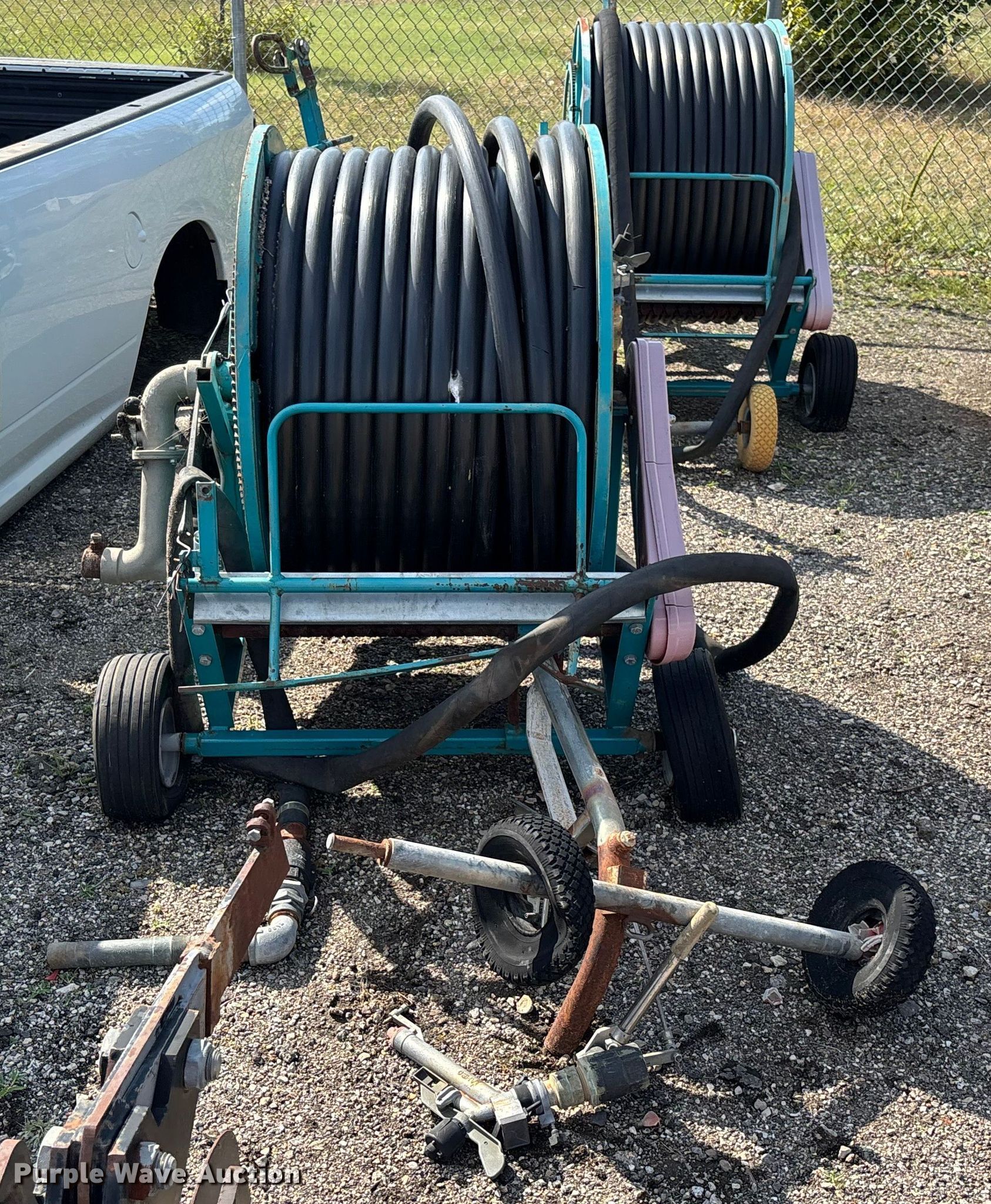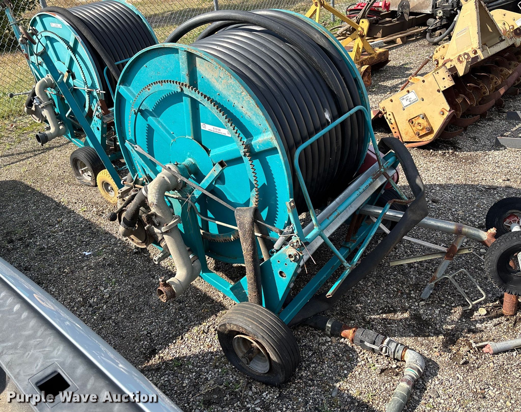 Micro Rain MR43 hose reel. Serial: MR01144. Notes Flat tires, Non-operational unit. Derby, KS 67037