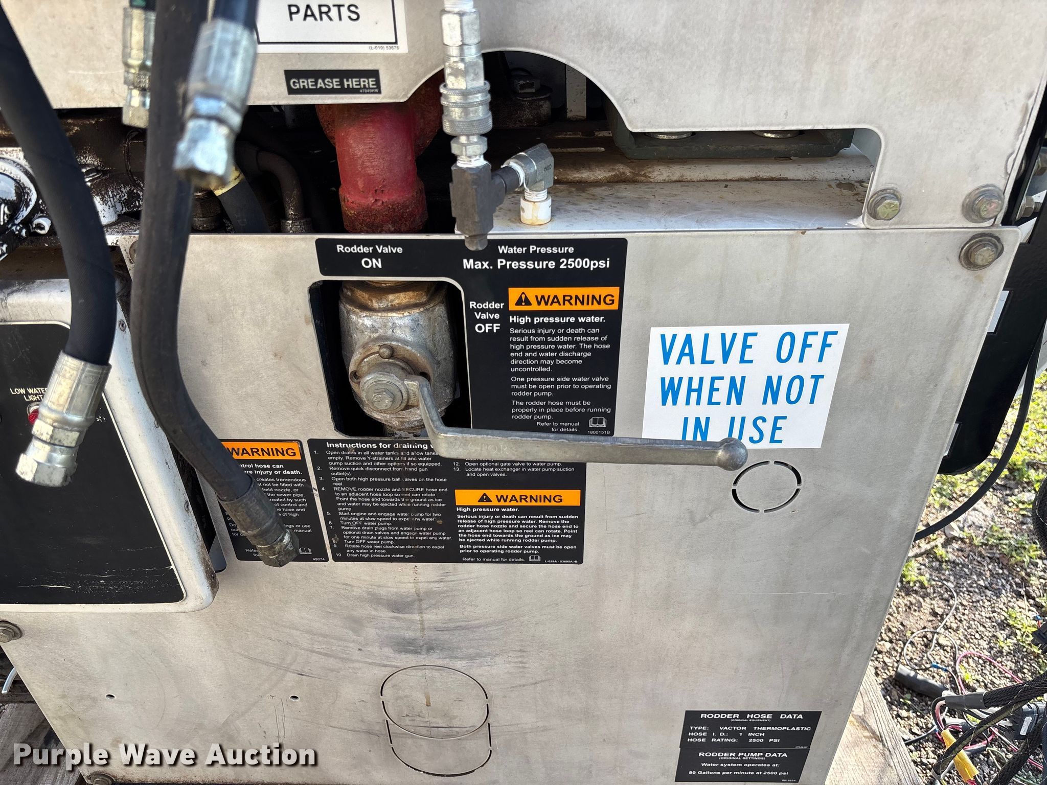 Purple Wave is selling a used Truck Part and Attach. in Kansas. This item is a Sewer jetter truck parts with the following: (2) Hose Reels, Vactor rodder pump, Hydraulic tank, Hoses, Toolbox, Control Panel