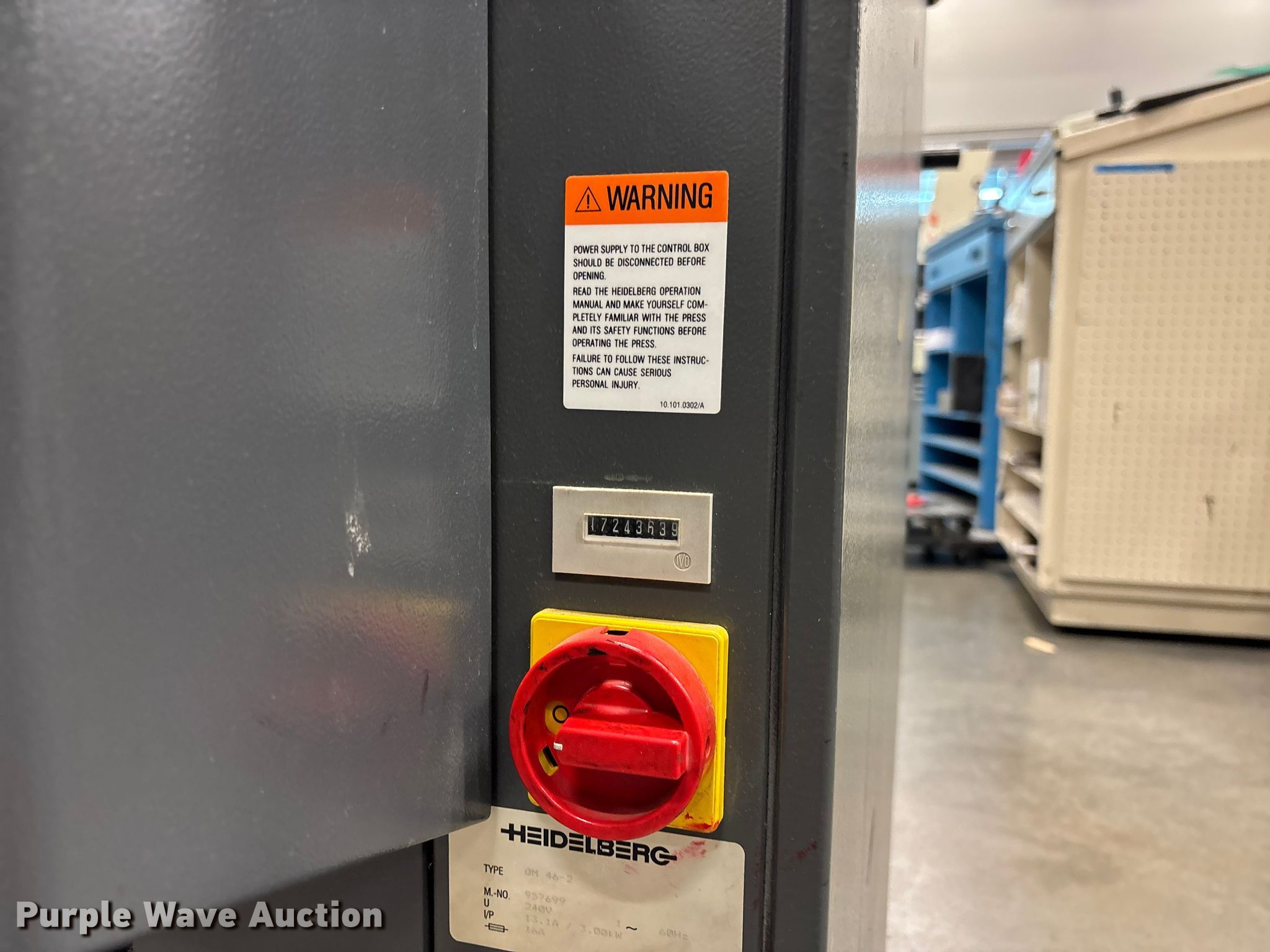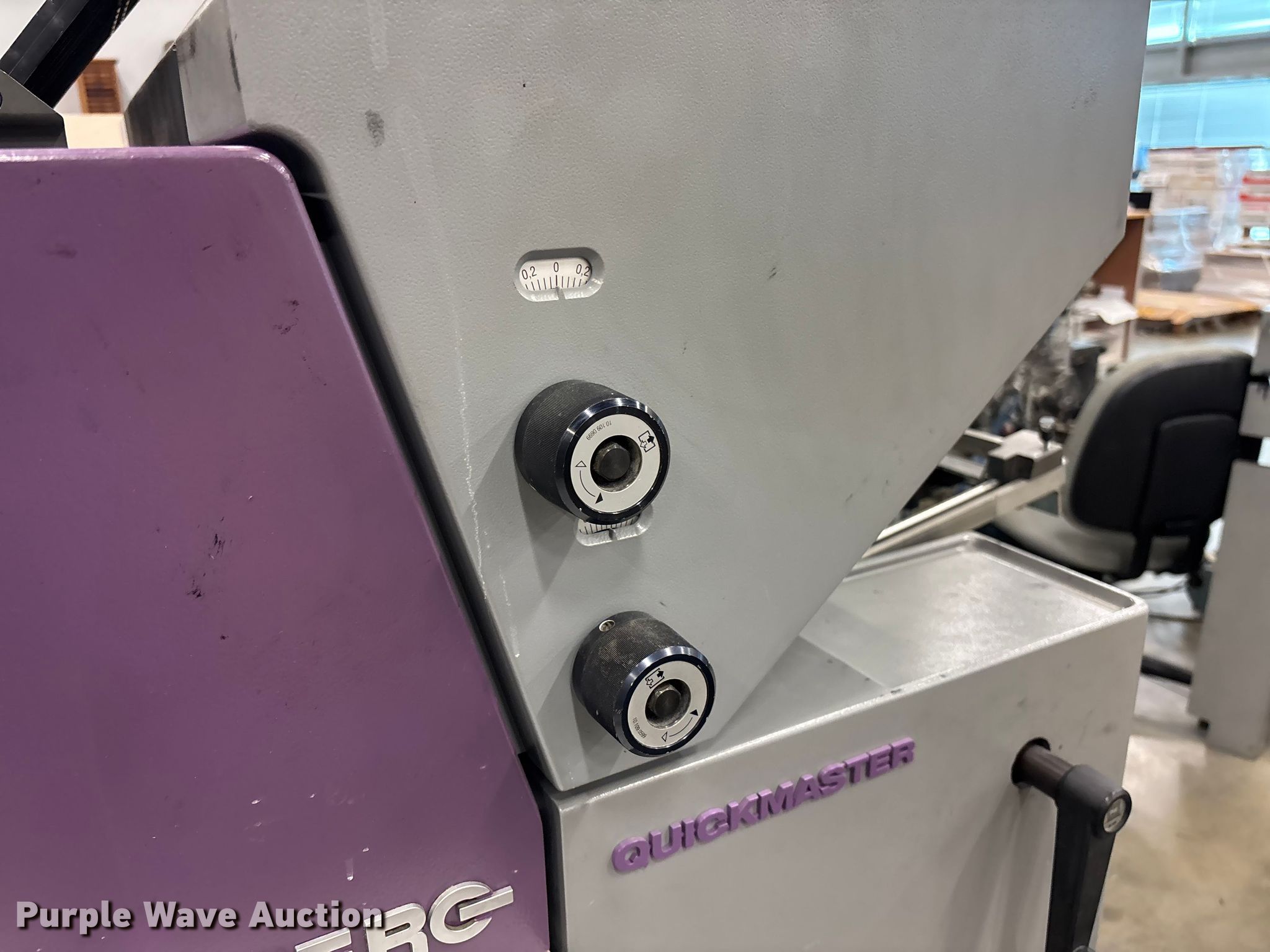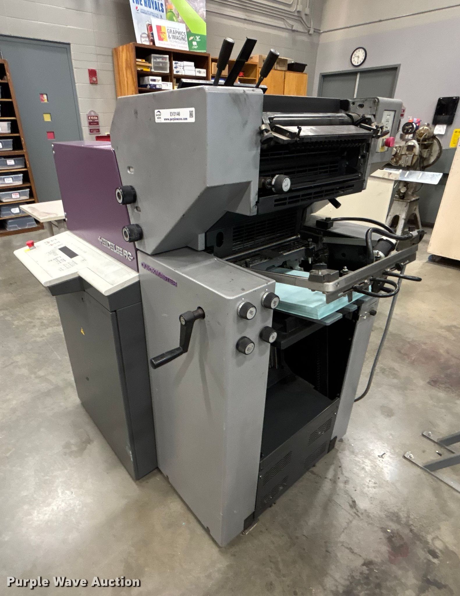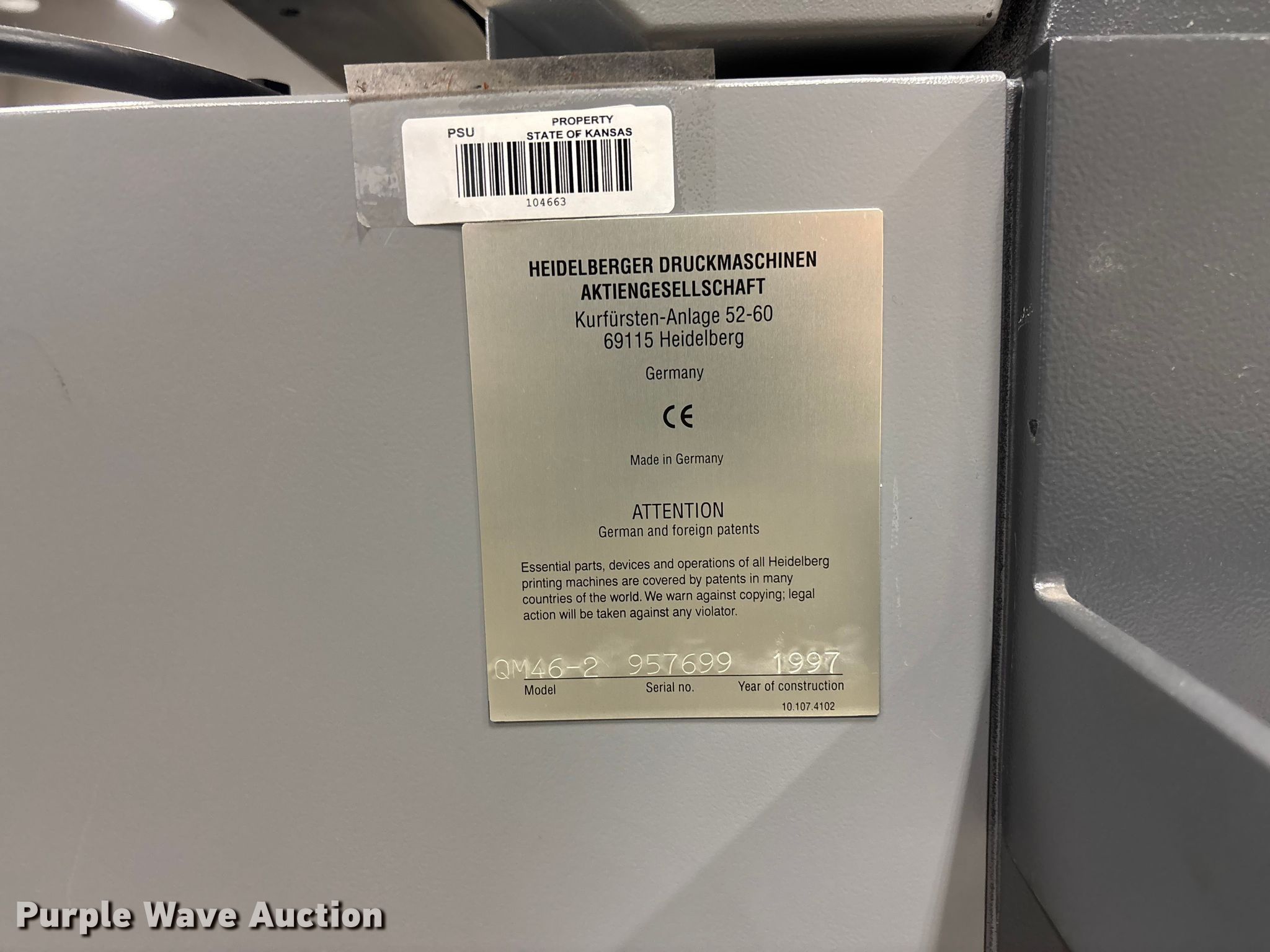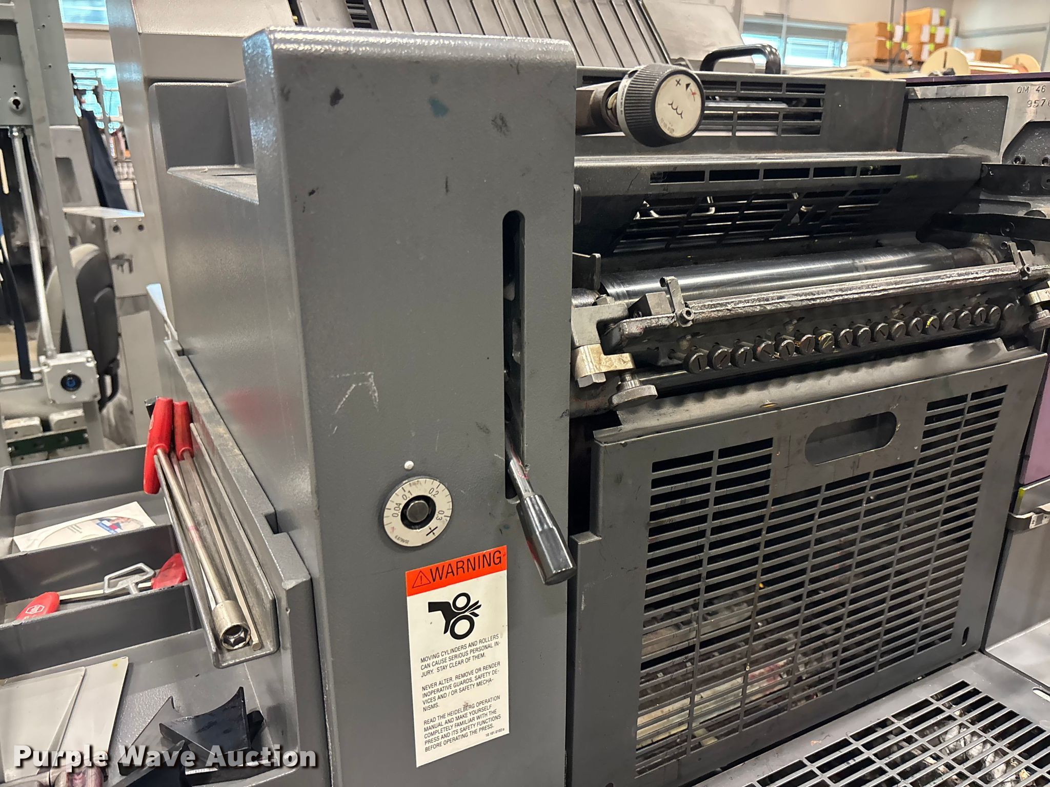 Purple Wave is selling a used Copy or Printing Machine in Kansas. This item is a Heidelberg QM 46-2 printing press with the following: 2 color, Serial: 957699