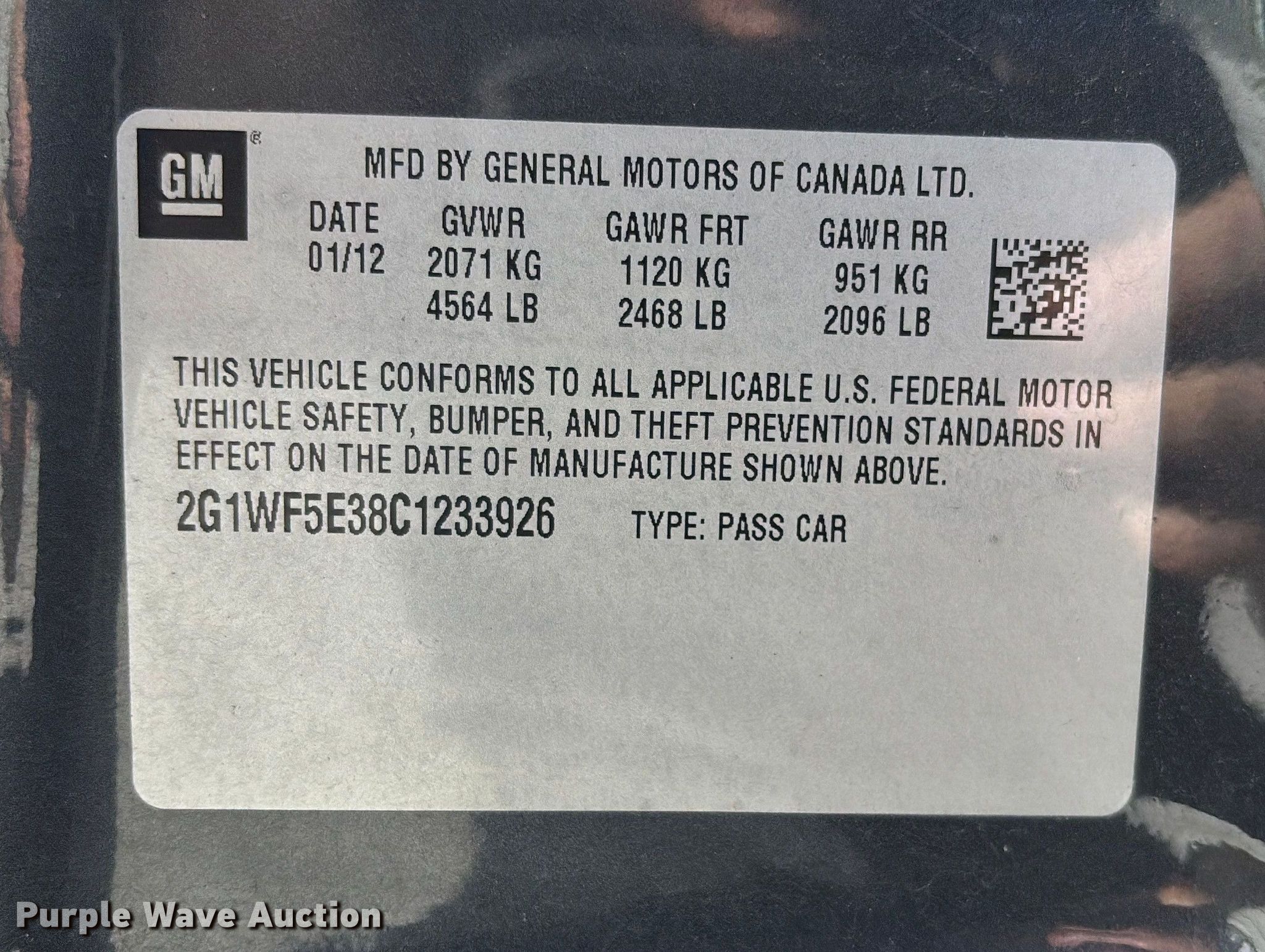 - VIN: 2G1WF5E38C1233926