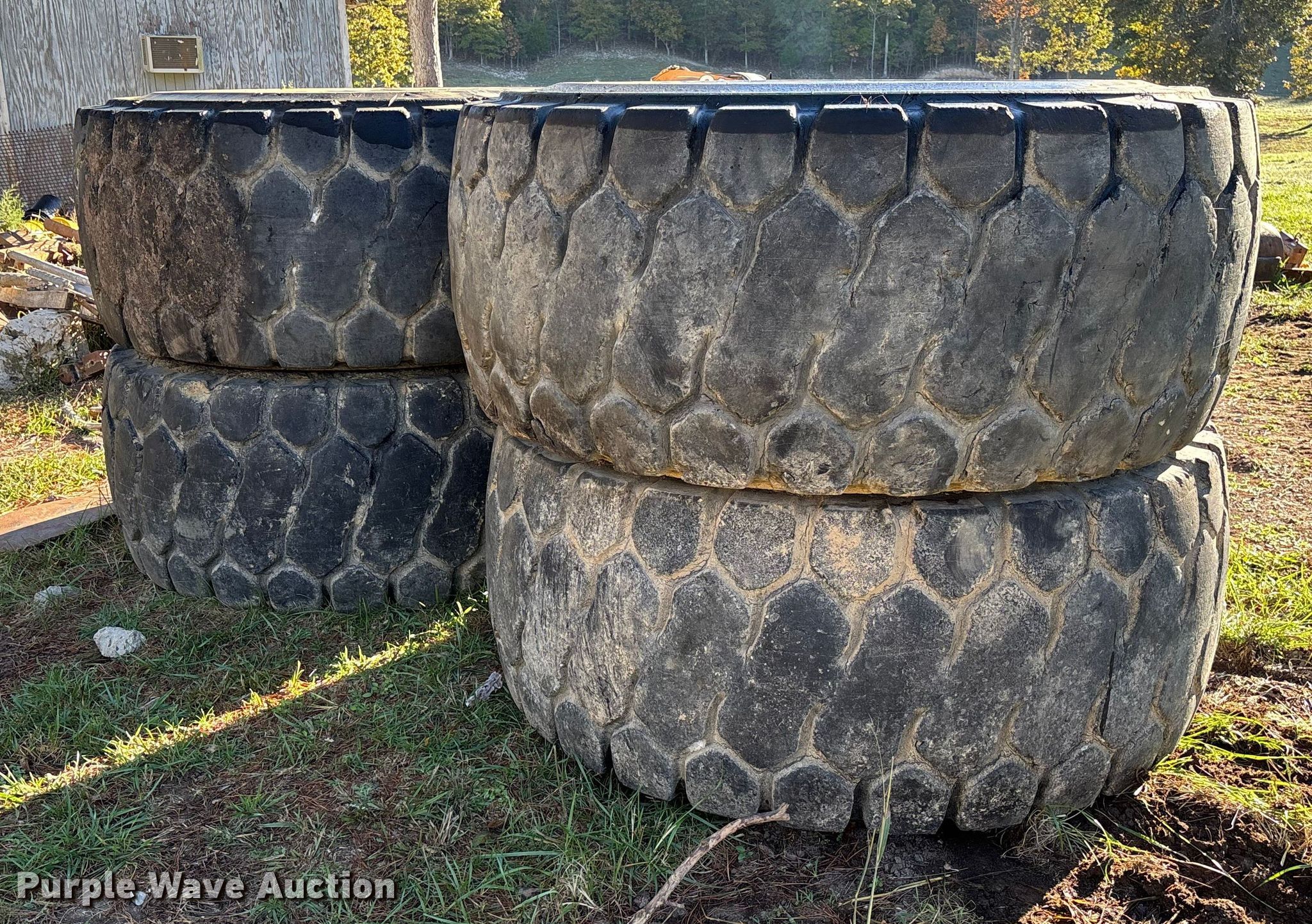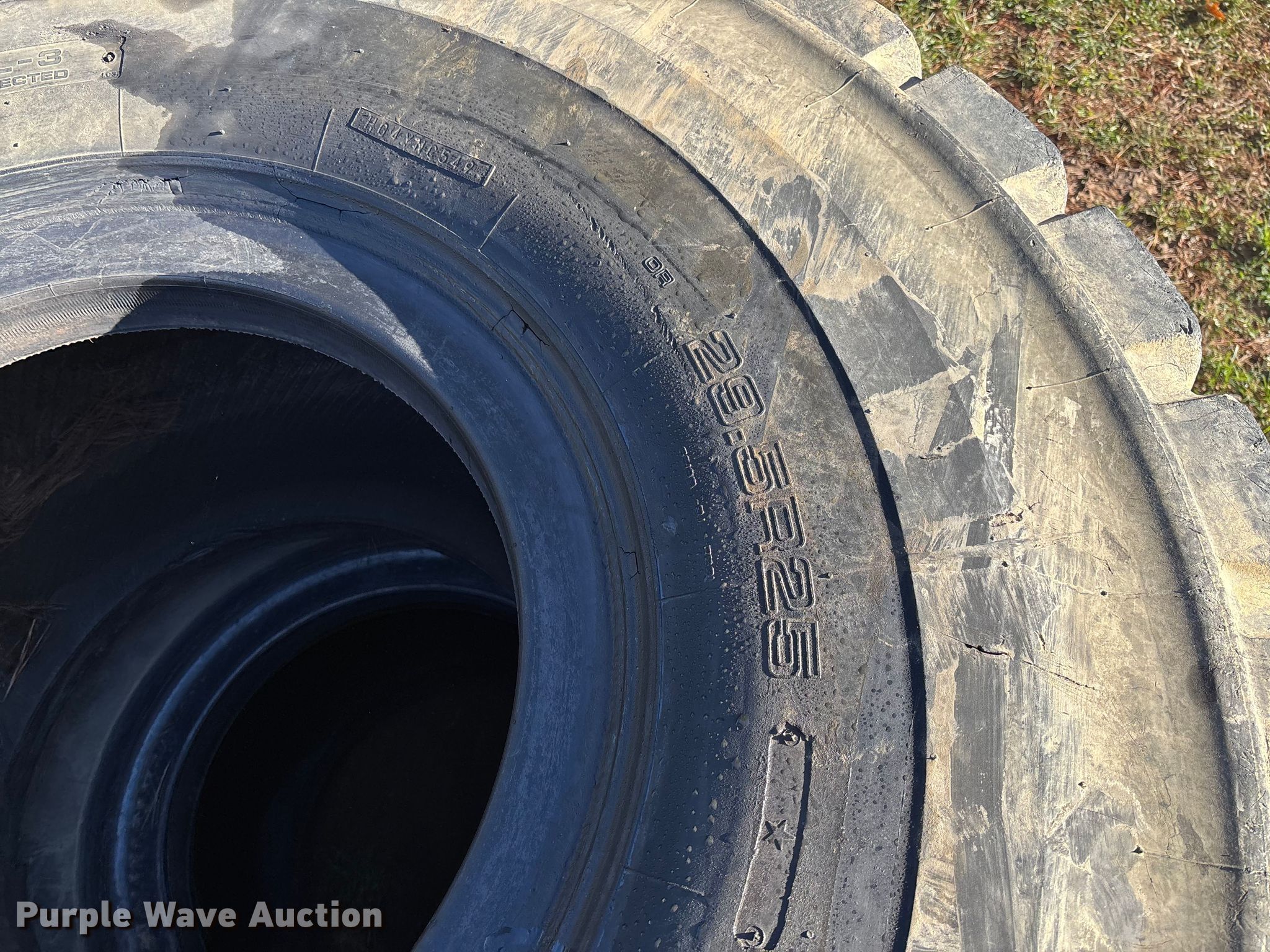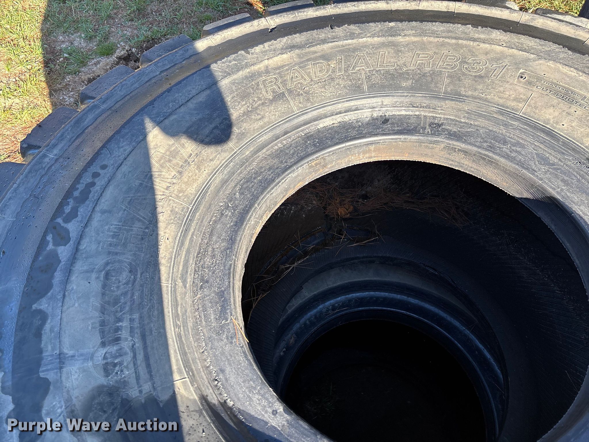 Purple Wave is selling a used Industrial Tires or Tracks in Missouri. This item is a (4) Yokohama 29.5R25 tires with the following: One sidewall damaged, cut