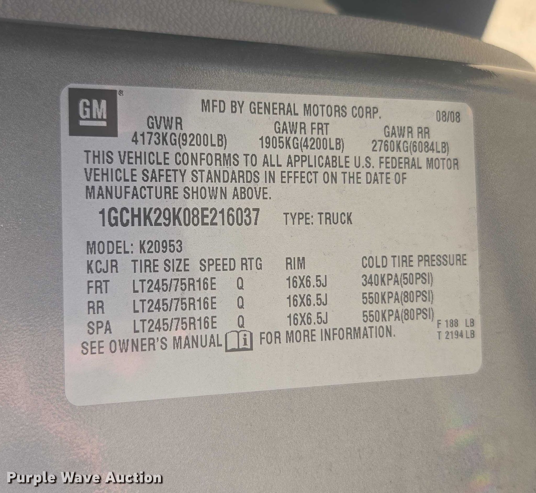 2008 Chevrolet 2500 Ext. Cab pickup truck. Miles: 3,634 on odometer, VIN: 1GCHK29K08E216037. Engine Displacement: 6.0L, Cylinders: 8, Fuel type: Gas. Transmission Automatic, Four wheel drive. Interior AC, Heat, Power windows, Power locks, Cruise control. Tires Size: 245/75R16. Notes Dash warning indicator: TPMS, Jump start required during on-site data collection. Kansas title. Seller is a government entity who will be assigning and distributing the title. Please contact the seller for distribution questions. Title distribution may be delayed up to 30 days from verification of funds. City of Lawrence. Lawrence, KS 66044