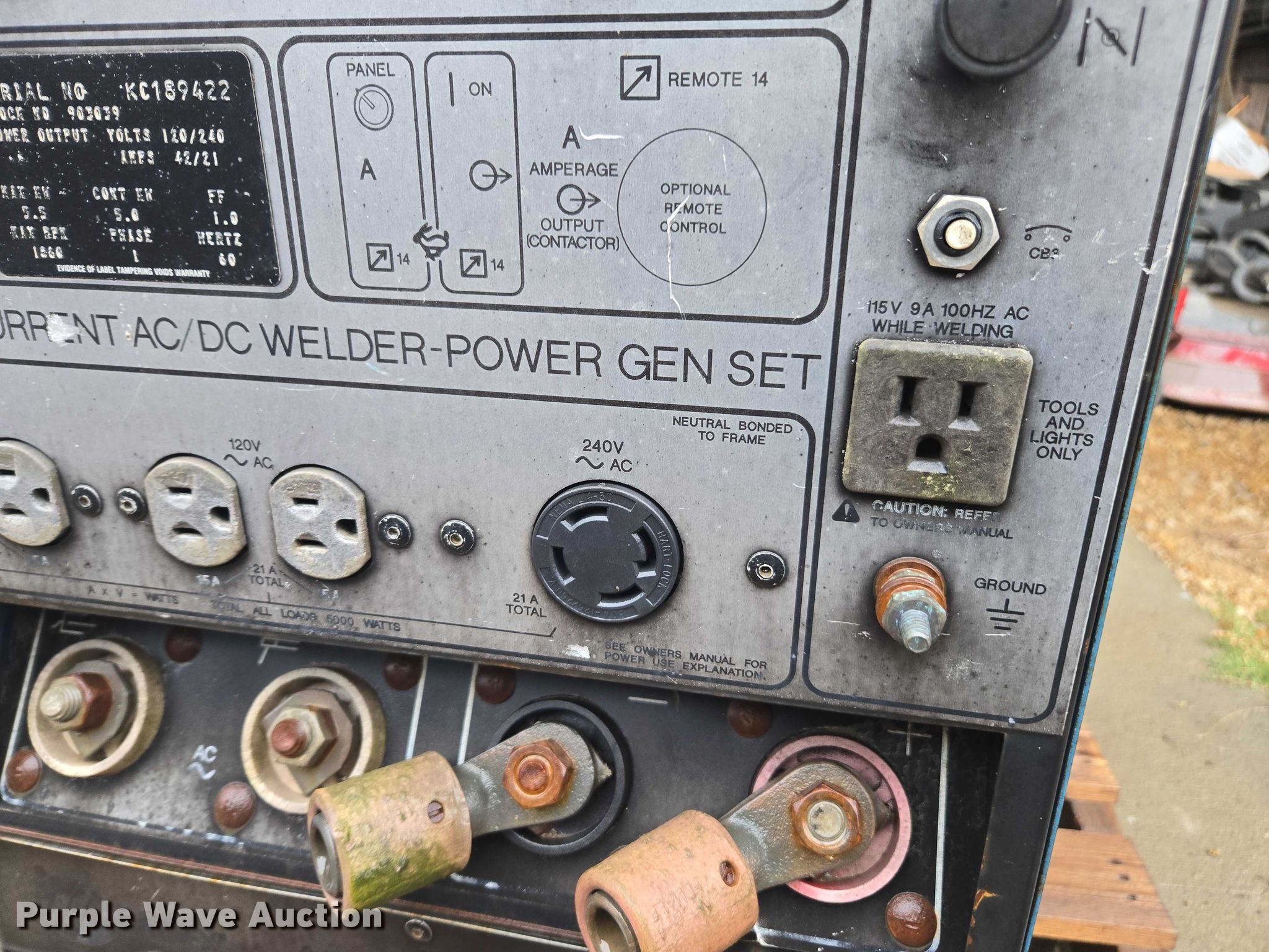 Purple Wave is selling a used Welder (Manual) in Kansas. This item is a Miller Legend welder/generator with the following: Serial: KC189422