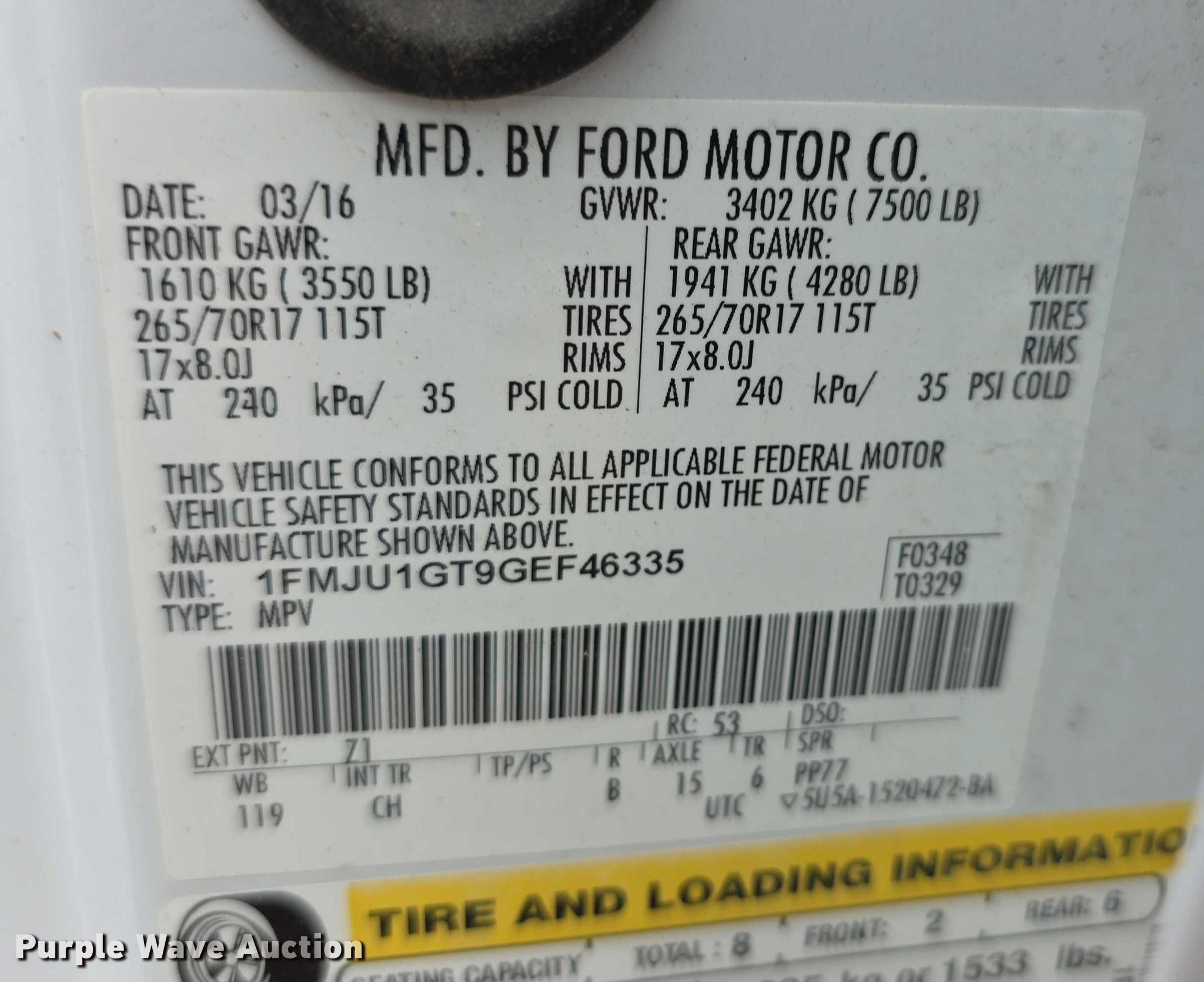 - VIN: 1FMJU1GT9GEF46335