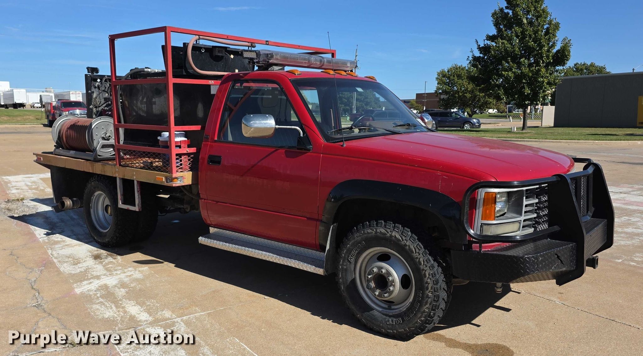 Purple Wave is selling a used Fire Truck or Emergency Vehicle in Kansas. This item is a 1991 Chevrolet Cheyenne 3500 brush fire truck with the following: Miles: 42,132 on odometer, VIN: 1GBJK34N1ME137502, Unit #: 4422