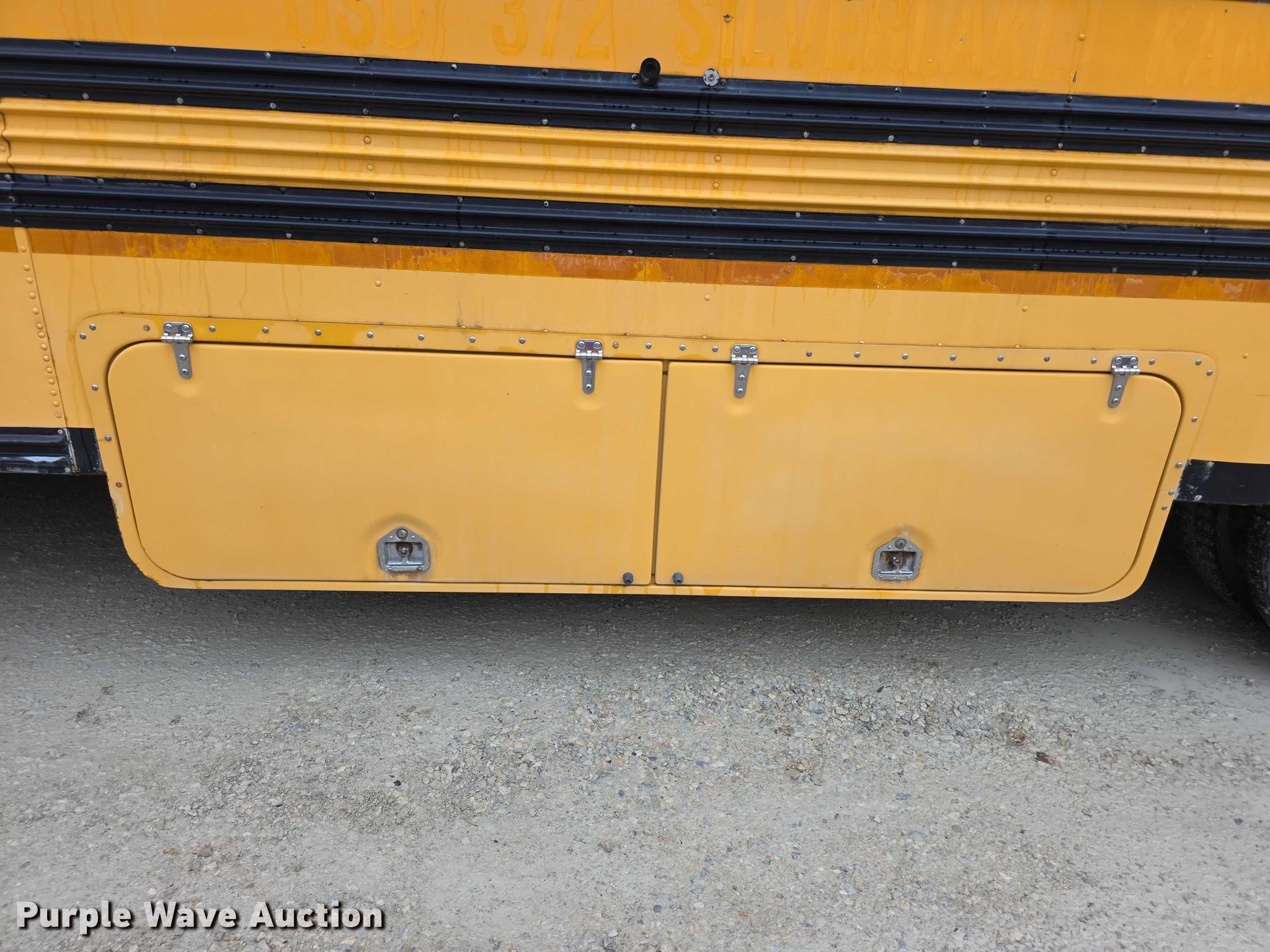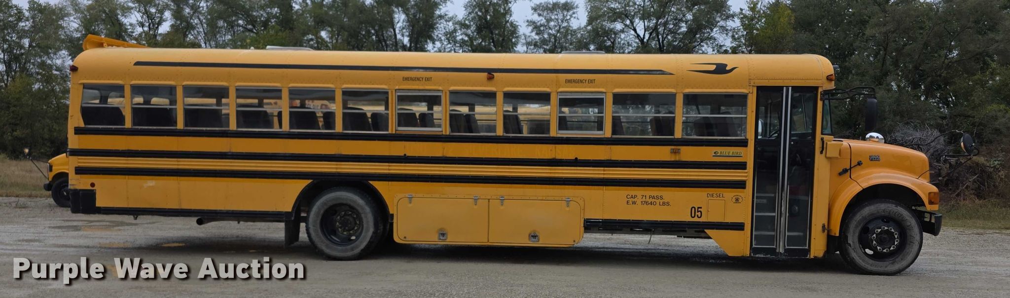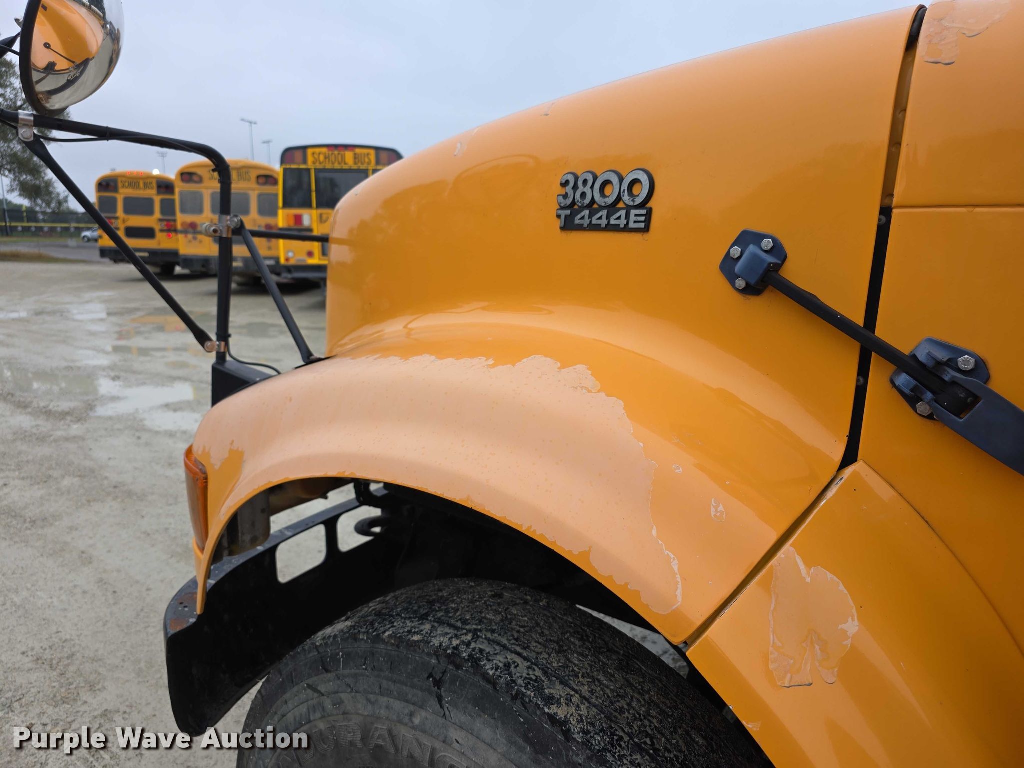 2003 International 3800 school bus. Miles: 166,220 on odometer, Hours: 9,176 on meter, VIN: 1HVBBABP13H560483, Unit #: 05. Engine International T444E, Displacement: 7.3L, Cylinders: 8, Fuel type: Diesel. Transmission Automatic. Chassis Axles: Single, Suspension: Spring, Brakes: Hydraulic, GVWR: 29,500 lbs, Wheelbase: 268". Interior Heat, Heated mirrors, Cruise control, Passengers: 71. Tires Size: 10R22.5, Brand: Goodyear. Notes Jump start required during on-site data collection. Kansas title. Title distribution may be delayed up to 14 days from verification of funds. Silver Lake, KS 66539